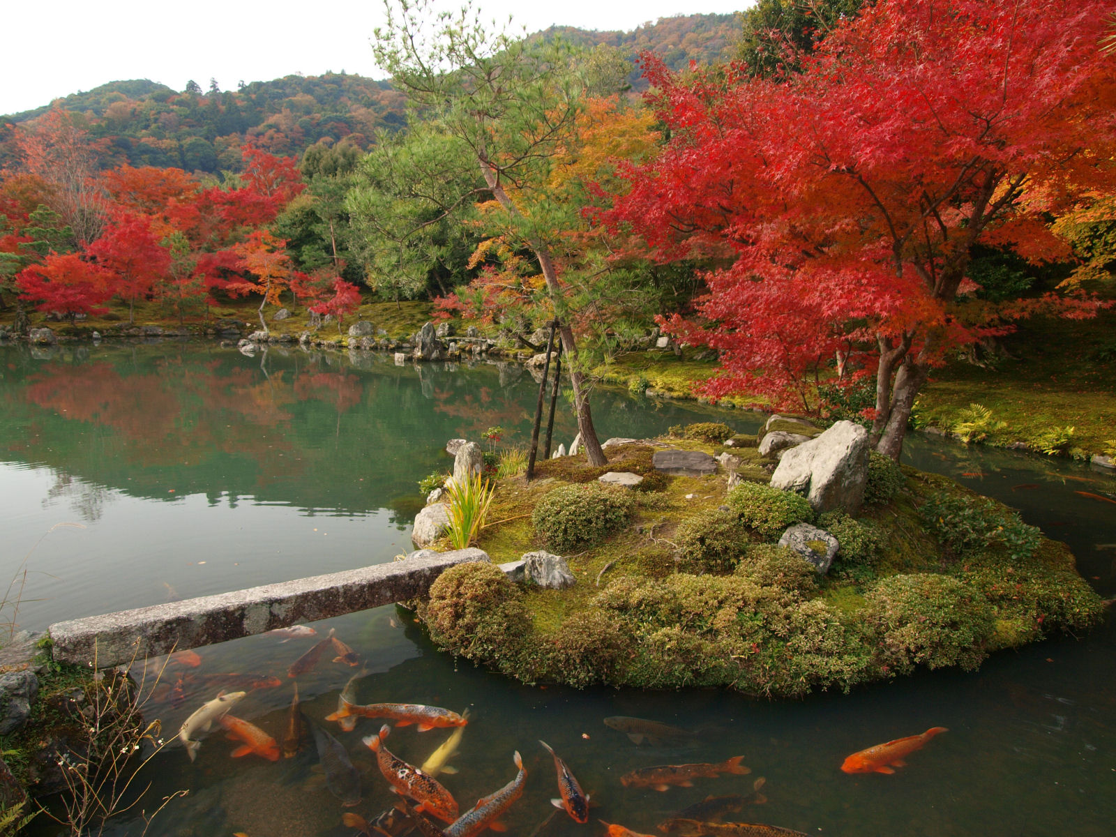 紅葉シーズンということで友人が観光にやってきたので案内しました. 場所は紅葉の定番の嵐山.休日ということで大変な人だかりでした. 天気は残念ならが空にうっすら雲がかかった状態. |