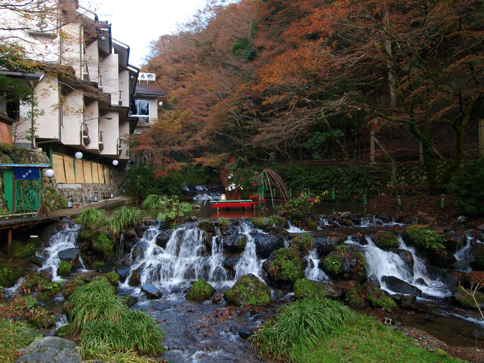 貴船といえば川床. 今回は普通の時間に来たからか,川に飾りが置いてありました. |