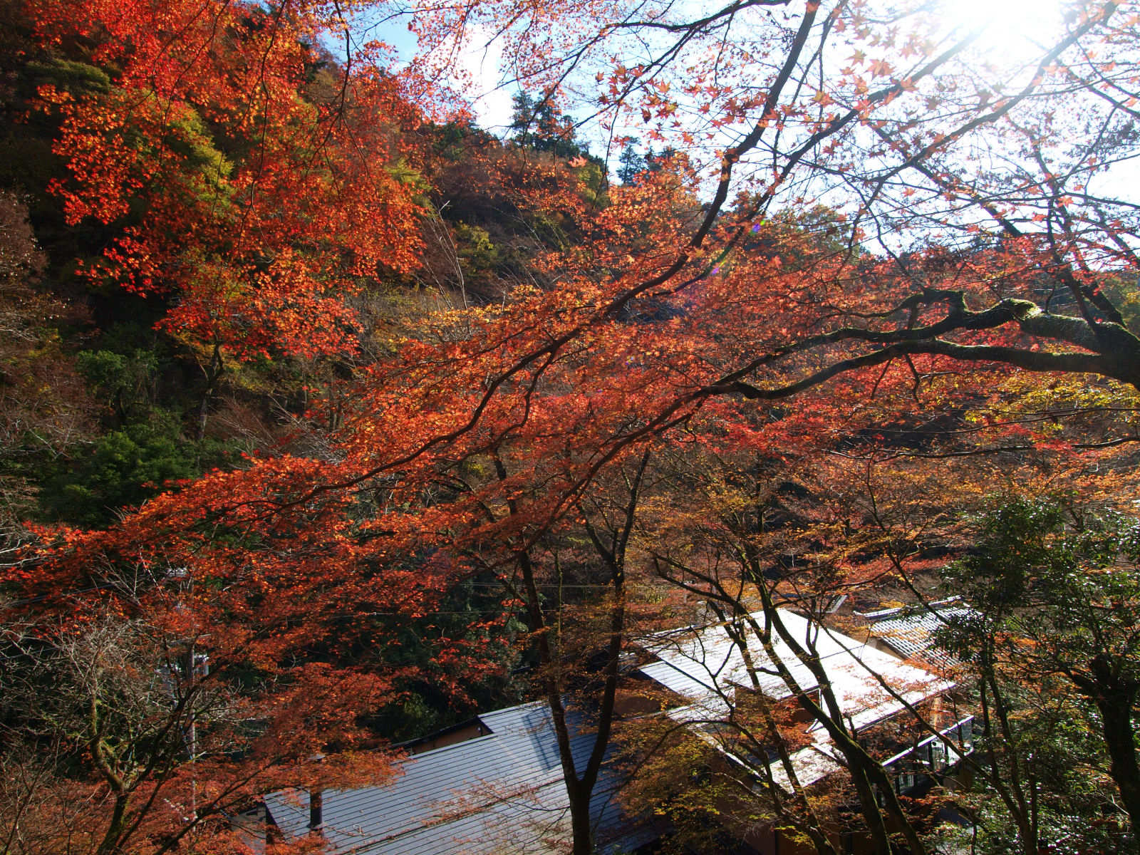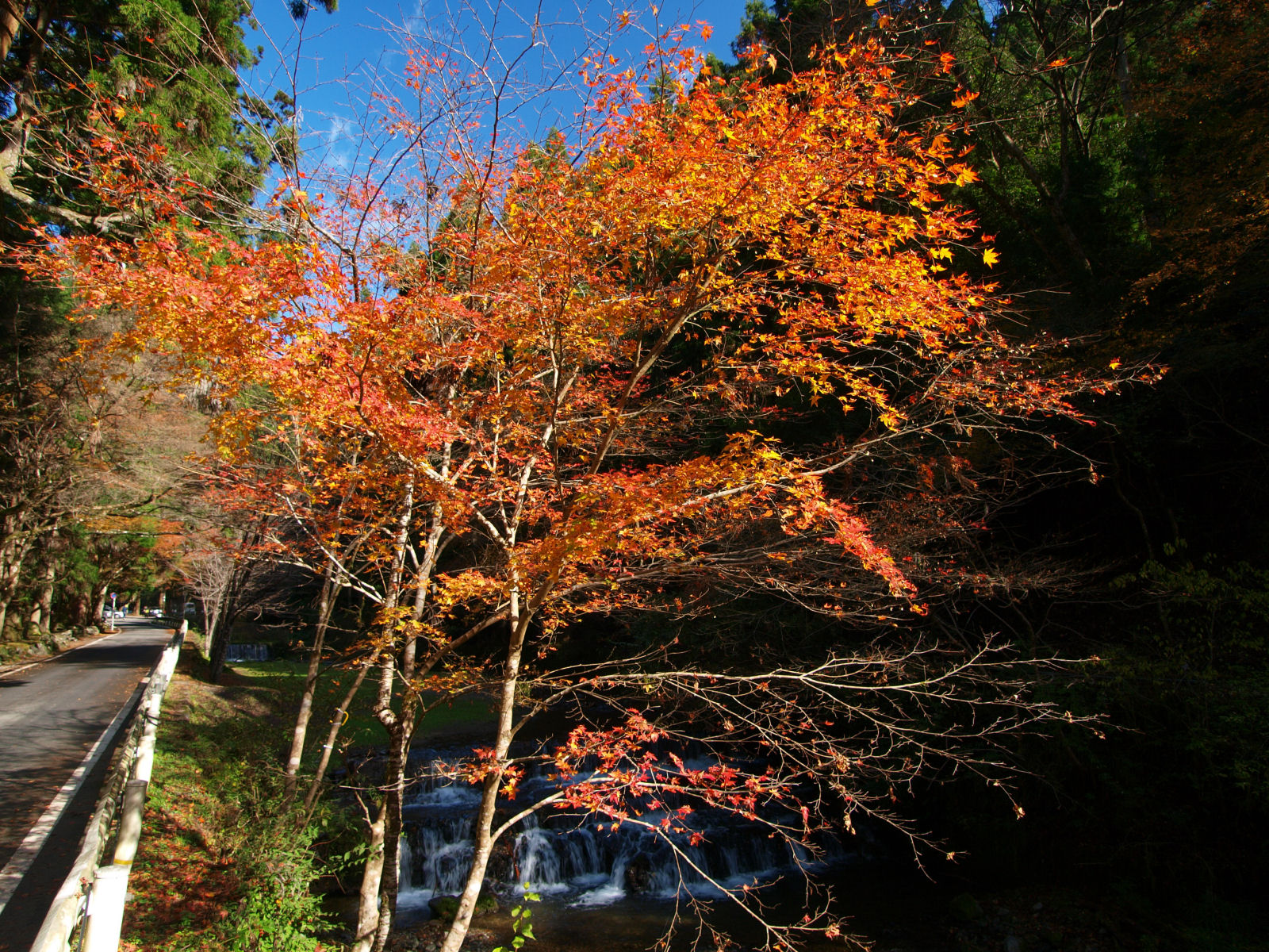 | 貴船川で見られた紅葉を,陽が照っているタイミングで撮影.. |