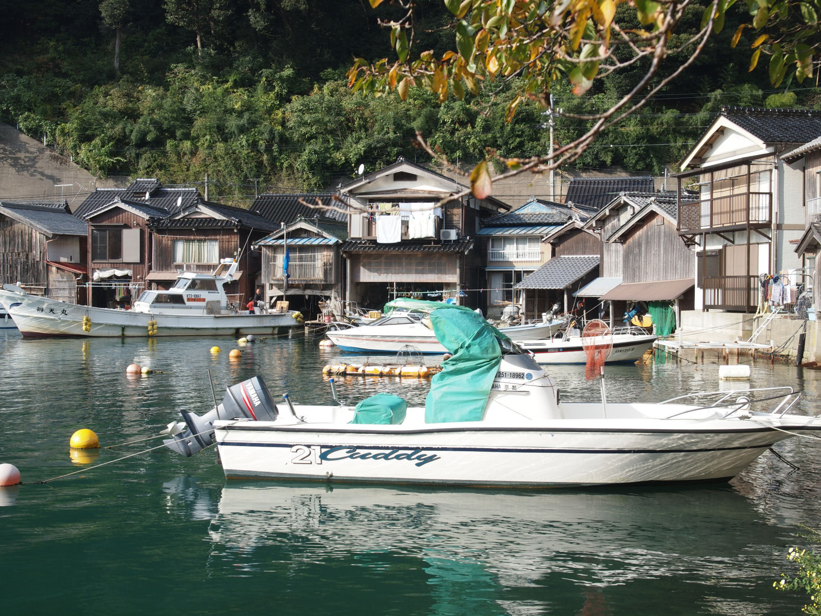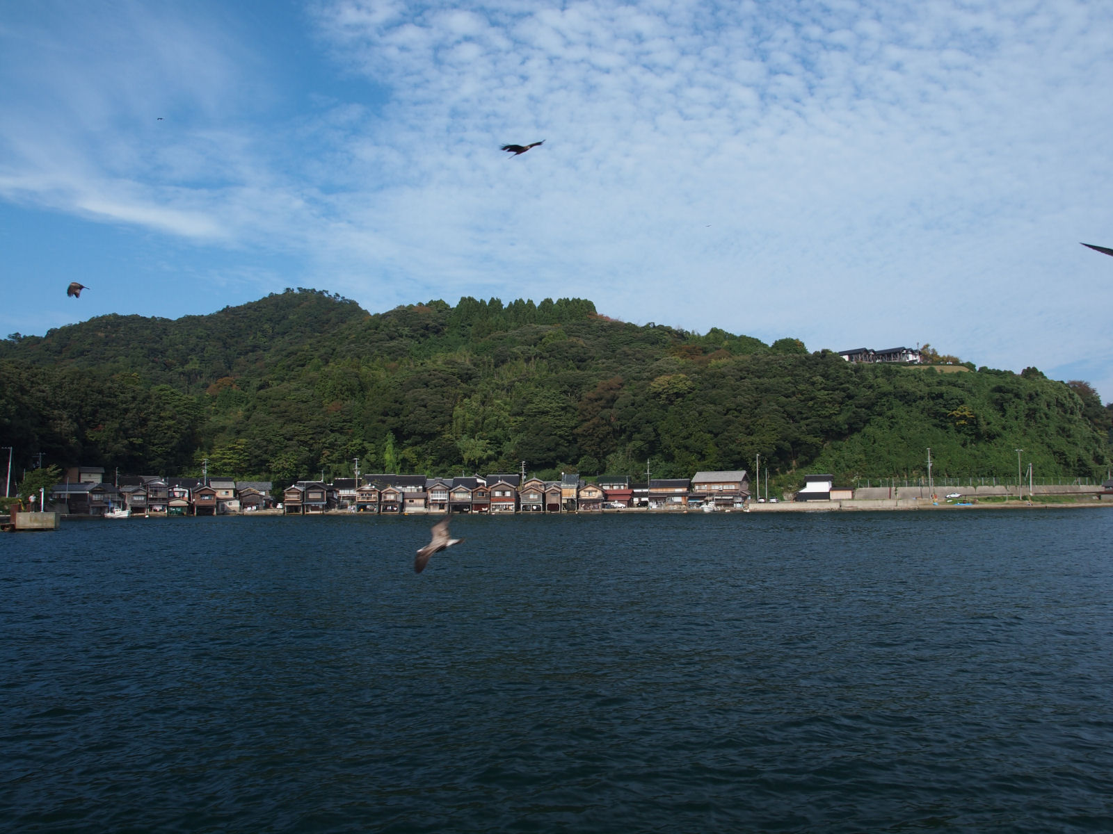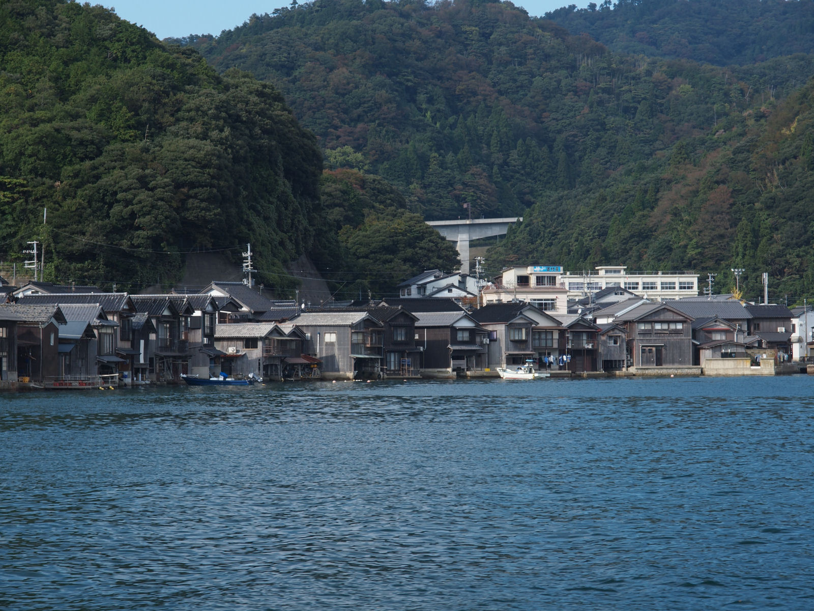 | 遊覧船から舟屋の光景. |