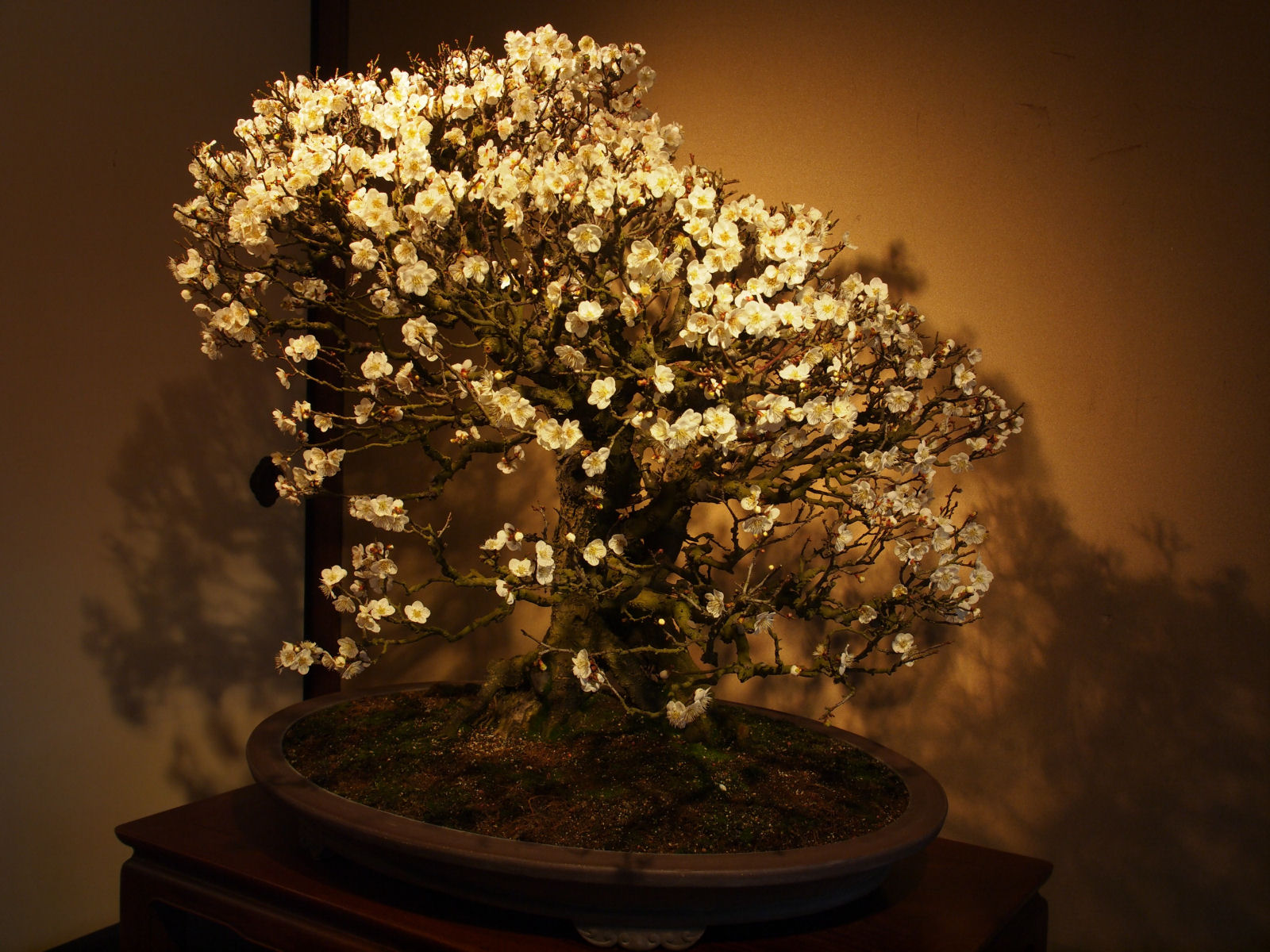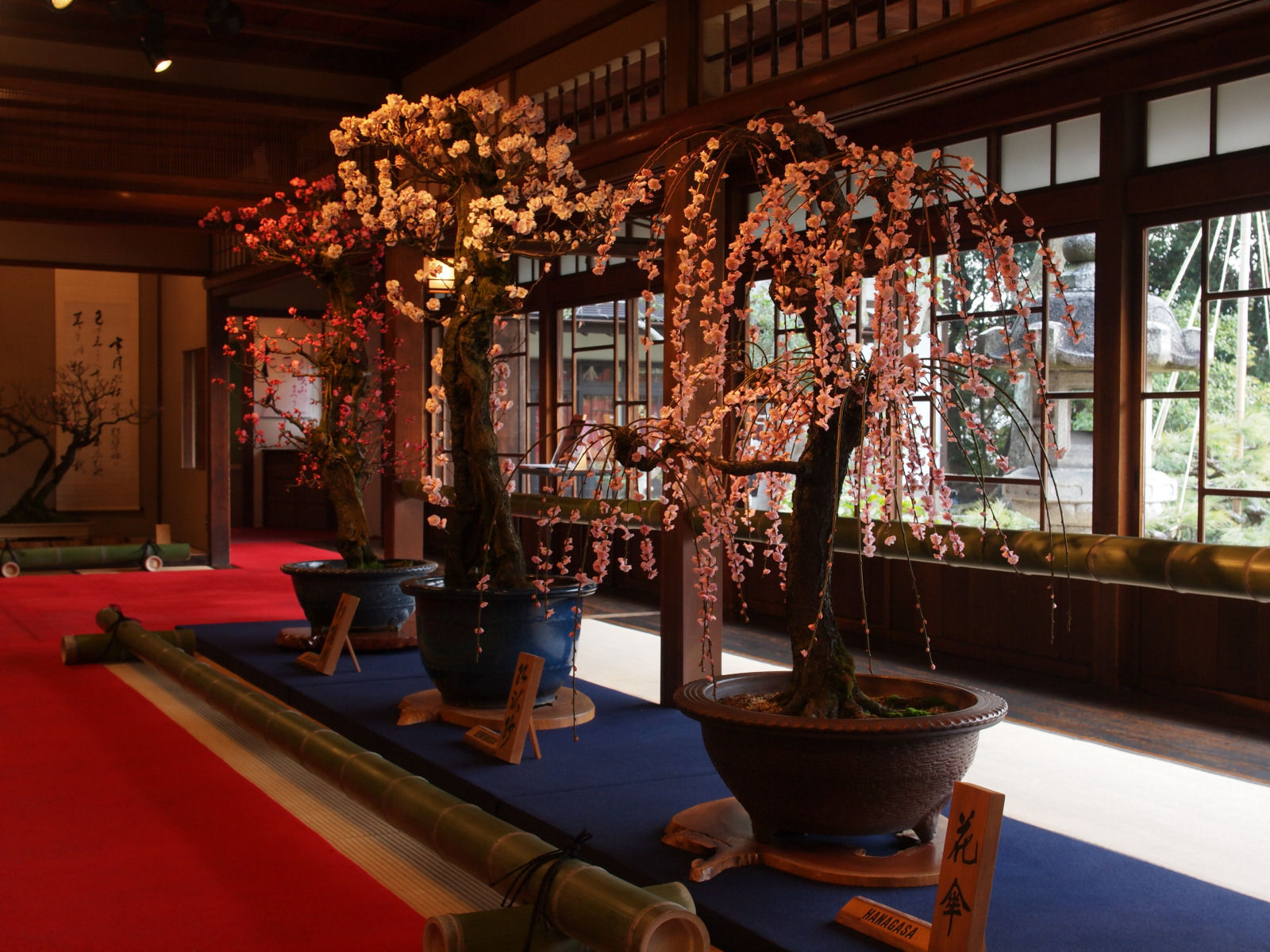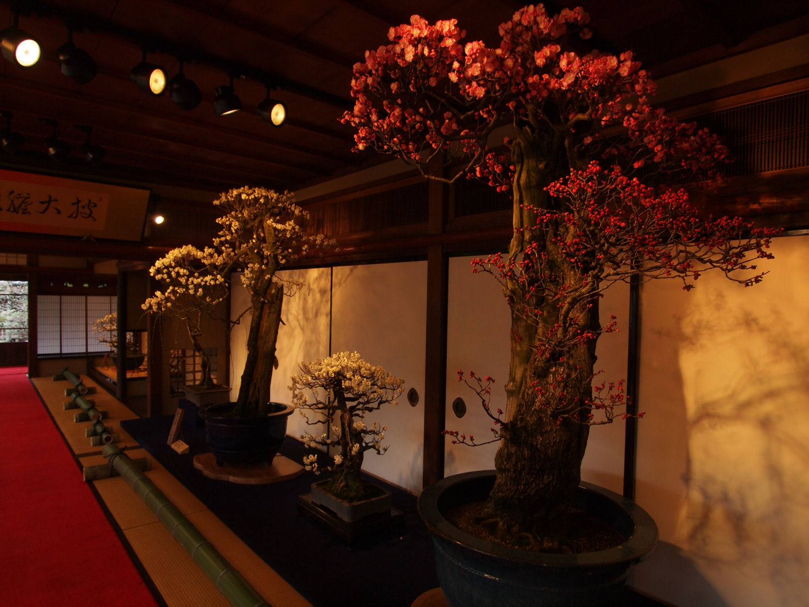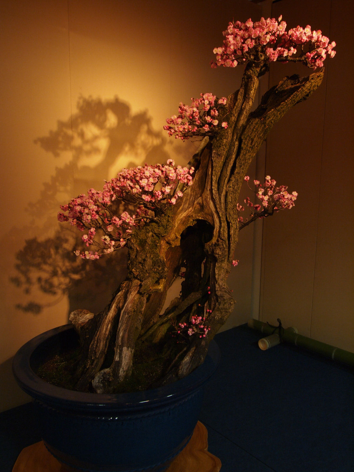 盆栽というと小さなものを思い浮かべますが,この盆梅展では樹齢が最長で400年という他に類を見ない古木・老木が展示されていました.