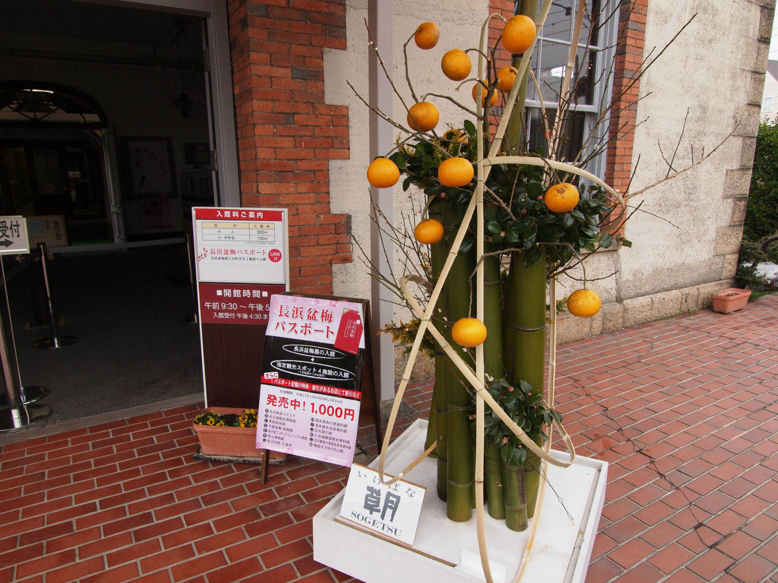 長浜について,すぐに盆梅展に行きました. こちらは盆梅展が開催されている慶雲館の入口. |