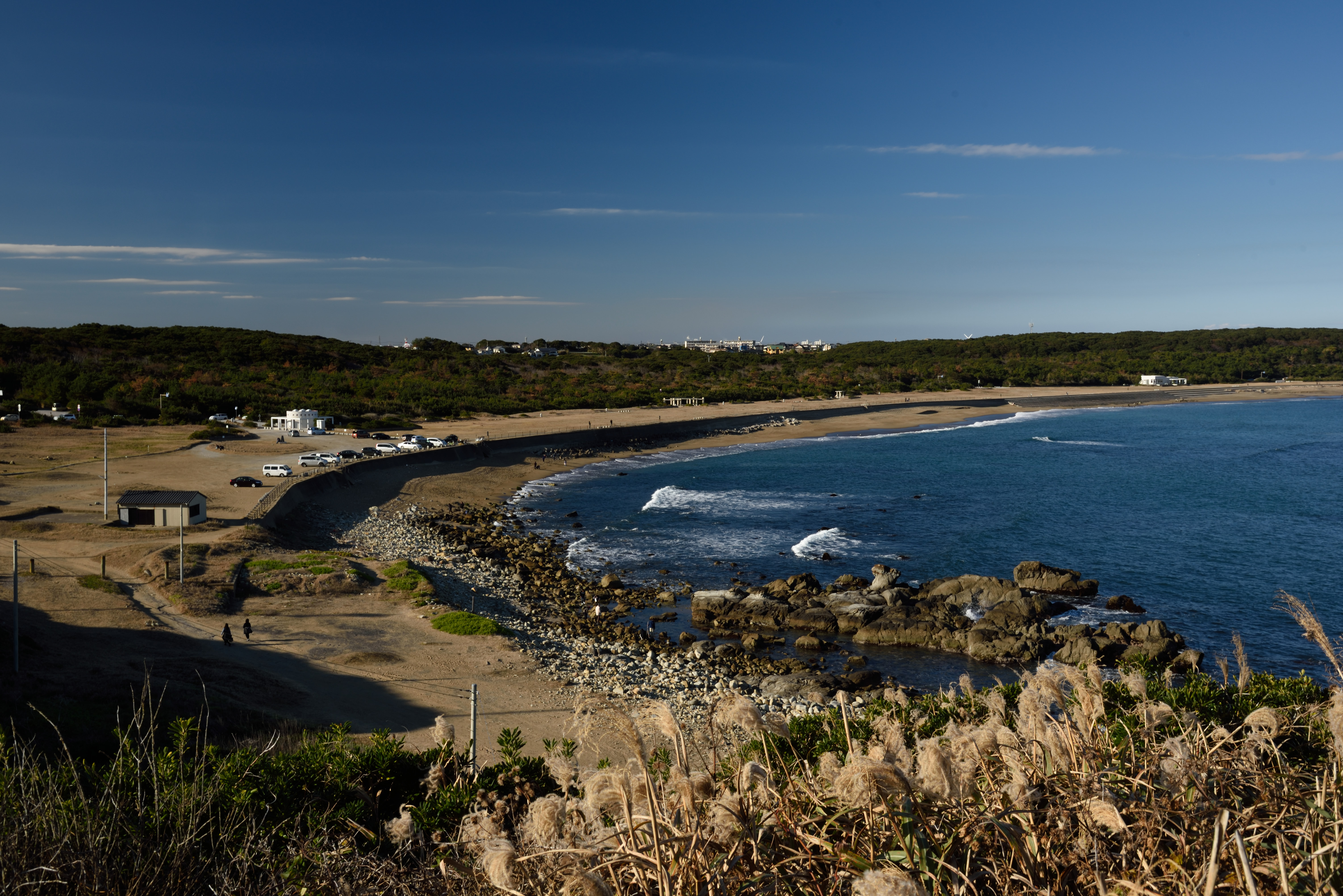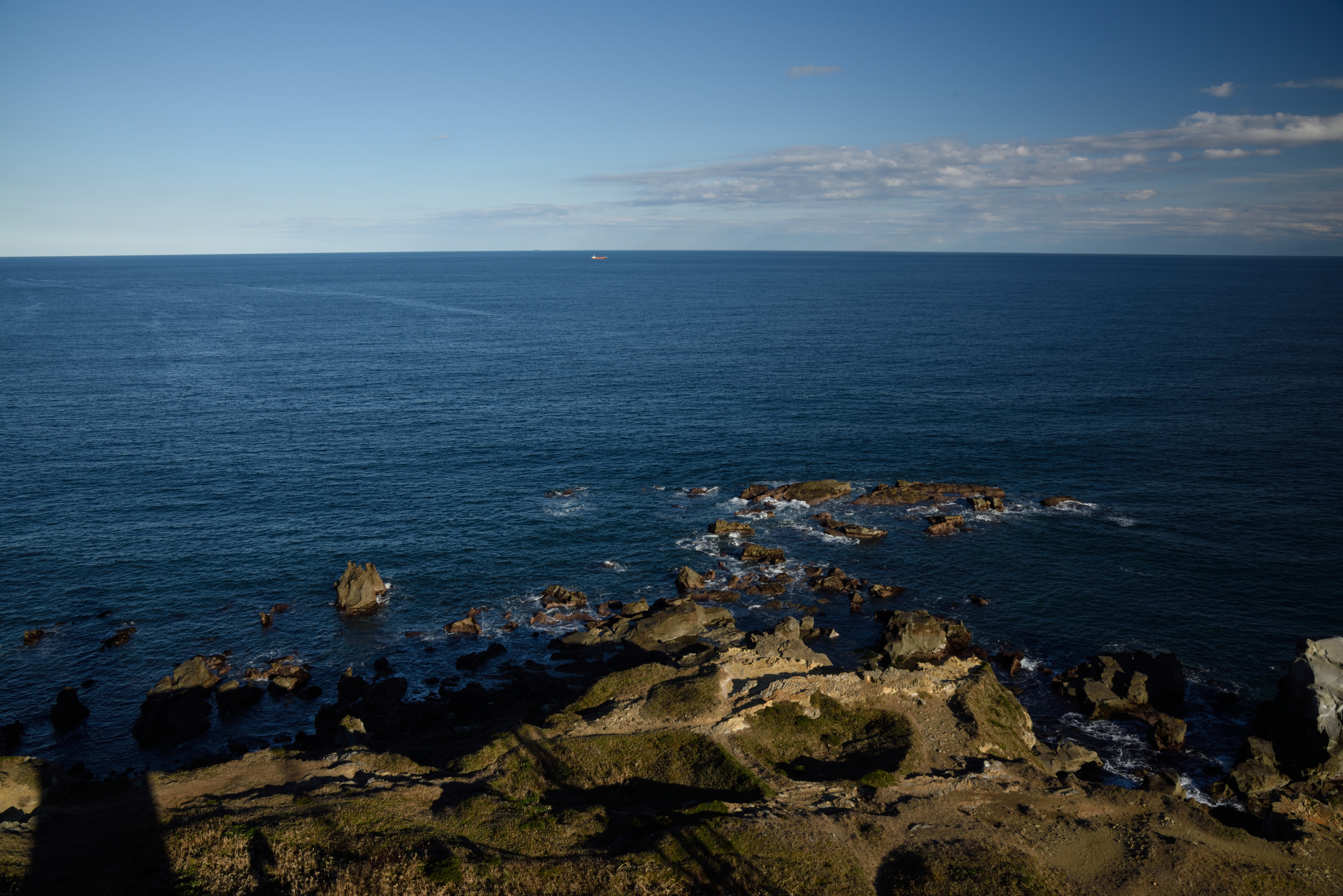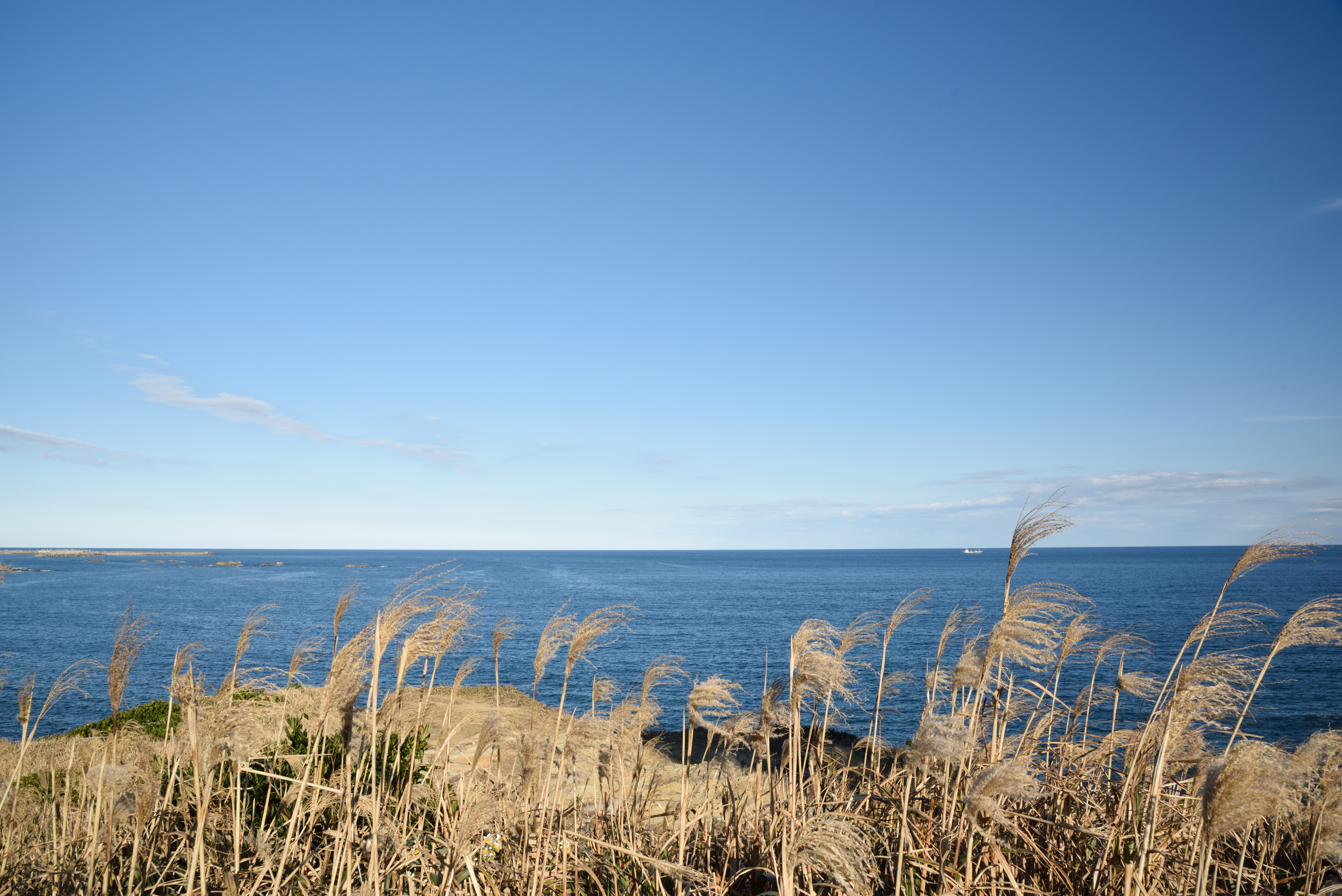 空と海の深い青が素晴らしいです. |