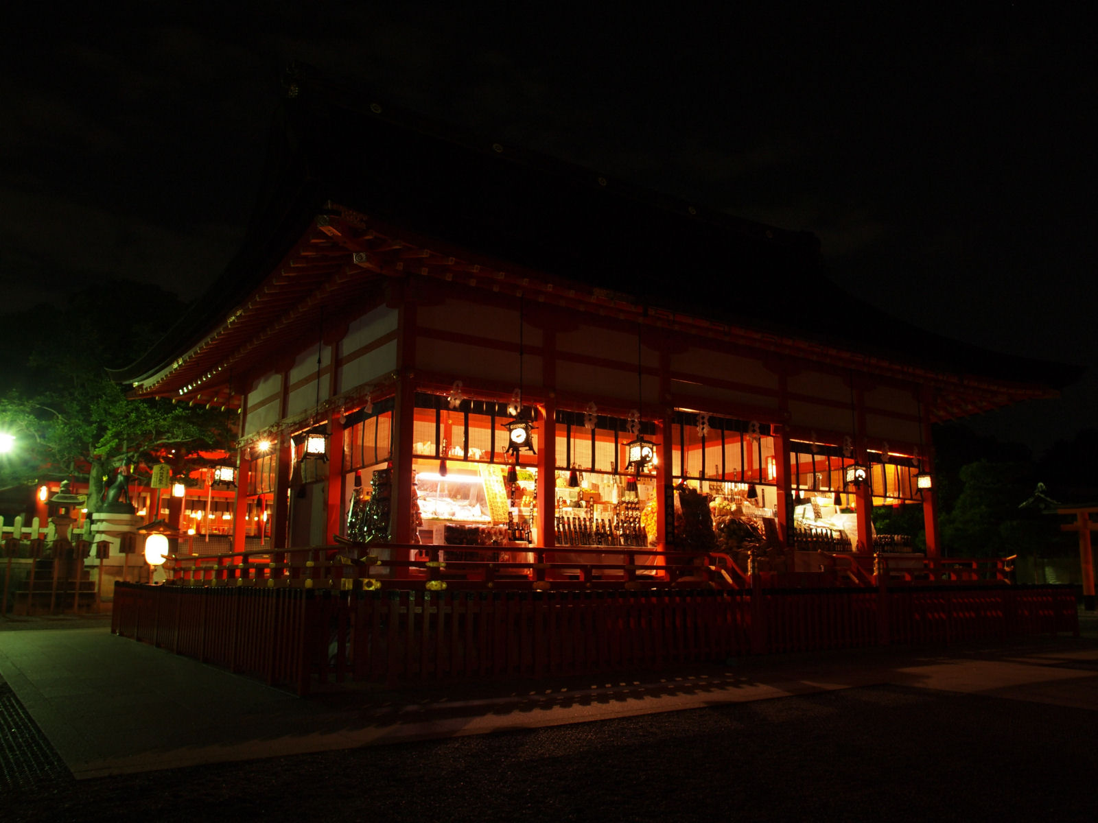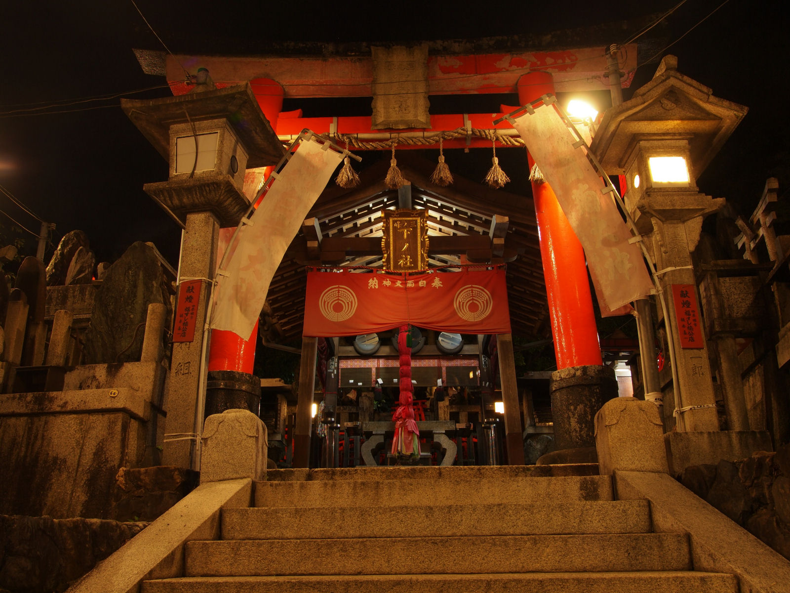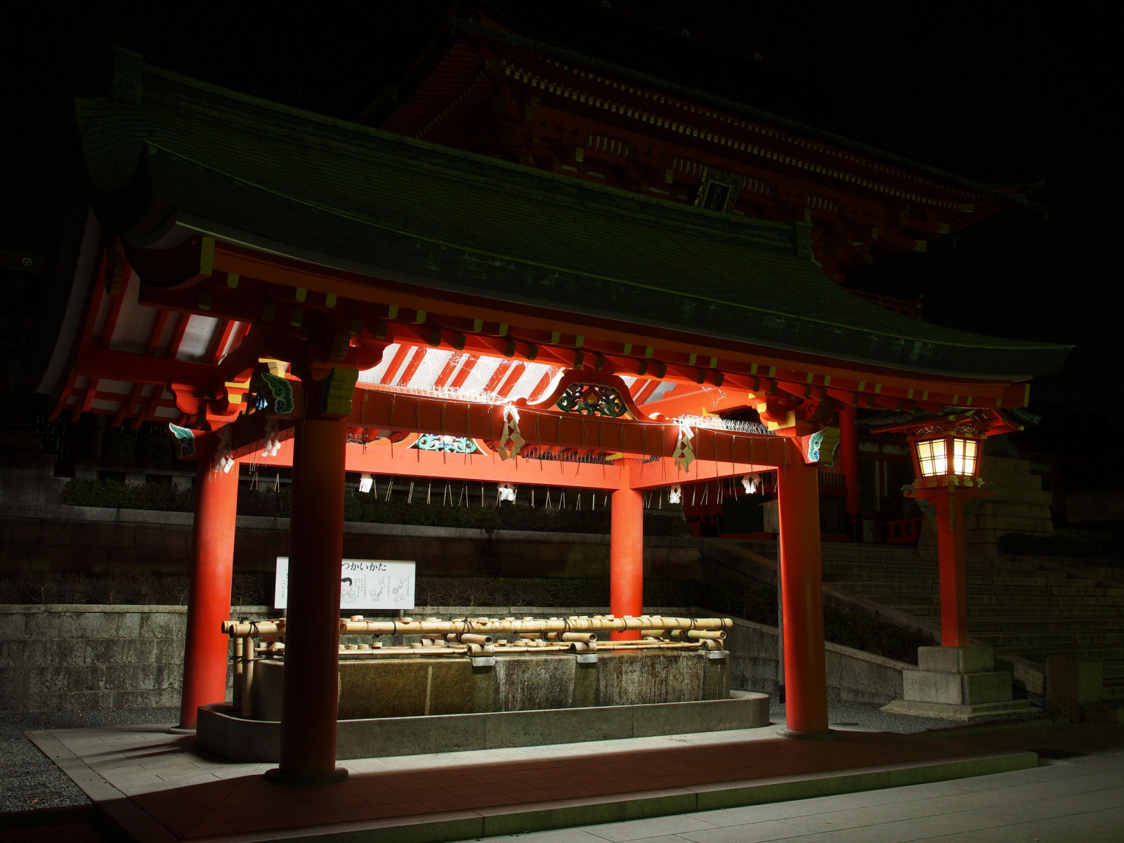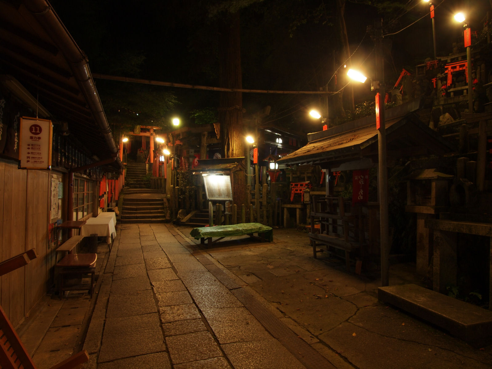 千本鳥居で有名な伏見稲荷大社ですが,ここは夜でも 昼間に比べると人はほとんど見られないものの,本殿から新池辺りまではたびたび人とすれ違いました.肝試し気分の若者グループが多かった気がします. 天気も良く風も少なく,良い写真を撮ることができました. |
