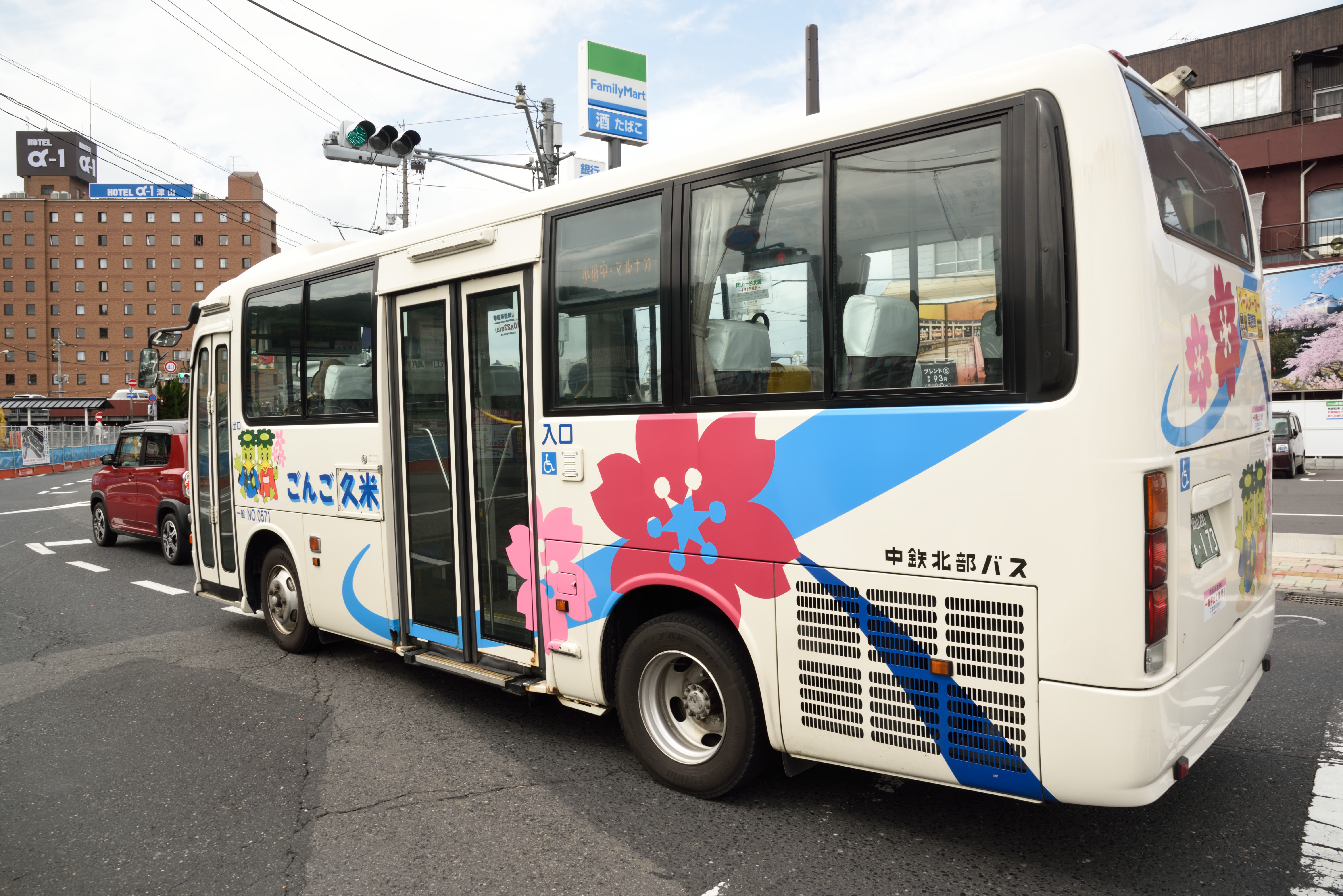 信号待ちをしているときに,地元の循環バス「ごんごバス」が通過していきました.