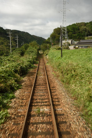 | 美作河井駅を過ぎ,長いトンネルを抜けると鳥取に入ります.山の中という感じが強くなっていきました. |
