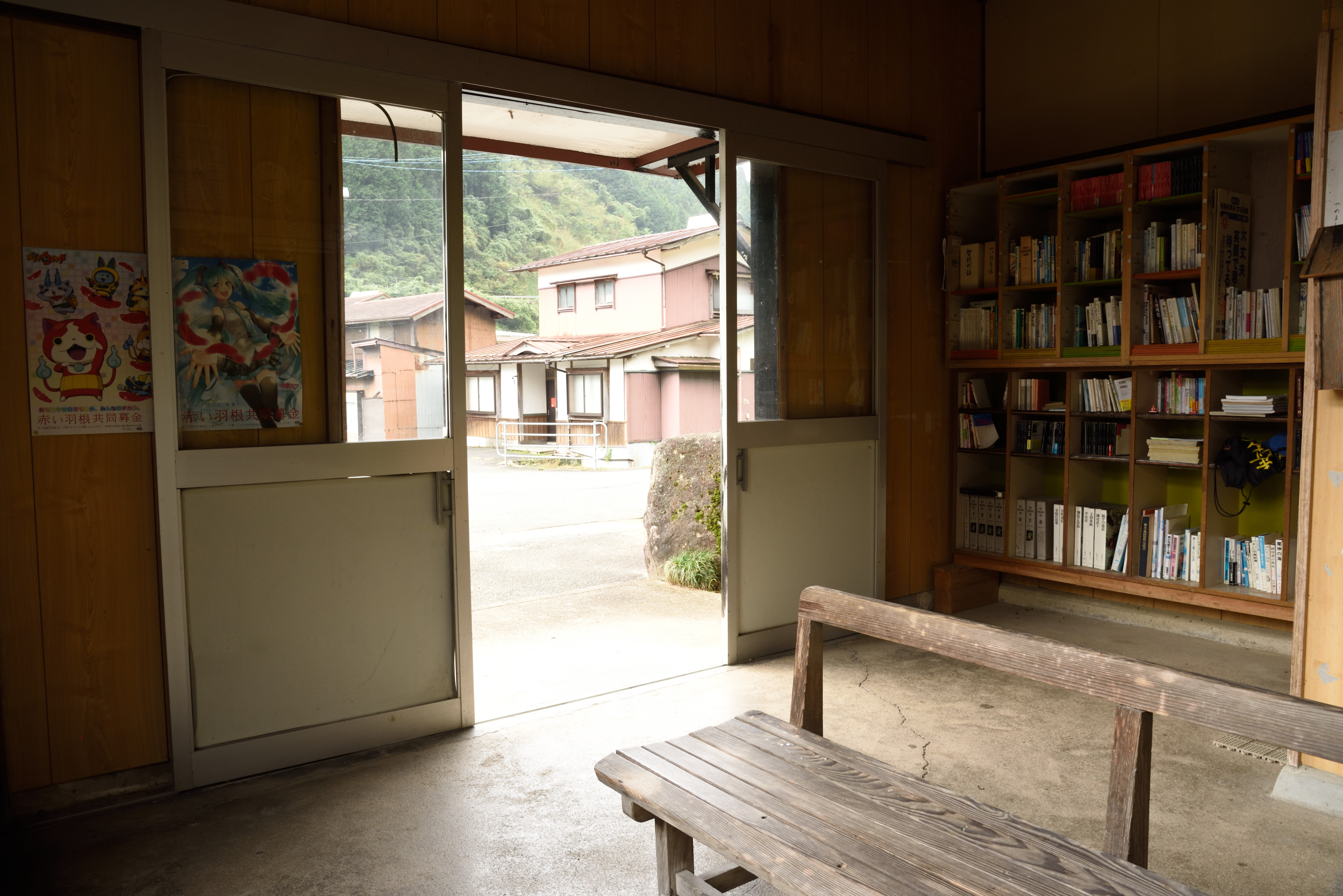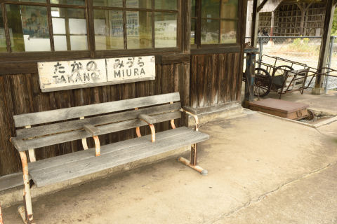 改札やベンチは昔のままで残してある一方で,妖怪ウォッチのポスターがあったりと雑然としている感じです. |