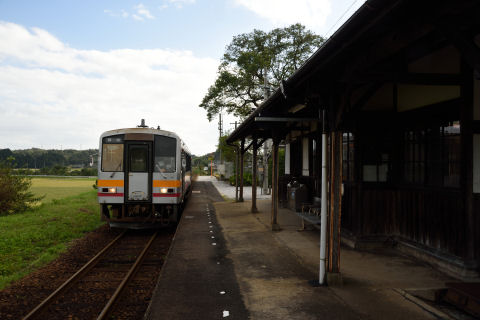 | まず最初に来たのは知和(ちわ)駅です.1931年開業当時の木造の駅舎がそのまま残っています. |