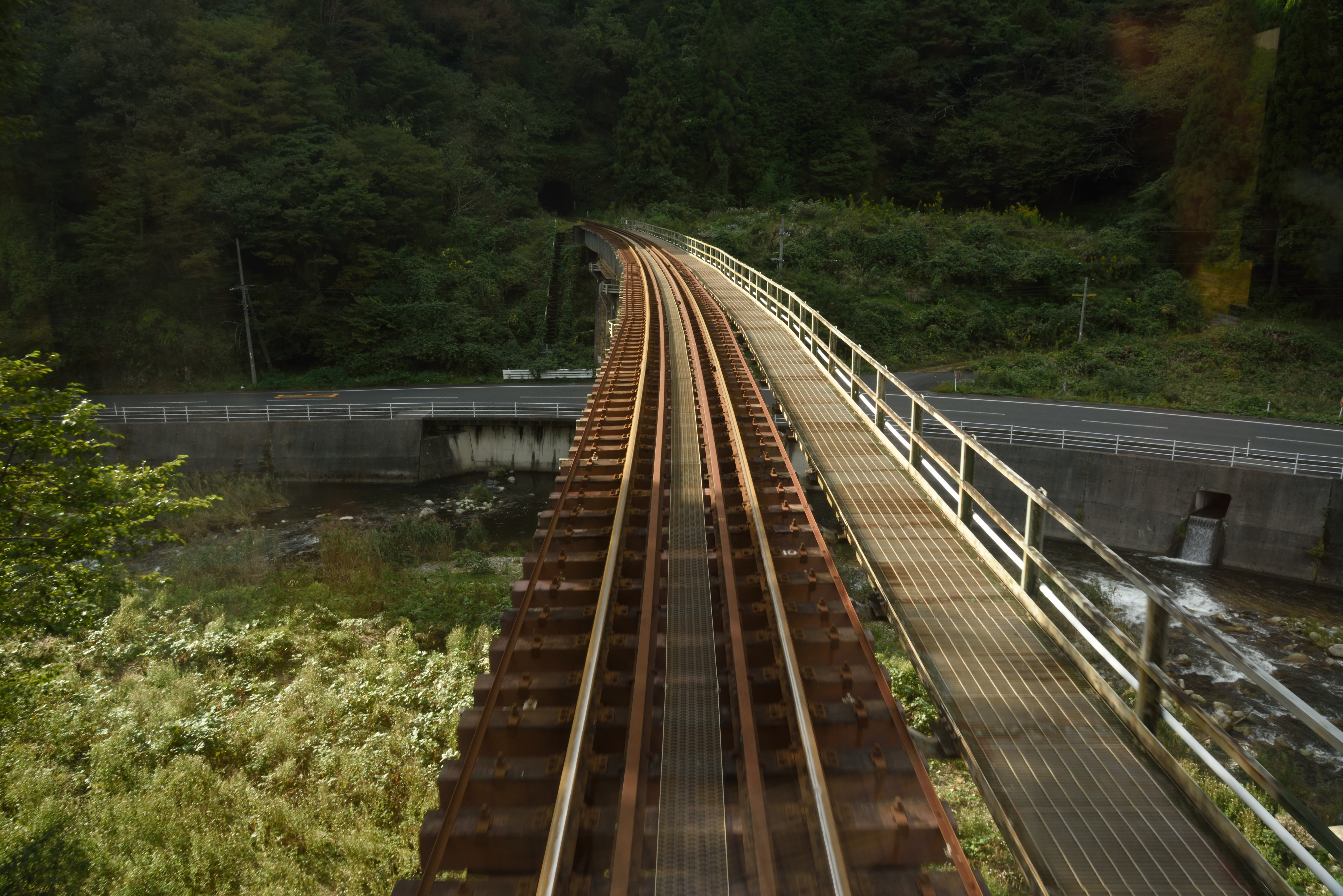 | 渓流の上の橋梁を渡っているところ. |