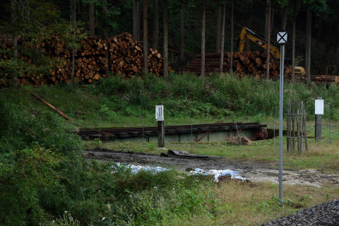 ホームの少し先に,かつて除雪車の向きを変えるために使用されていた転車台があります. 次の電車の出発前に見つけて急いでとったため,近くで撮ったものは手ブレしていました・・・orz |