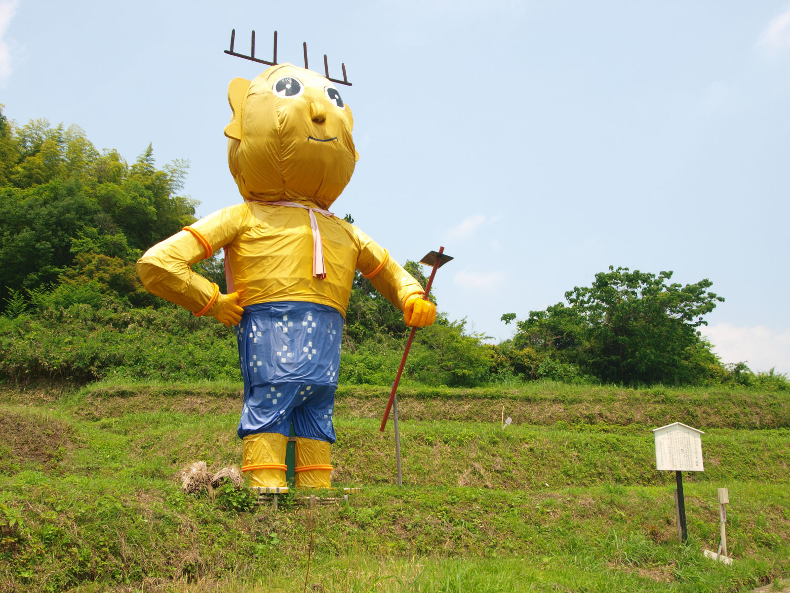 棚田に突然そびえ立つ,せんとくんのオブジェ.