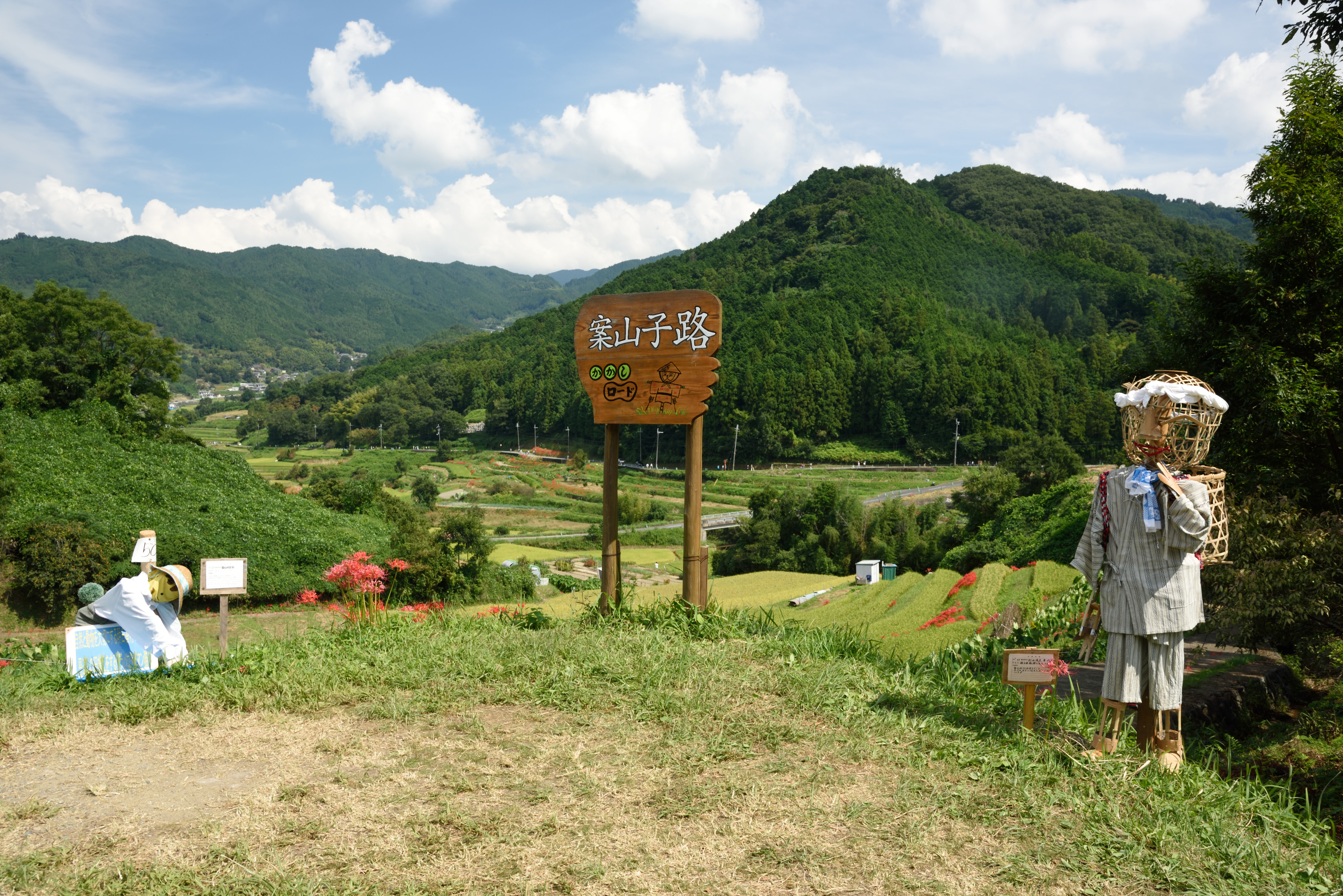 稲渕の棚田では,この時期いつも案山子ロードと呼ばれる場所でかかしの展示が行われています.
