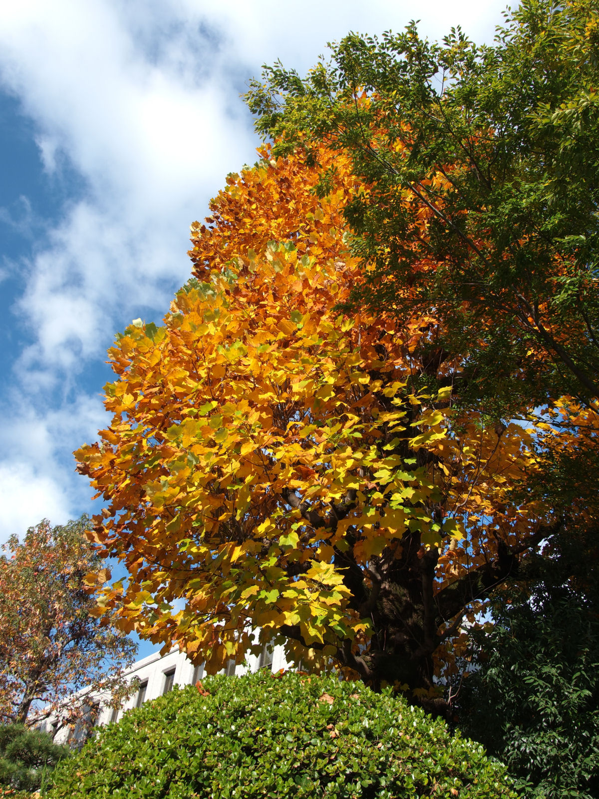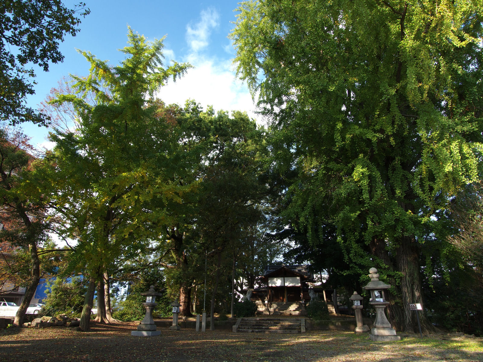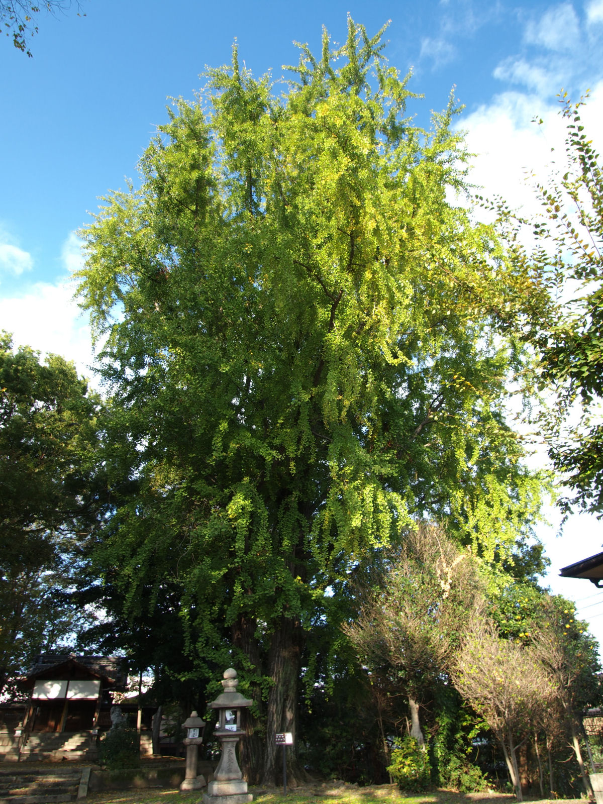 大きなイチョウがありますが,まだ青々としていました.