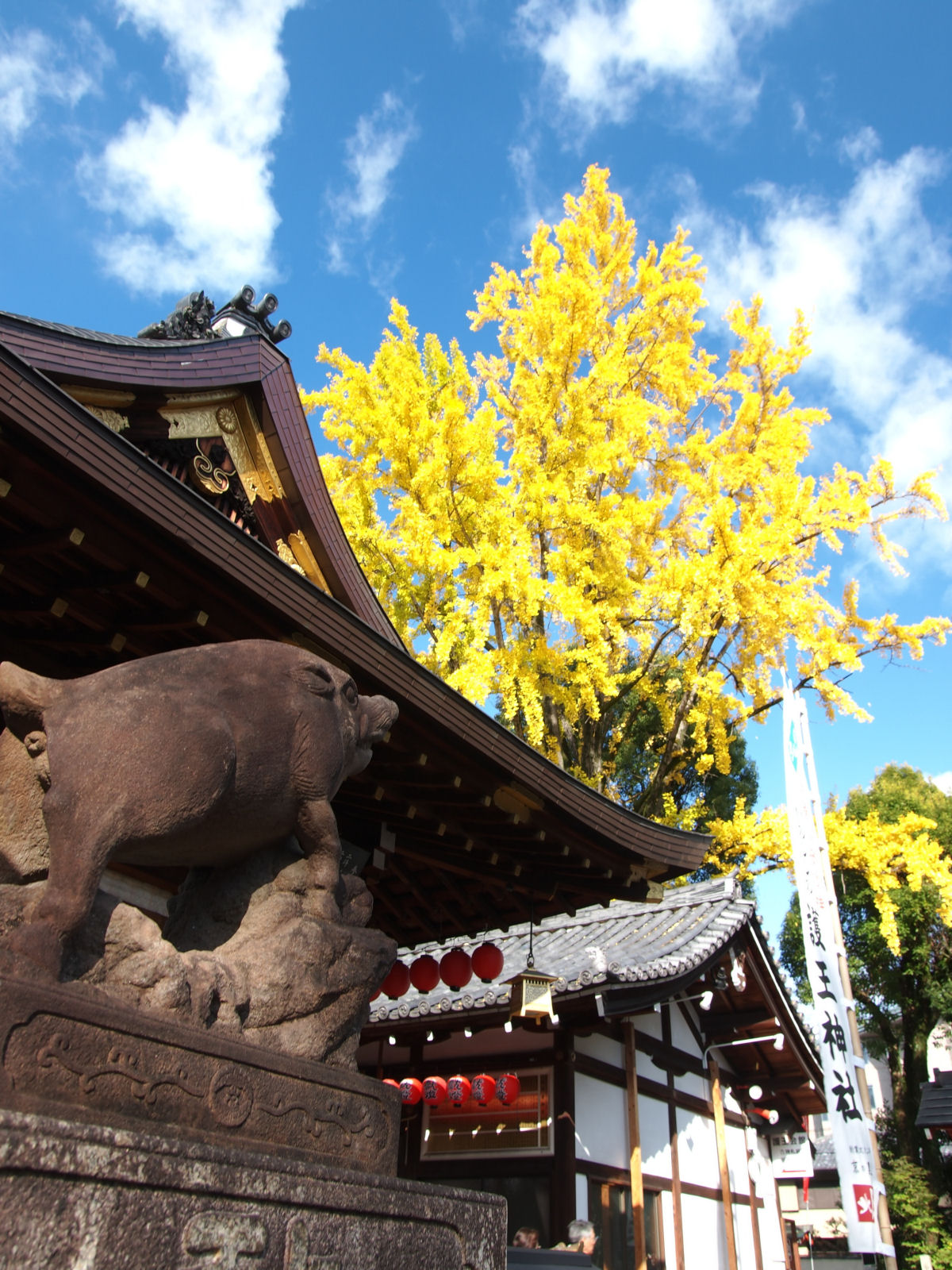ここの神社には狛犬ではなく狛イノシシがいます.
