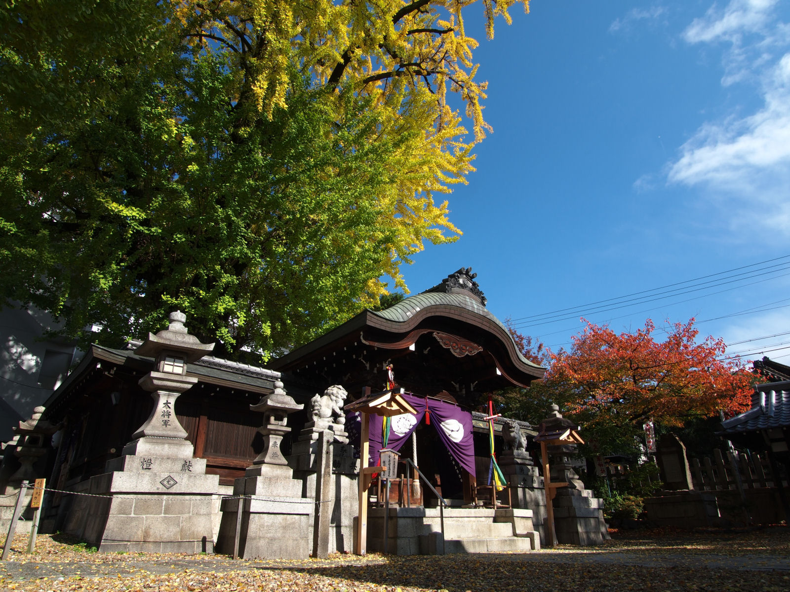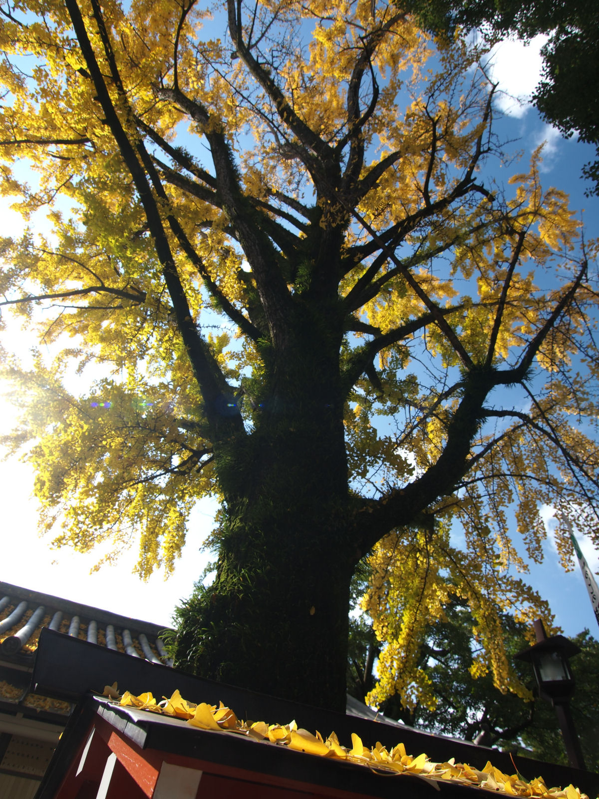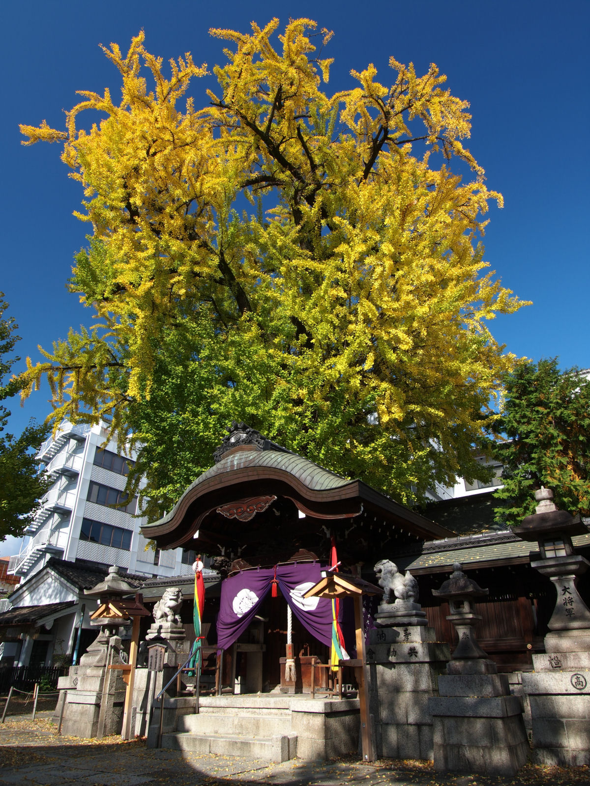 京阪三条の近くにある,大将軍神社のイチョウ.