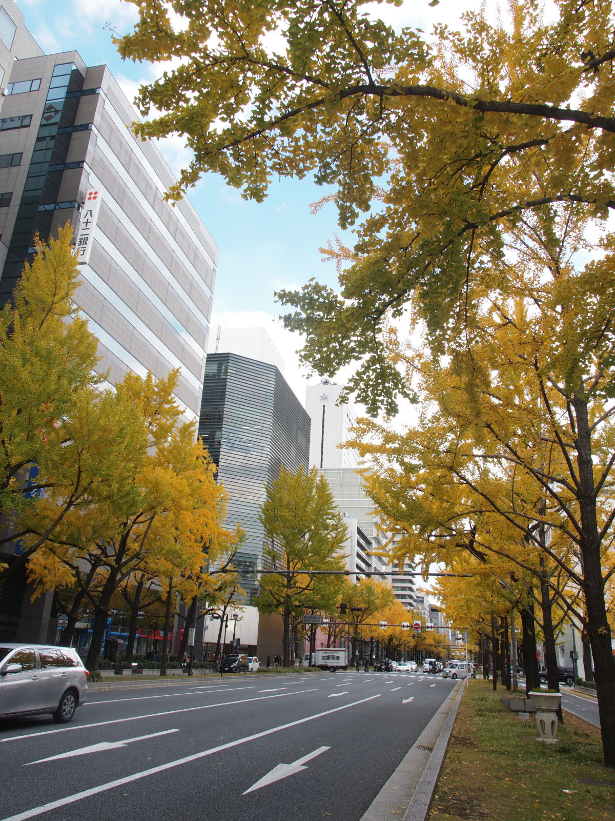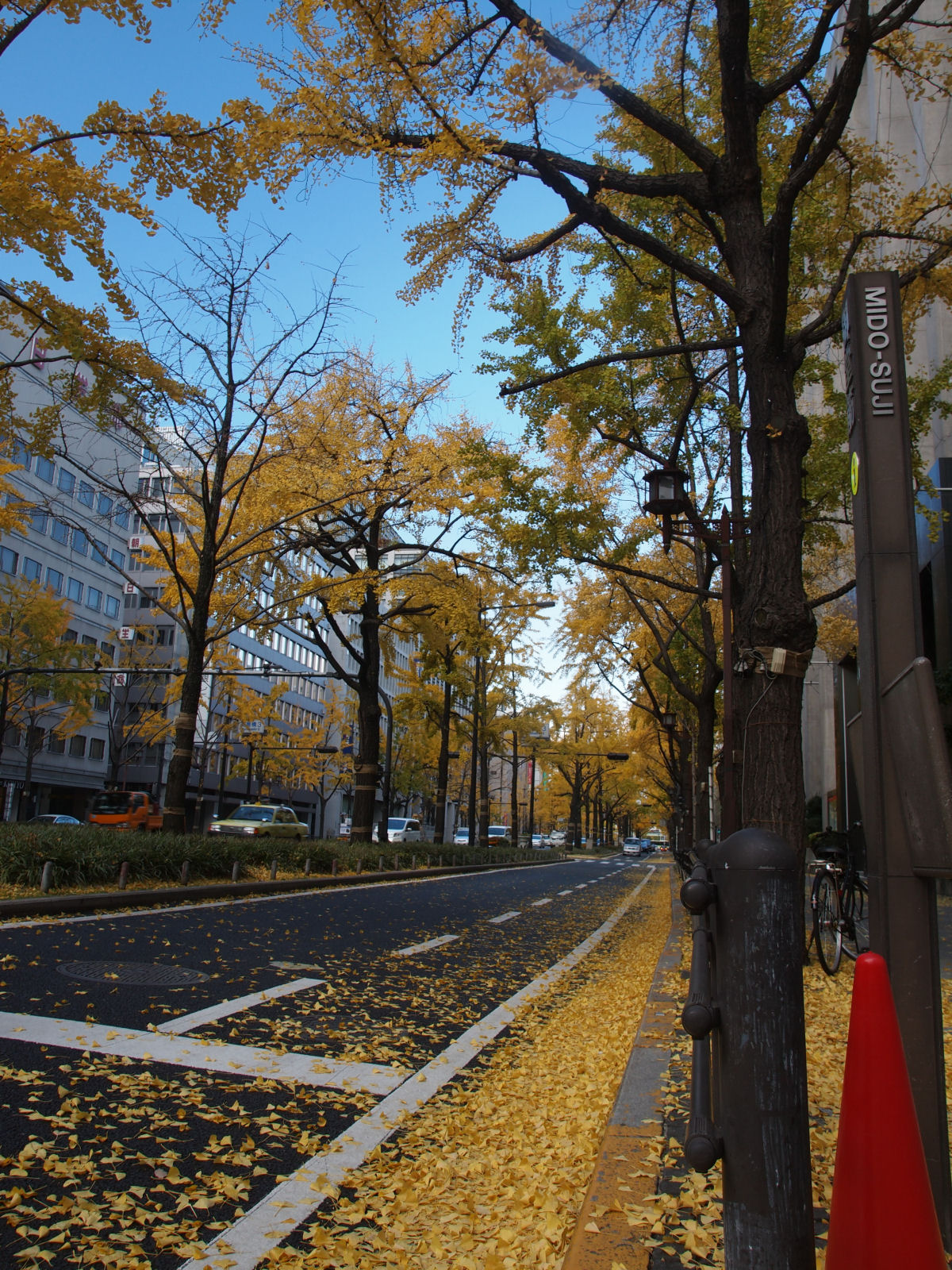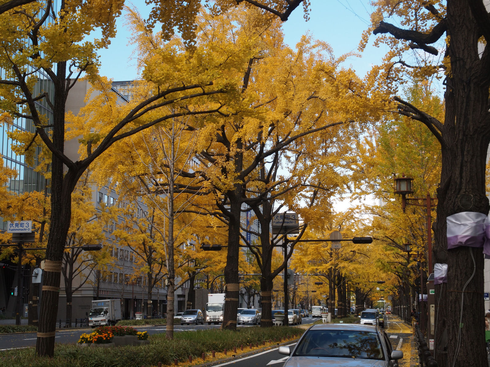 全長約4kmにわたってイチョウが植えられているという大阪の御堂筋に行きました.