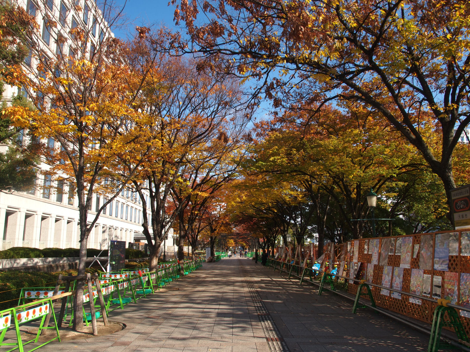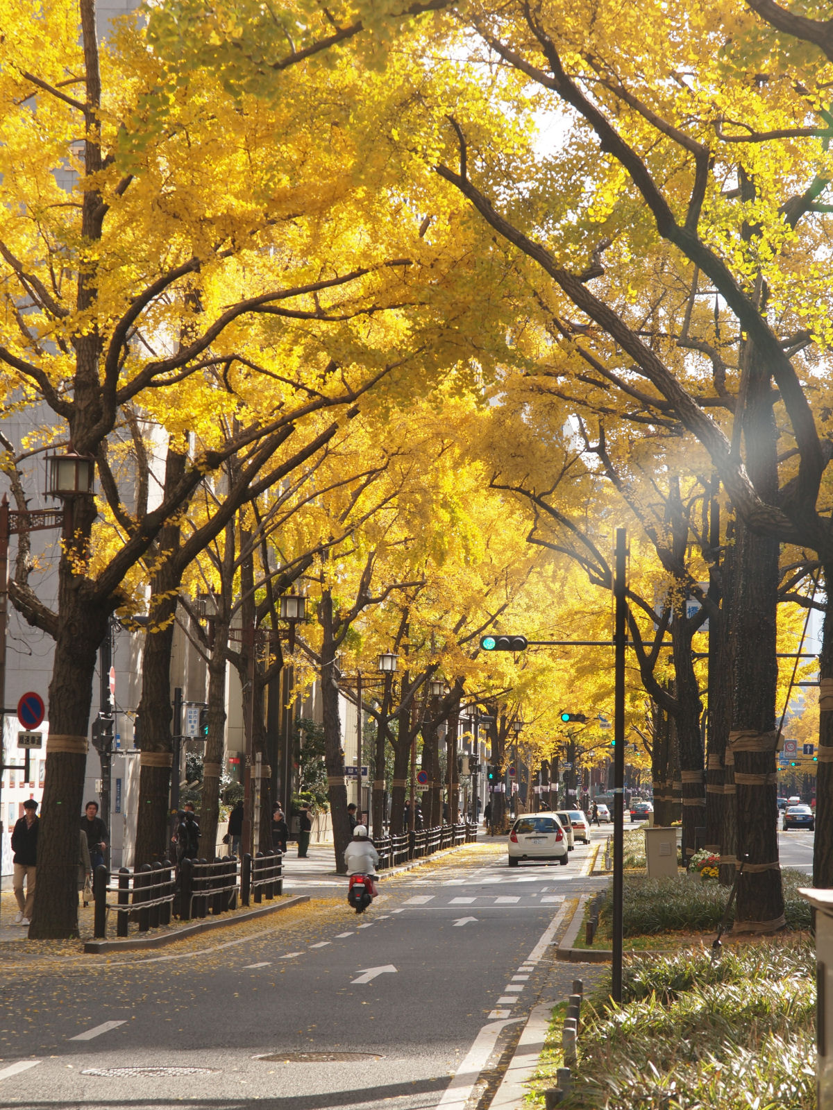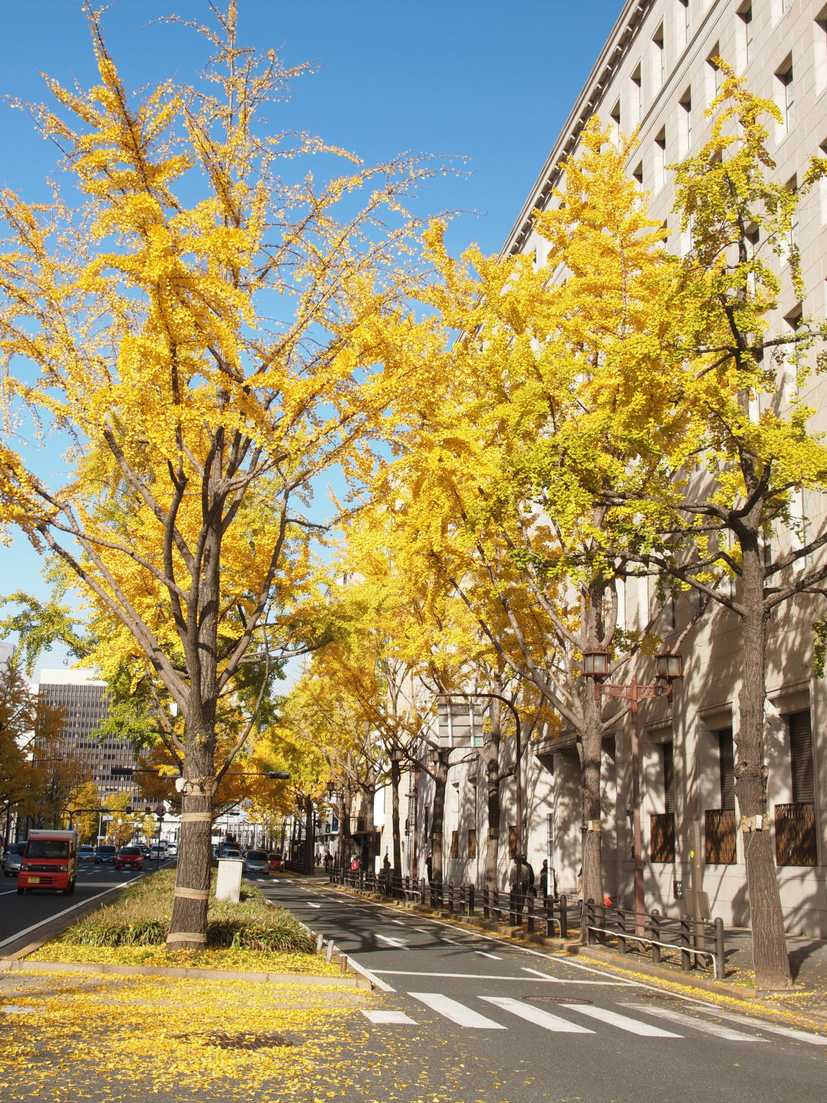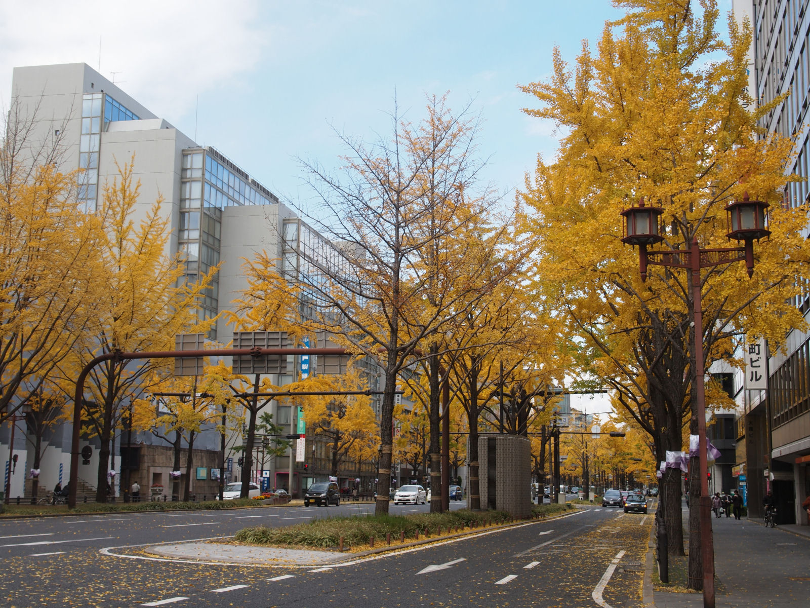 全長約4kmにわたってイチョウが植えられているという大阪の御堂筋に行きました.