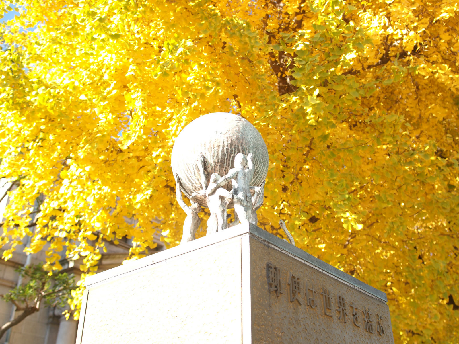 その下には「郵便は世界を結ぶ」と書いてあるポストとオブジェがありました.