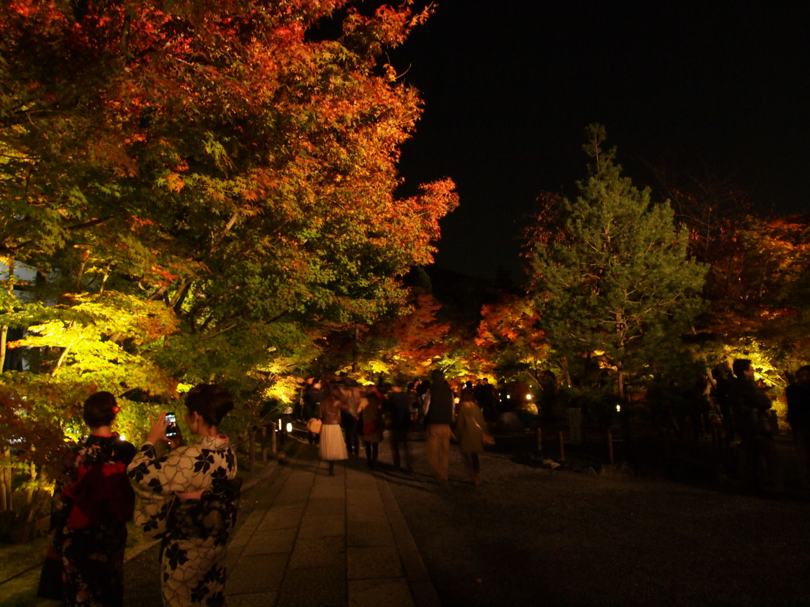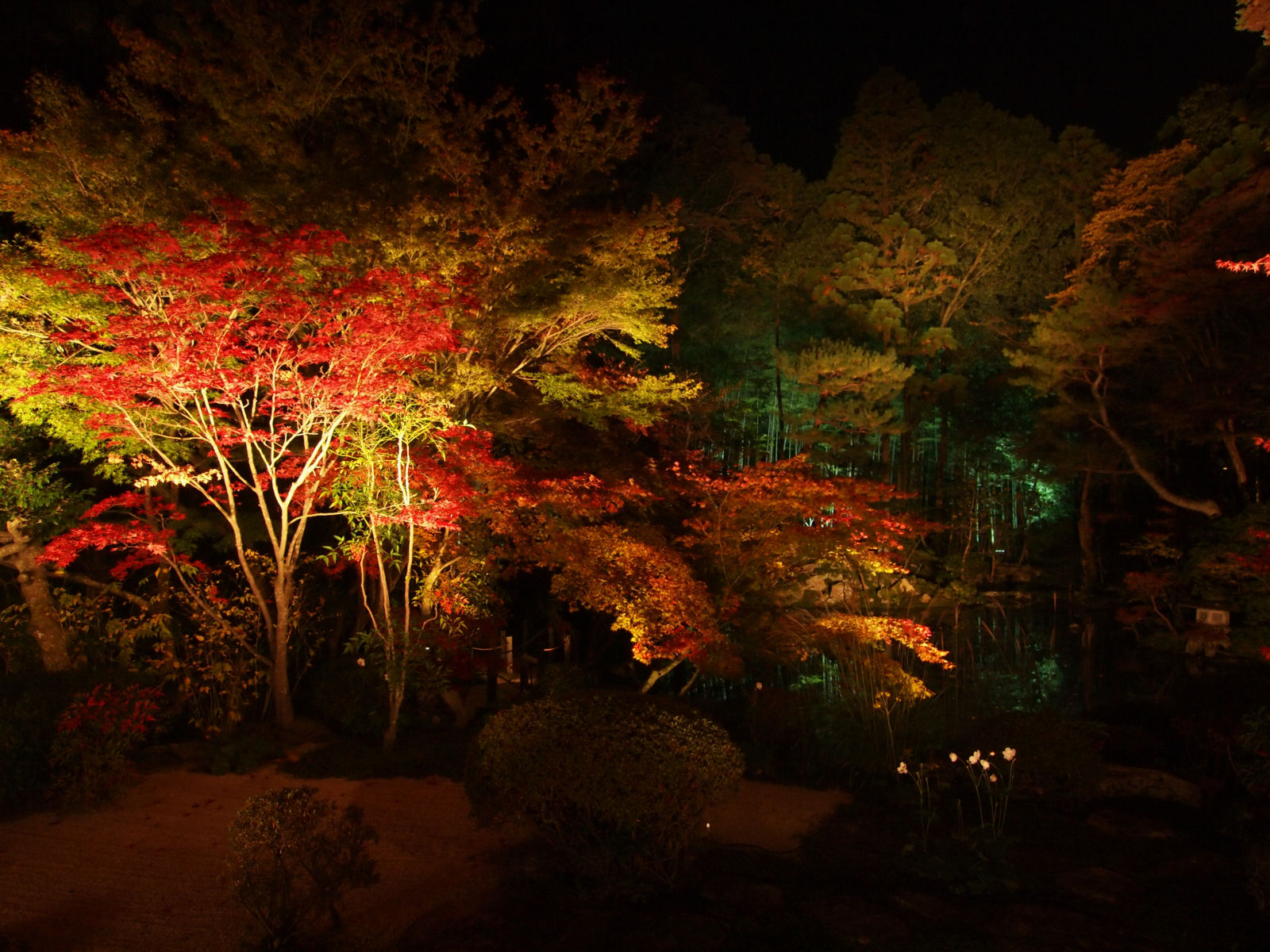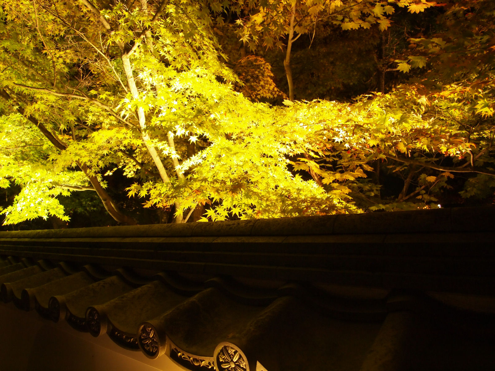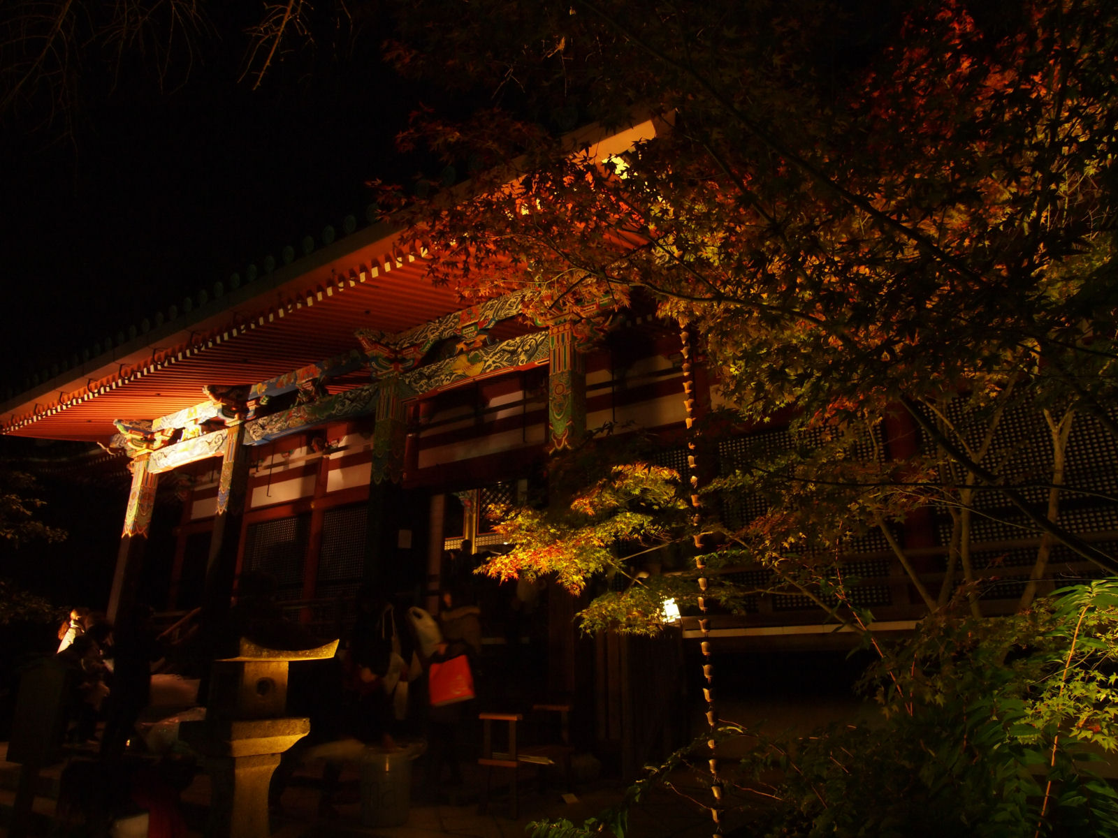 紅葉は見頃で,ライトアップにより紅く照らされていました.