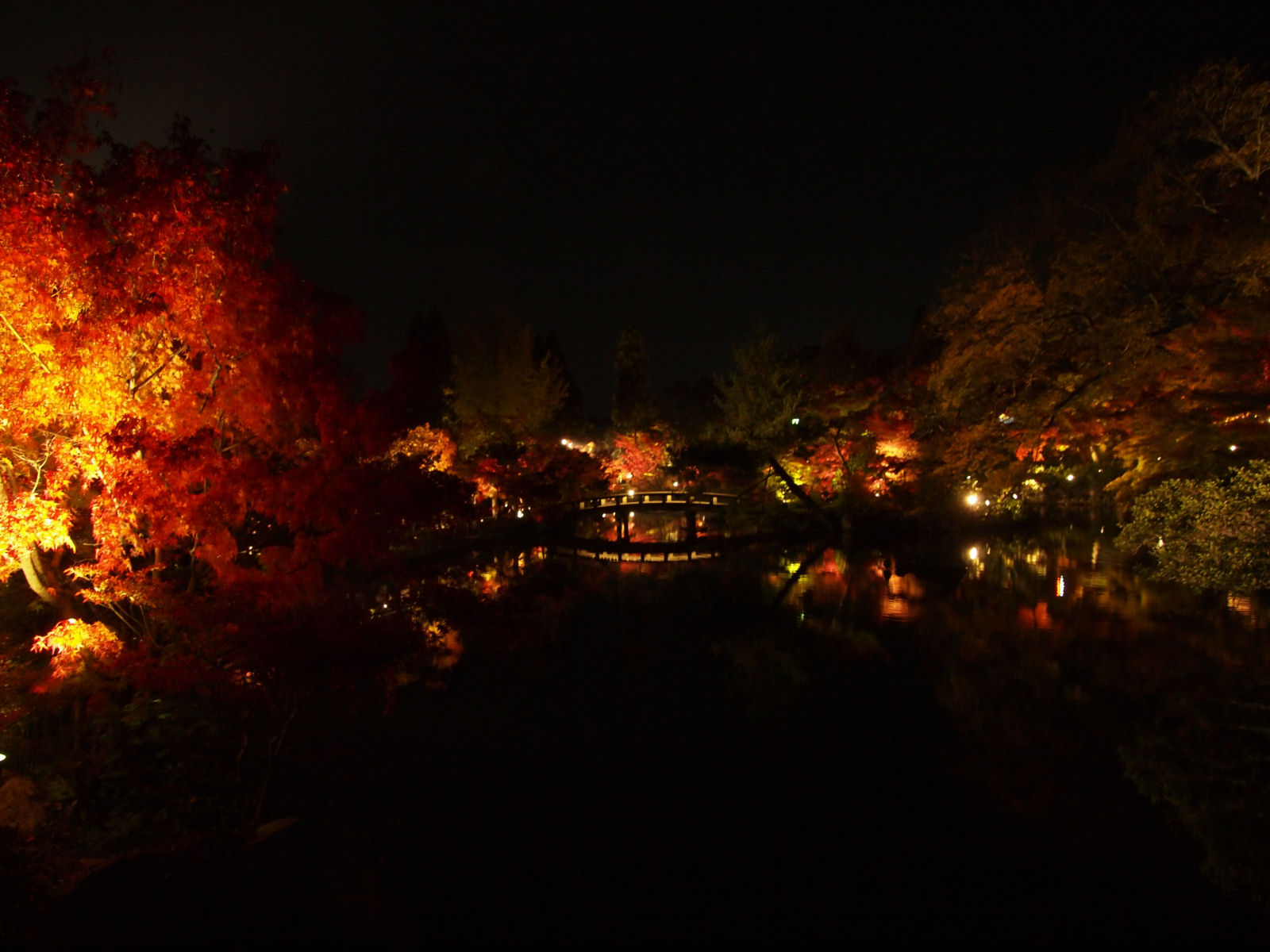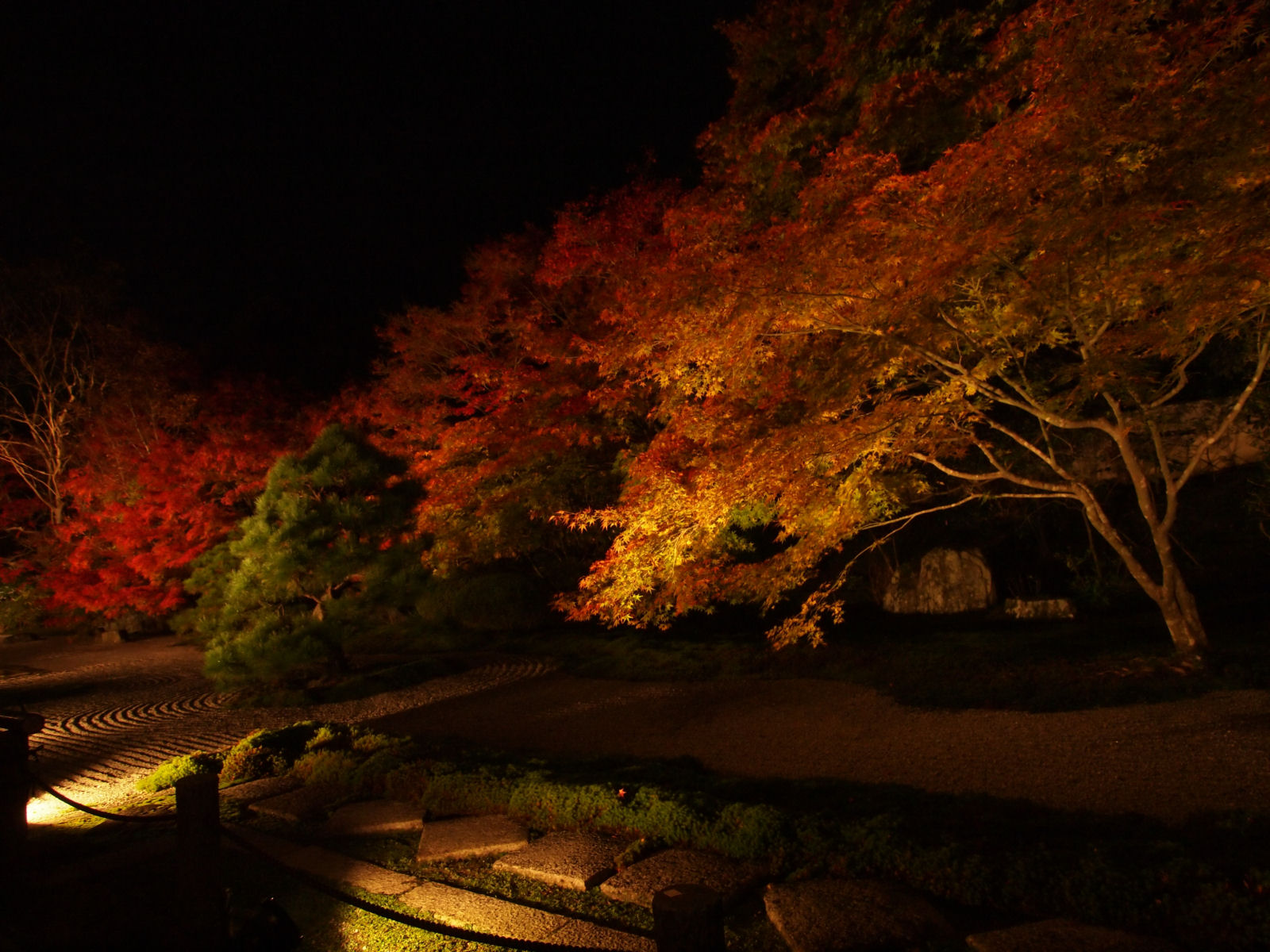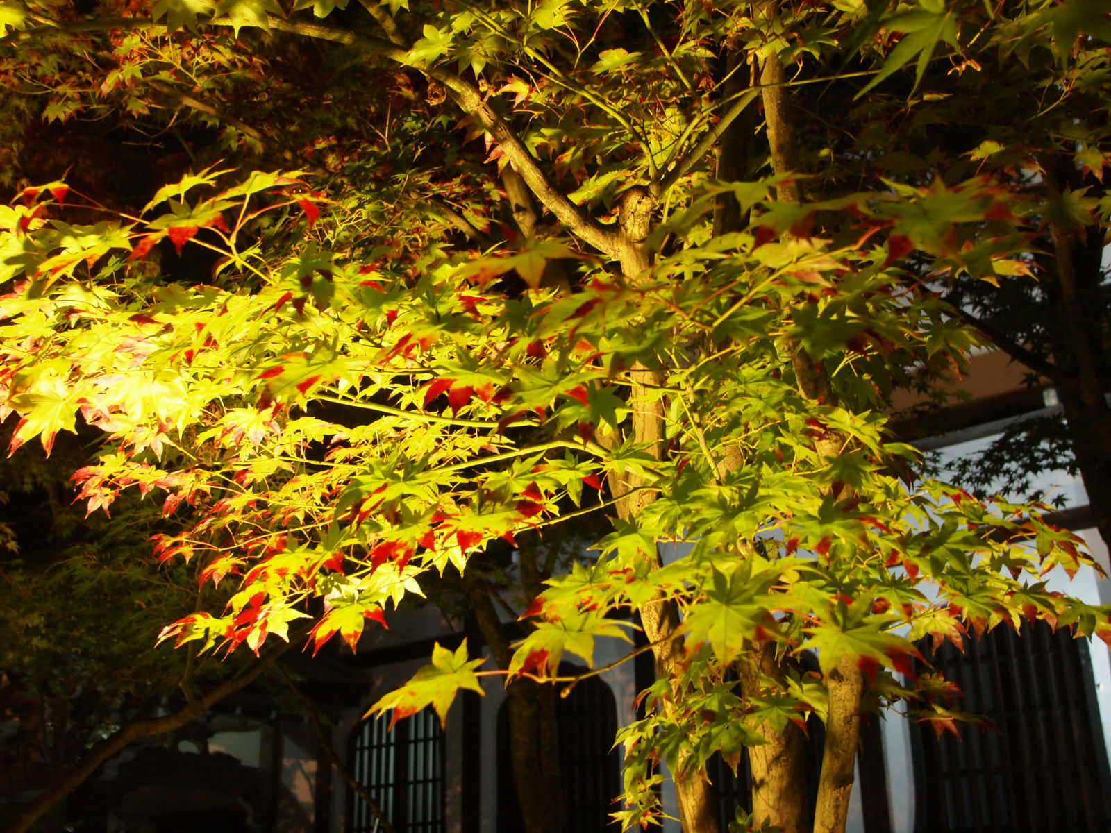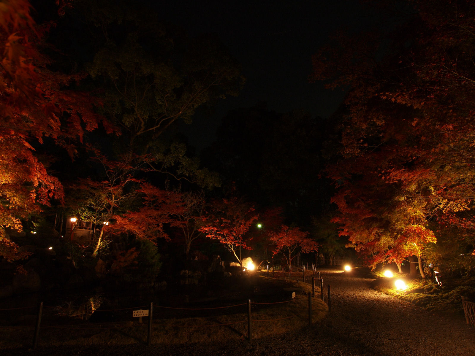 紅葉は見頃で,ライトアップにより紅く照らされていました.