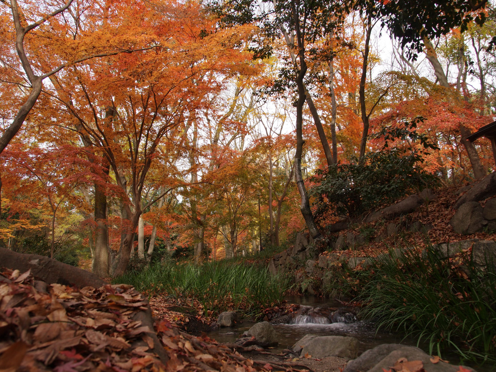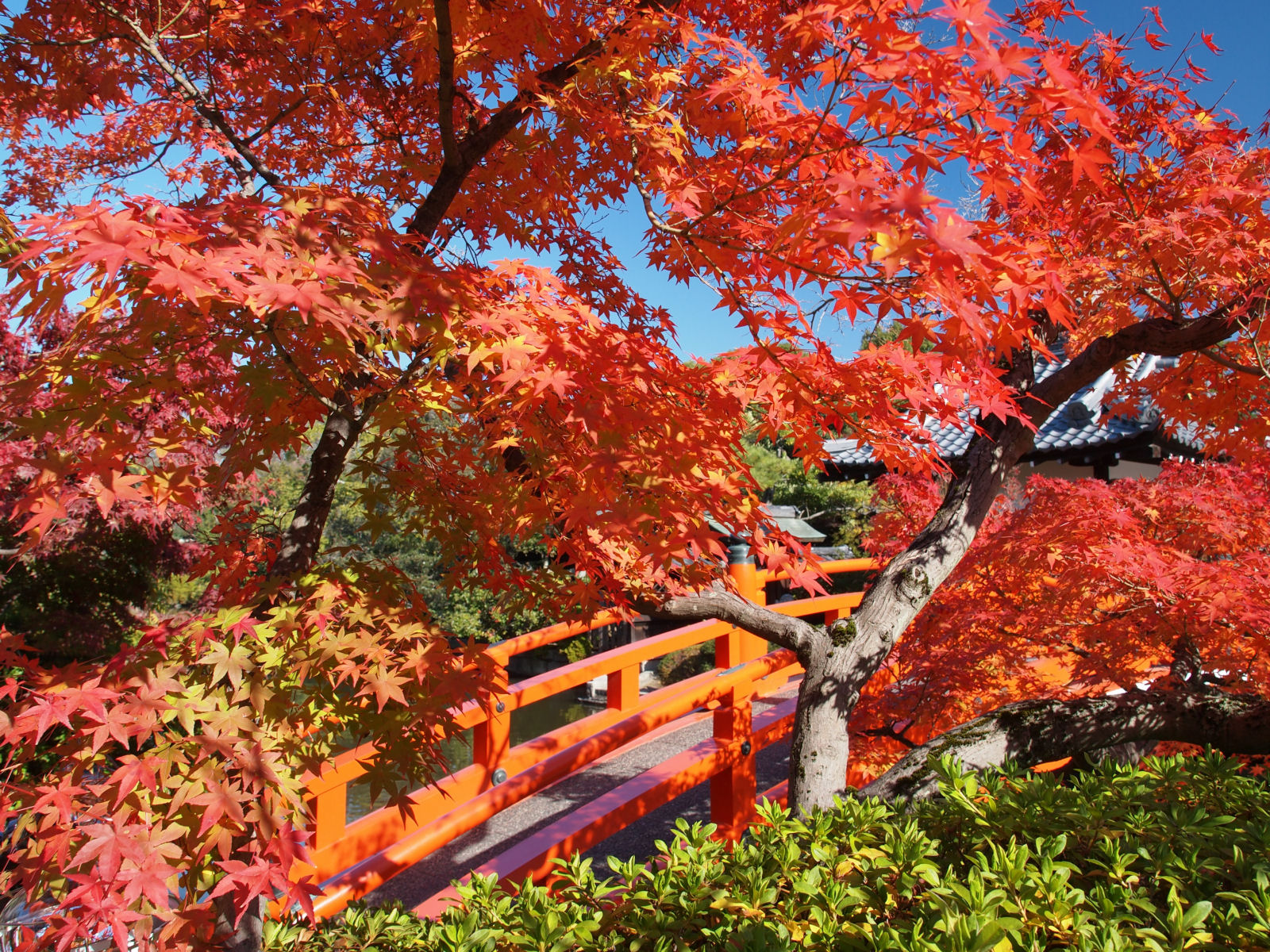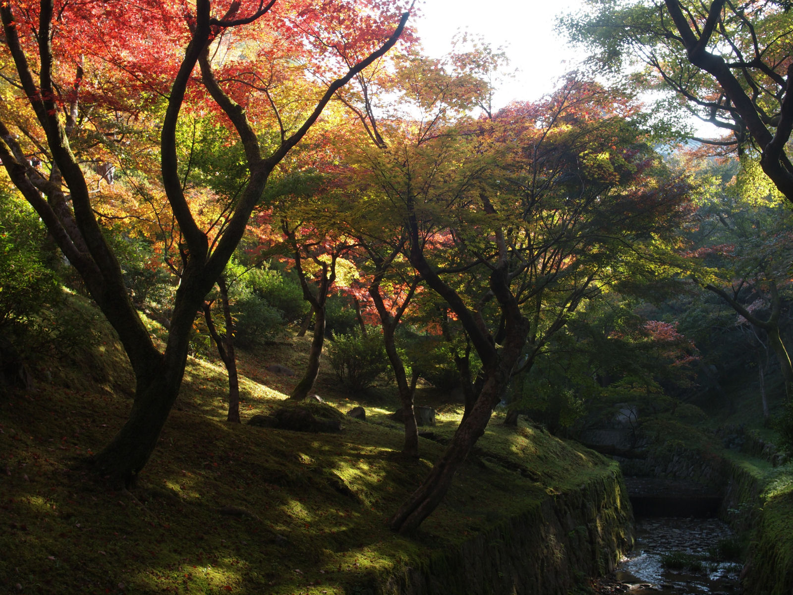 入園してすぐ,通天橋のたもとの紅葉.