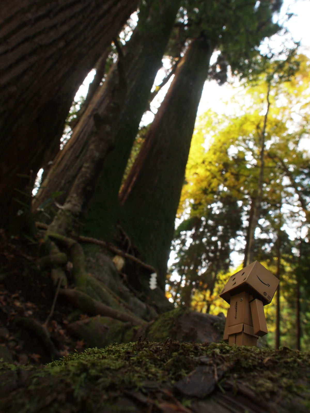 | 奥宮参道にある相生杉を見上げるダンボー. |