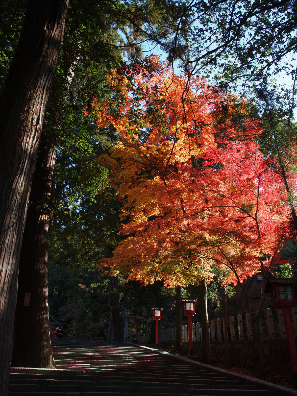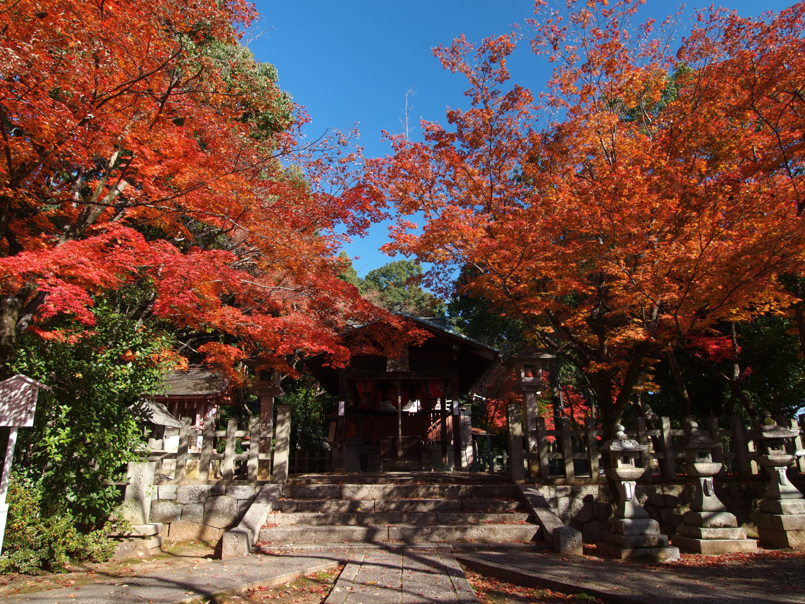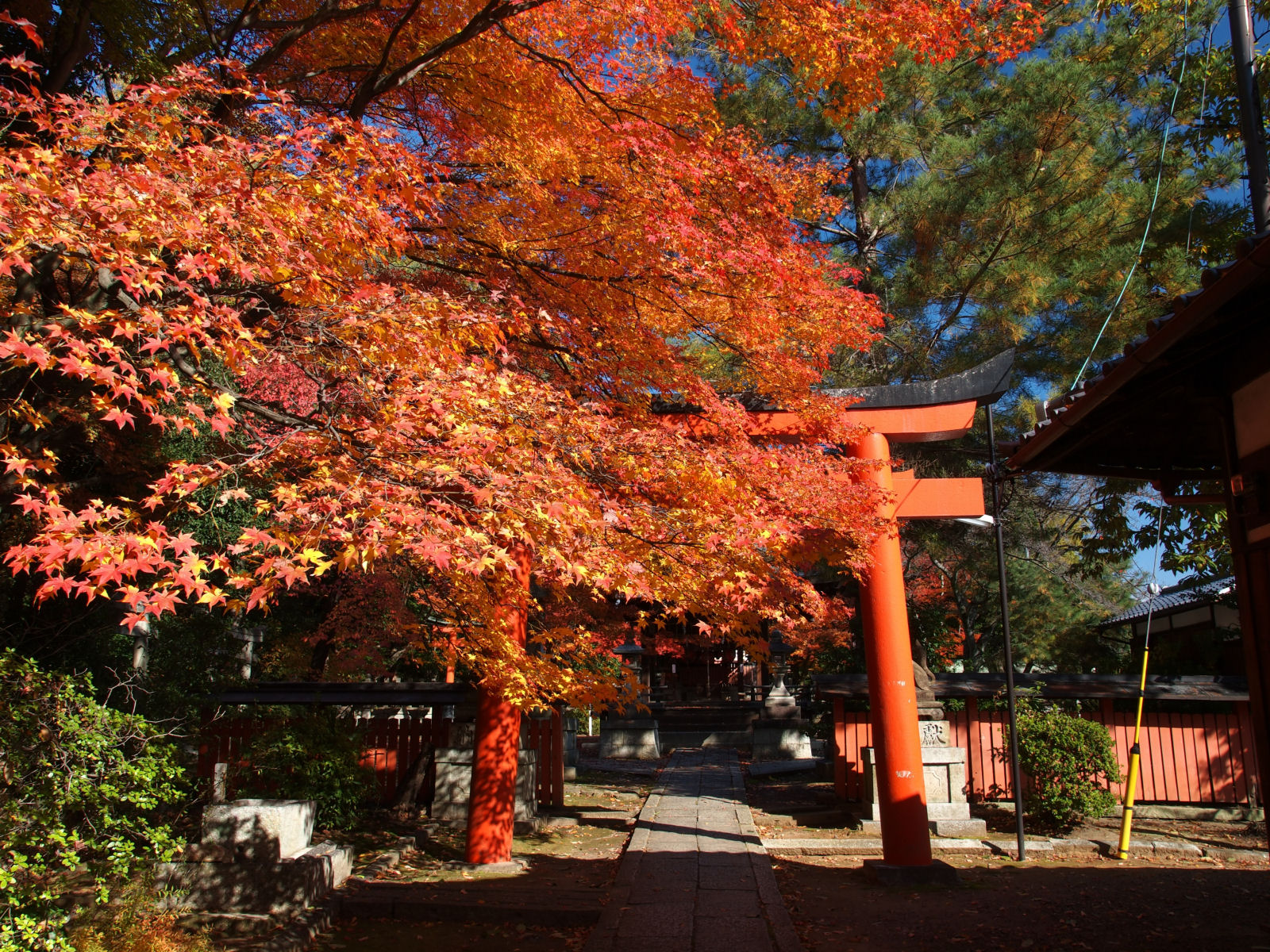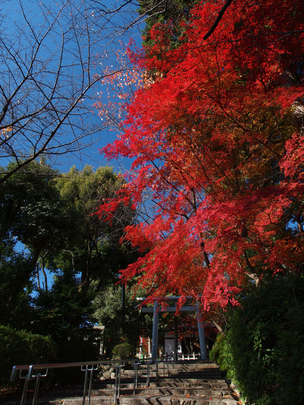 参道には鳥居が立ち並んでいますが,本殿近くには鮮やかな紅葉が見られました. |