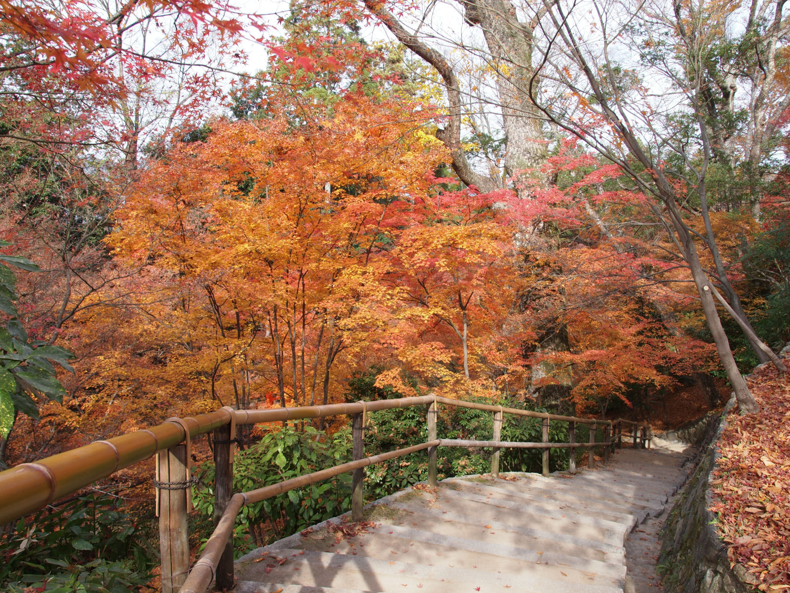 写真で写っている範囲では紅葉が残っていますが,上の方は葉が散っていました.