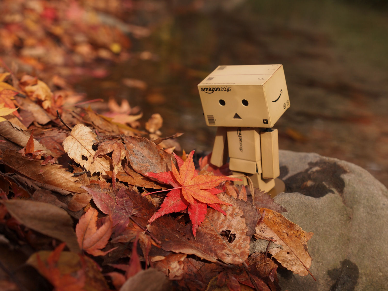 水面に反射した紅葉を撮ってます.