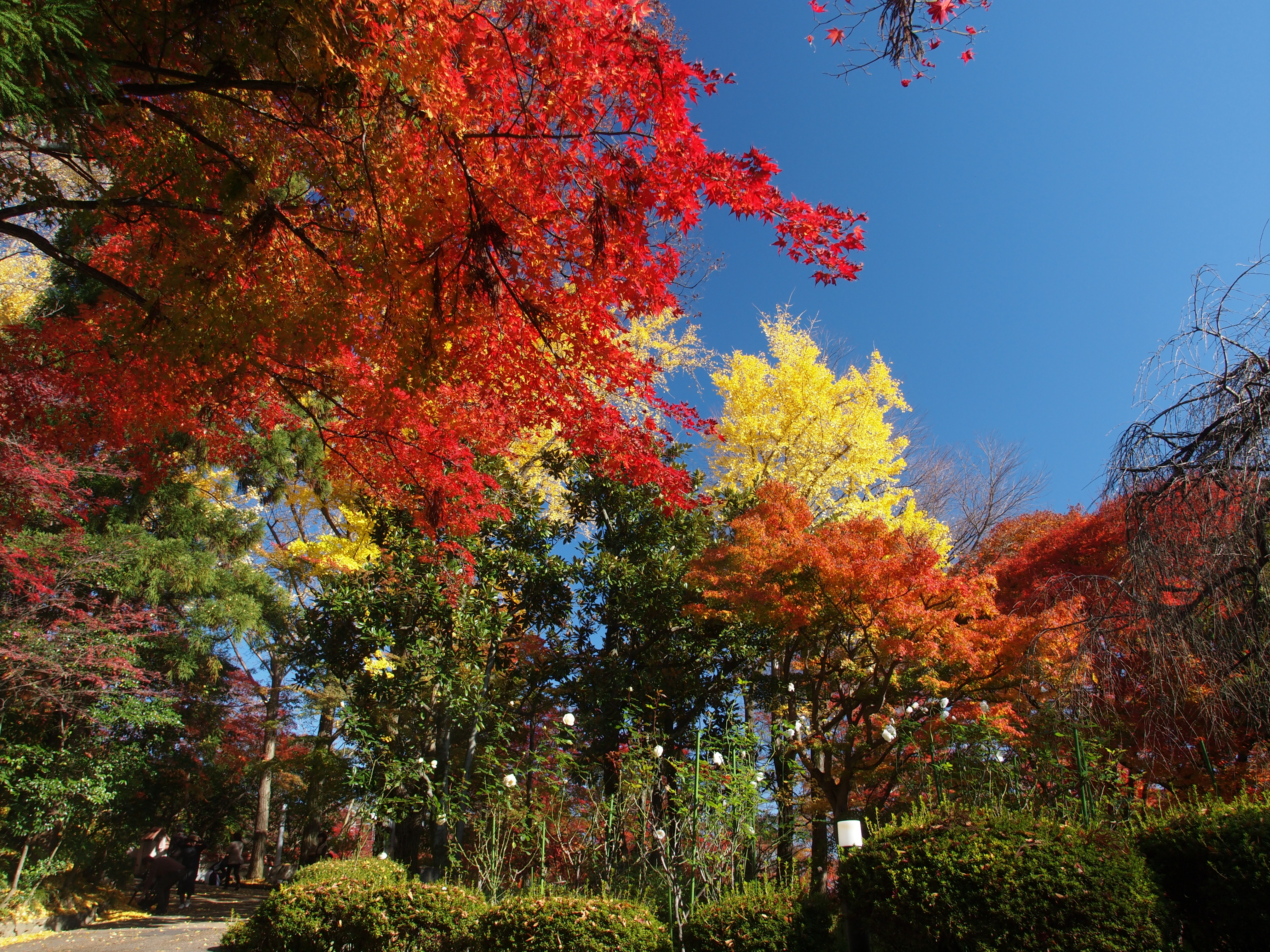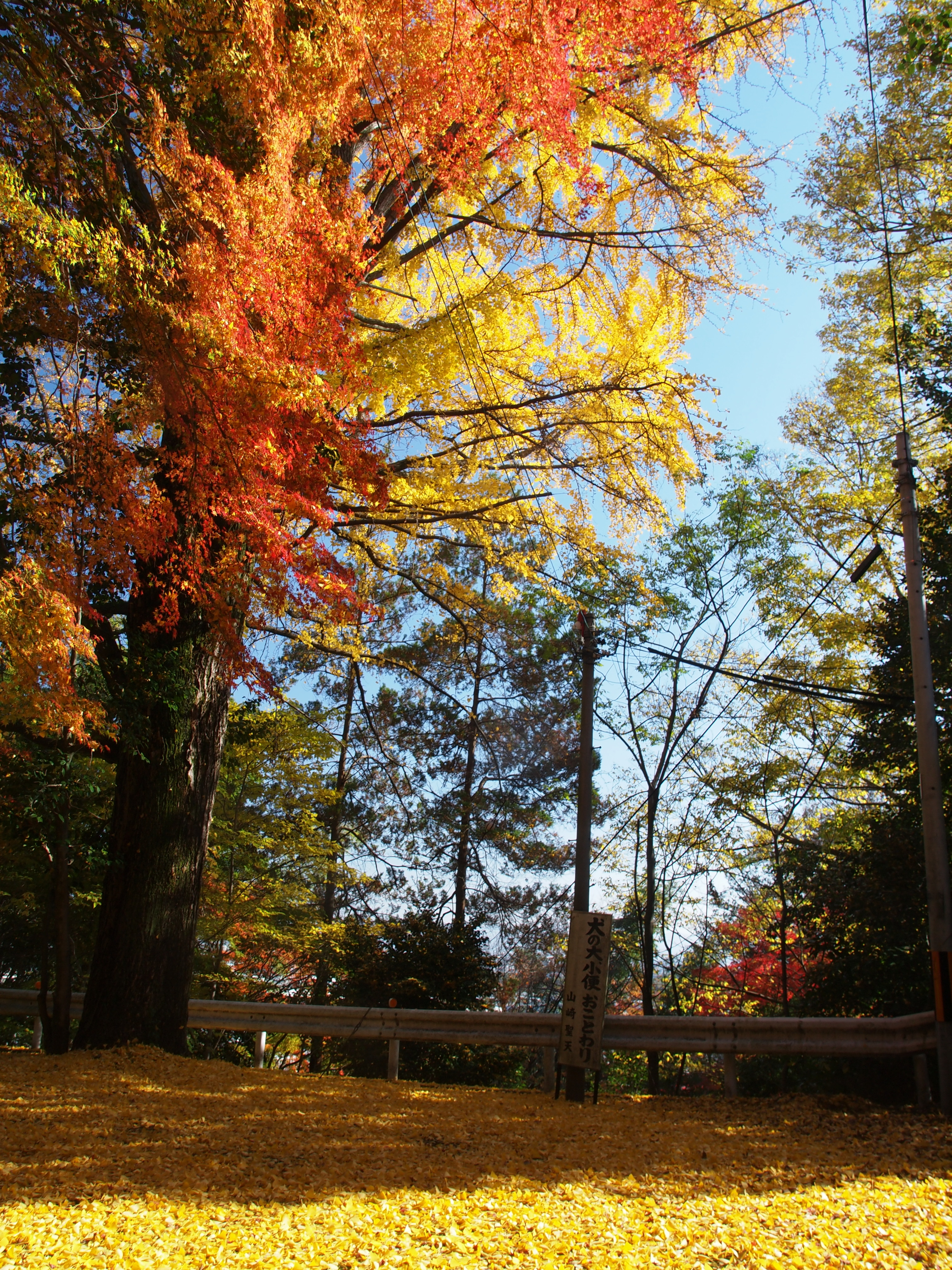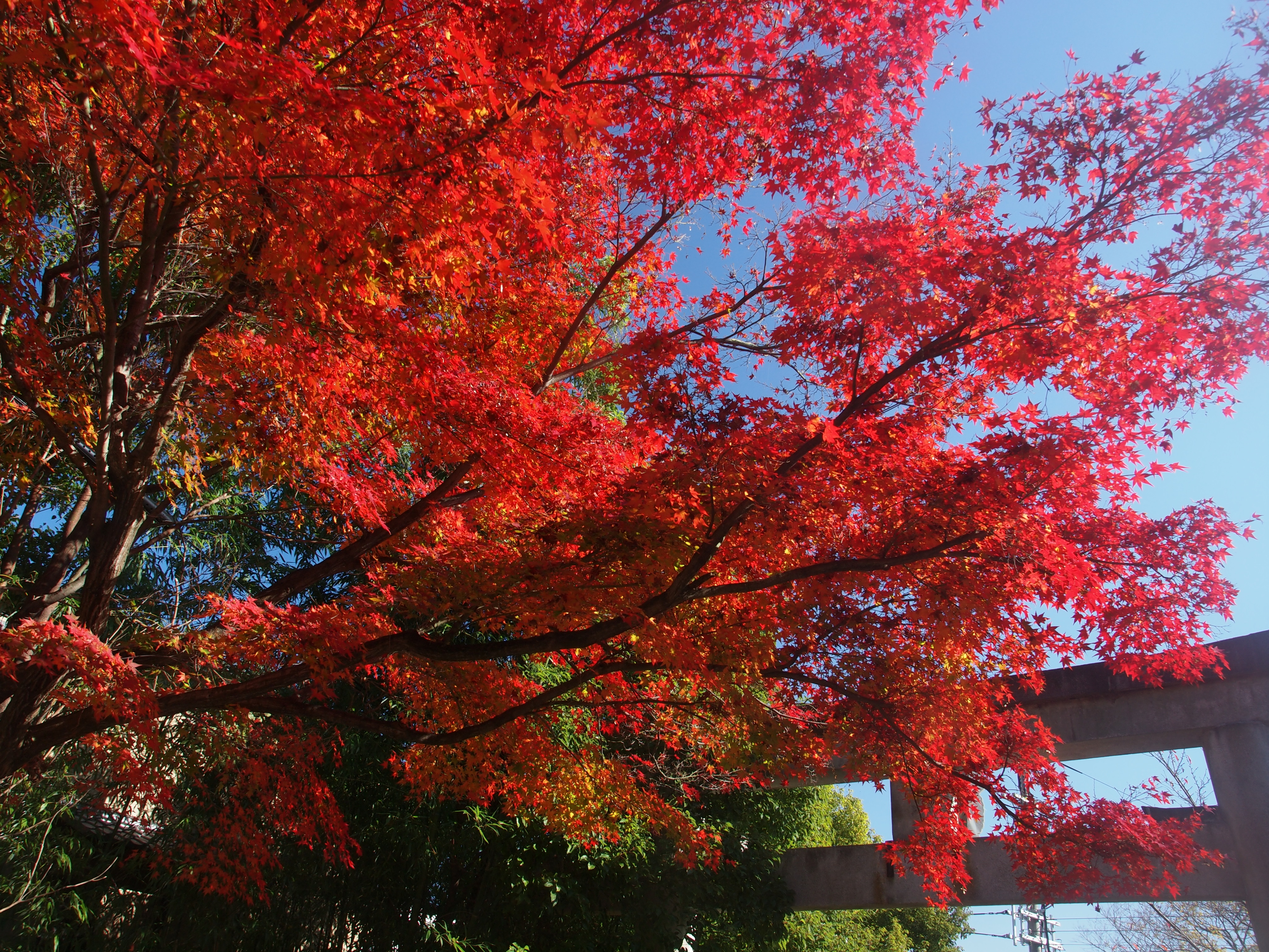 山崎聖天は,広葉樹や銀杏などは散りが進んでいましたが.椛はまだこれからという樹も多かったです.