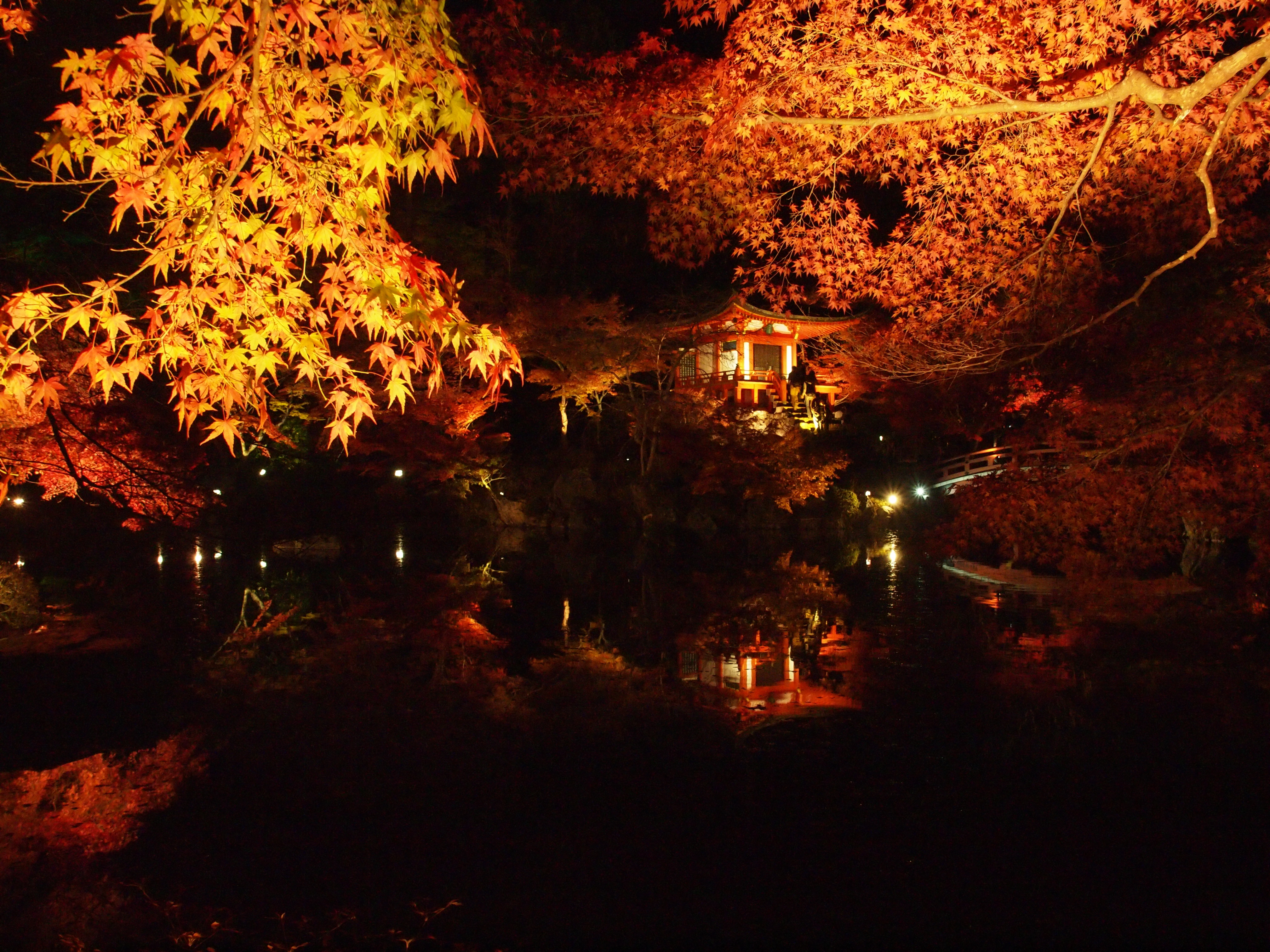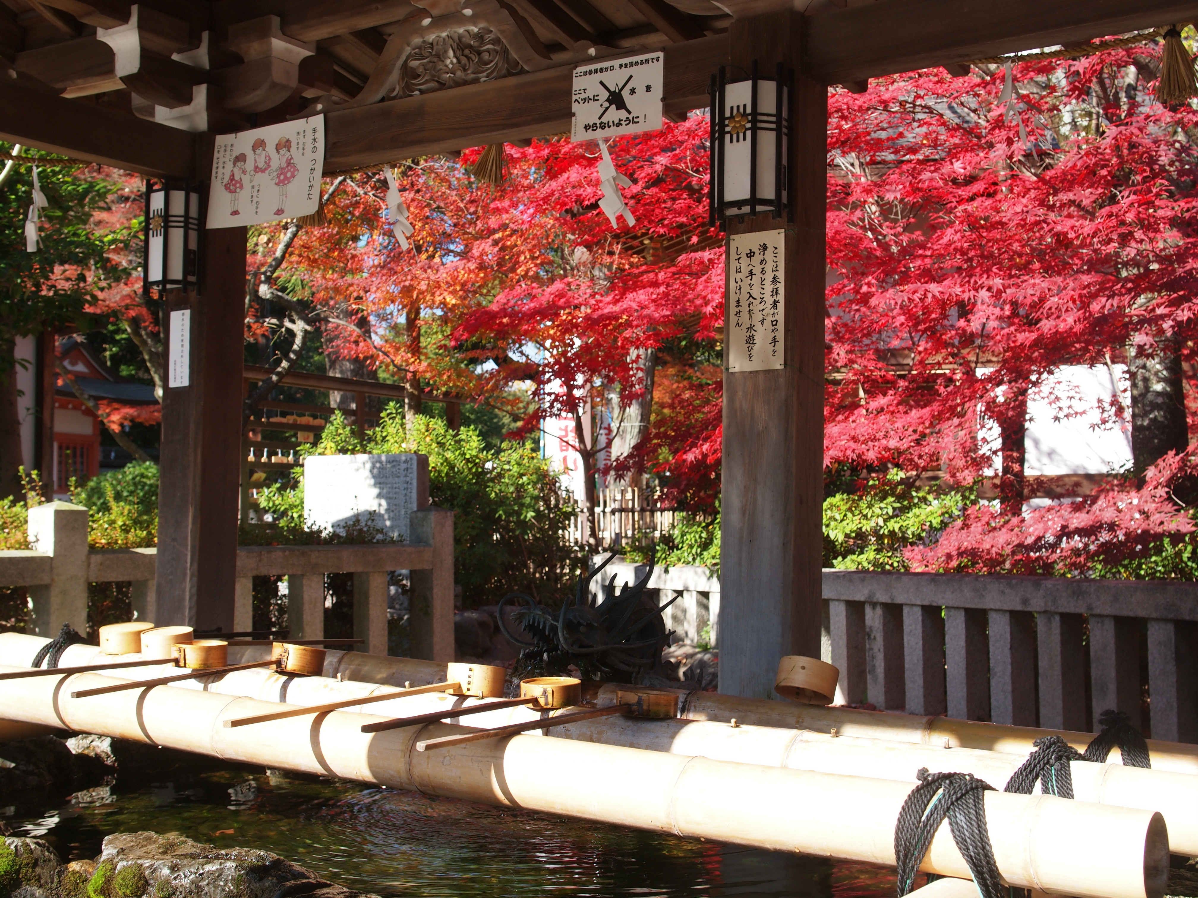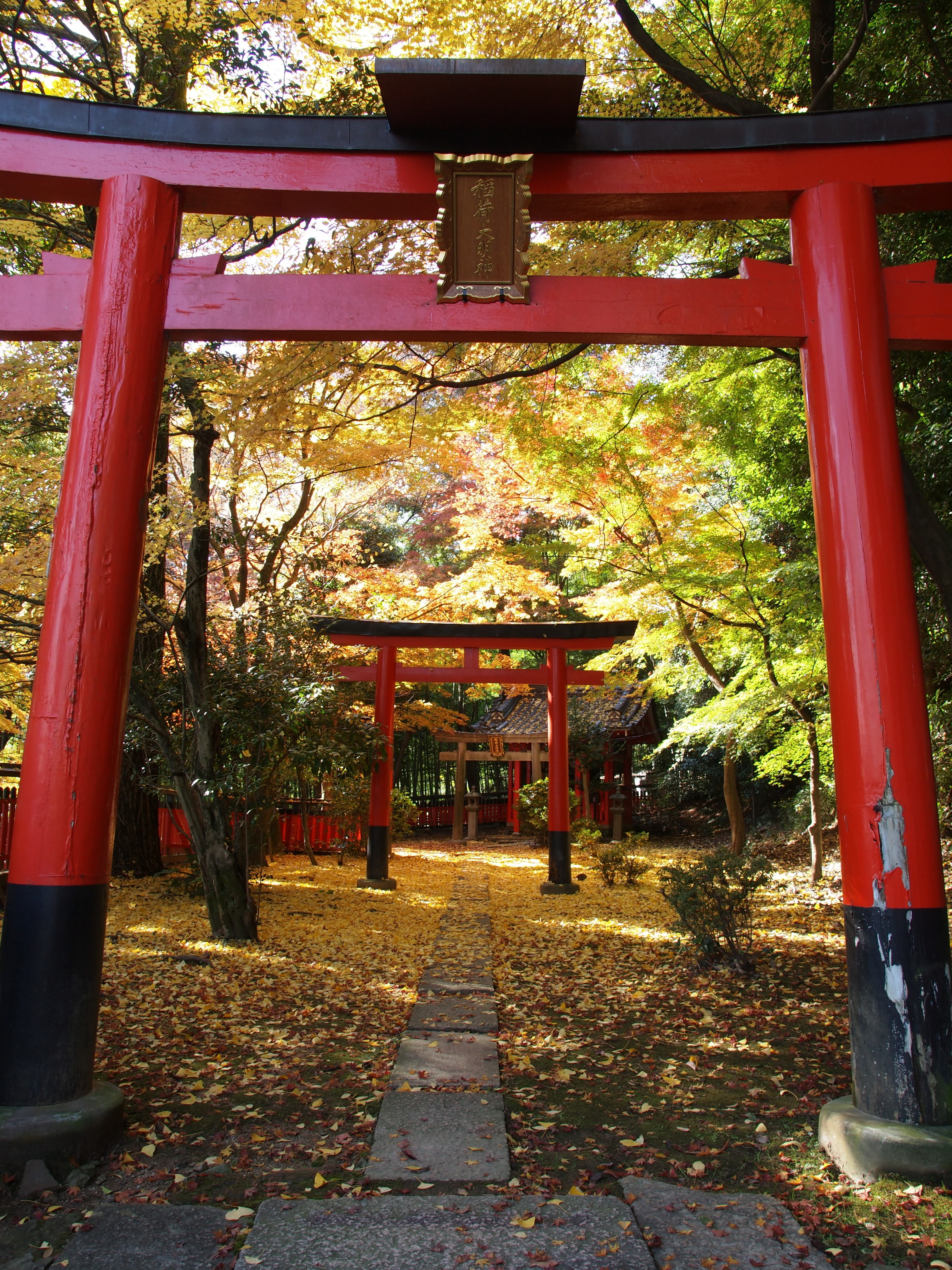 山崎聖天は,広葉樹や銀杏などは散りが進んでいましたが.椛はまだこれからという樹も多かったです.