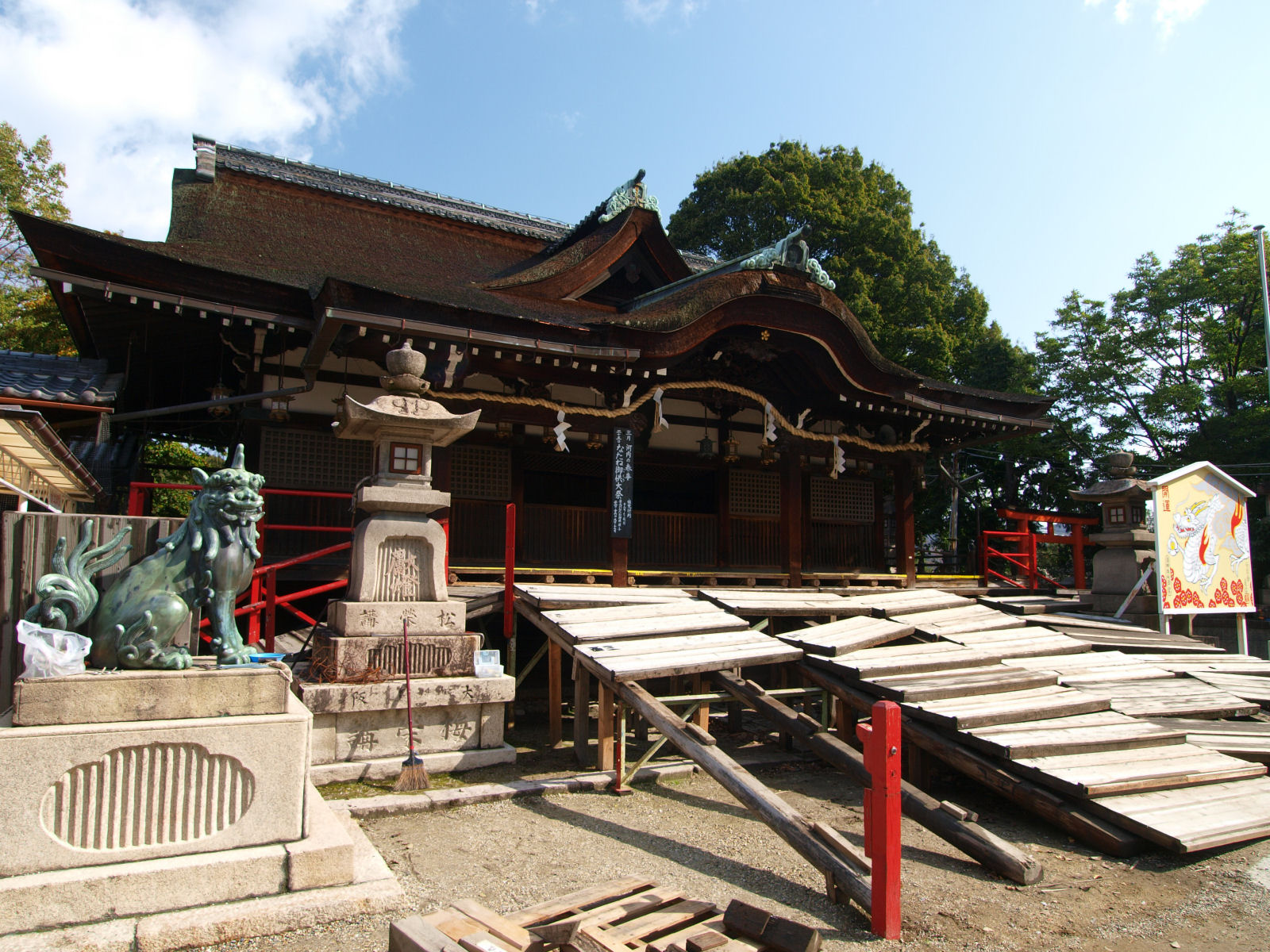 梅まつりが昨日までだったせいか,拝殿前で工事が行われていました. |