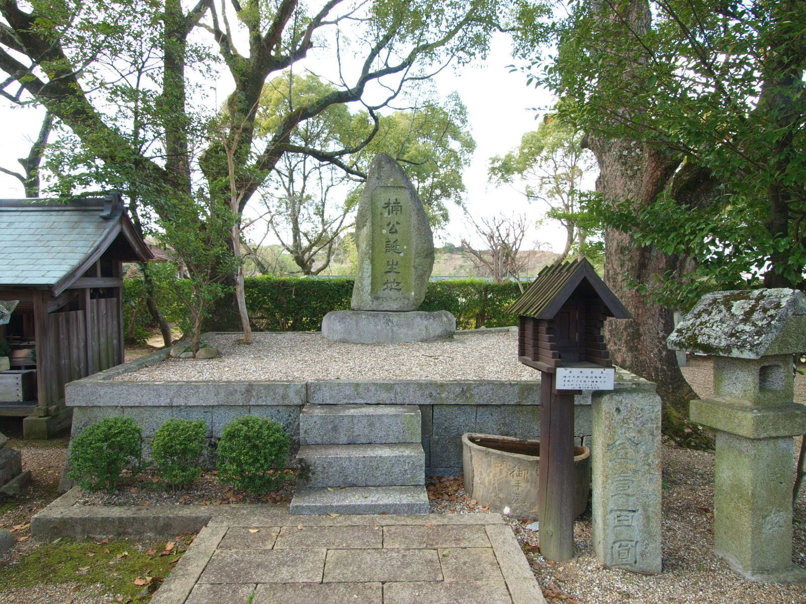 | 郷土資料館の近くにある,楠公誕生地の碑. |