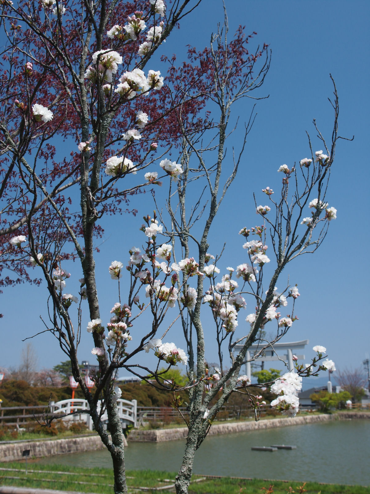 | 境内にはまばらにサトザクラが見られました. |