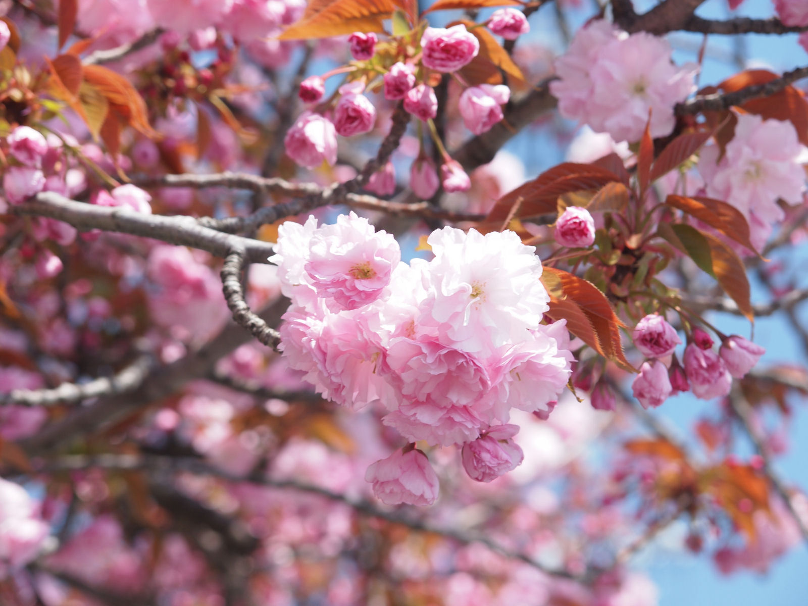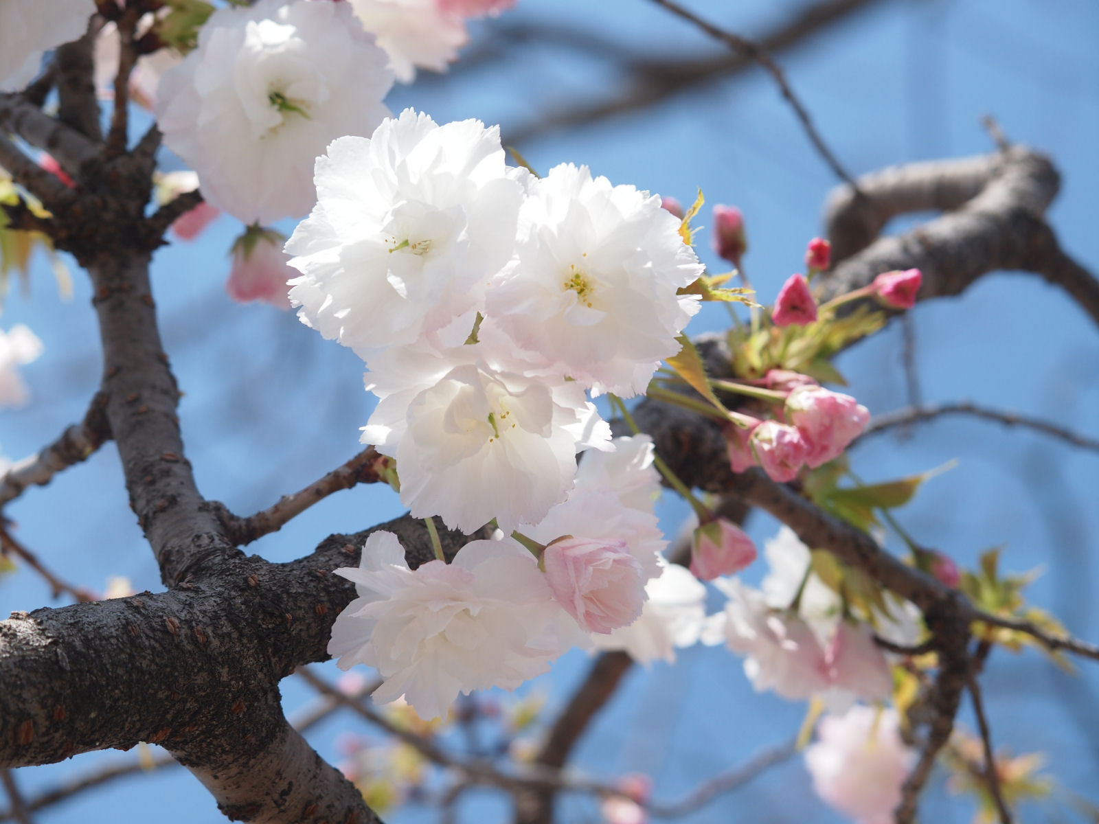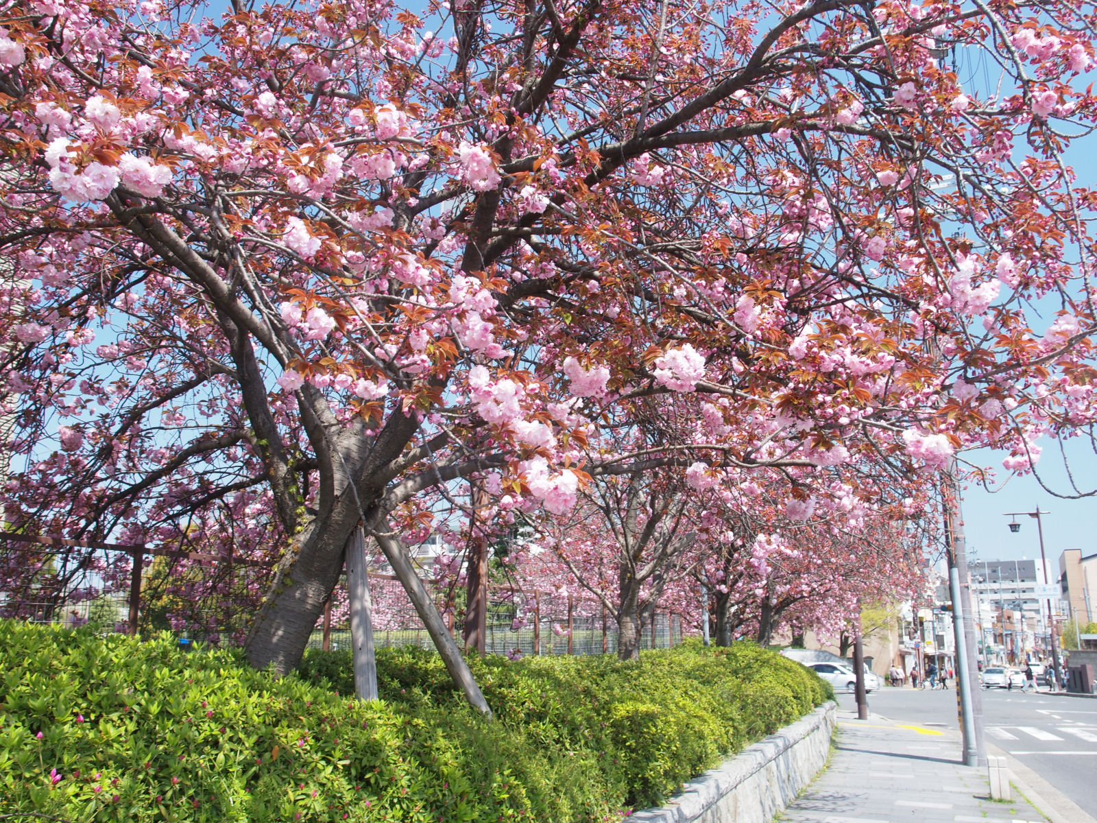ここ以外でも街のあちこちにちらほらとサトザクラが見られます. |