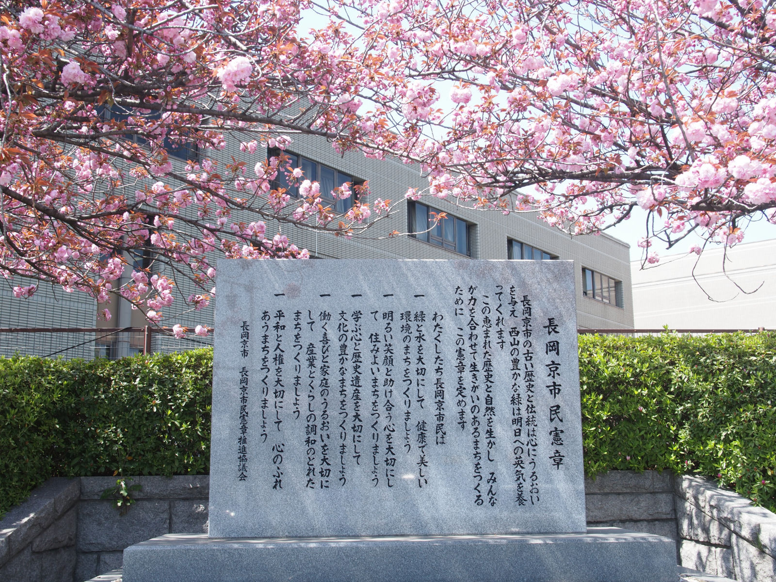 長岡京県民章の石碑.
