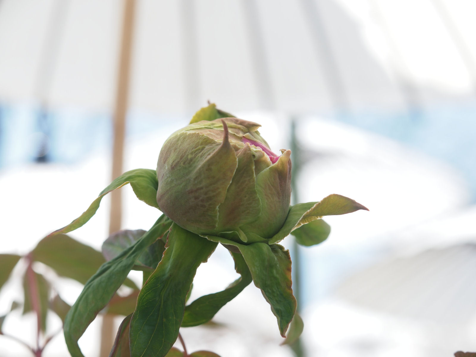 傘のある区画の牡丹はつぼみがついていました.