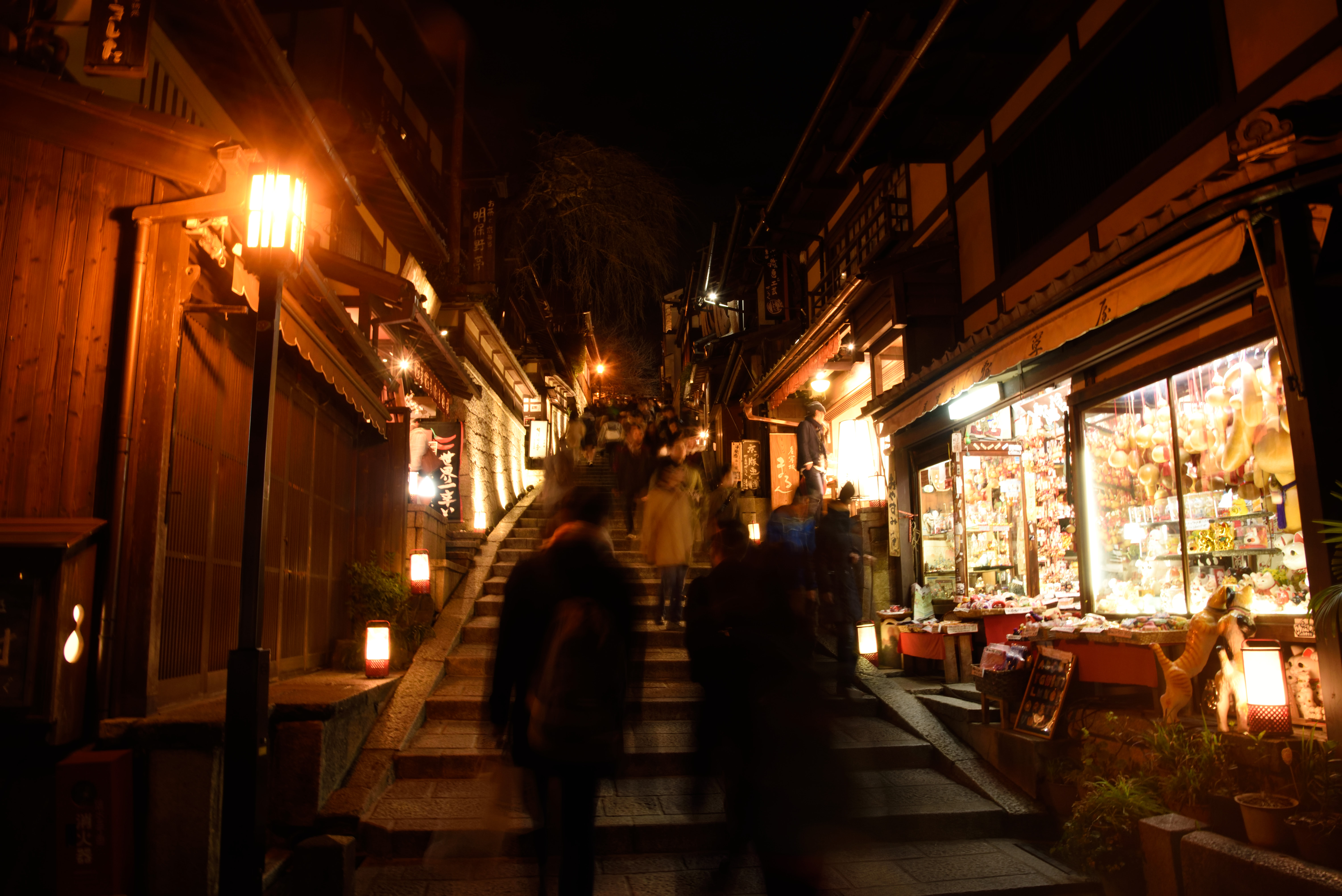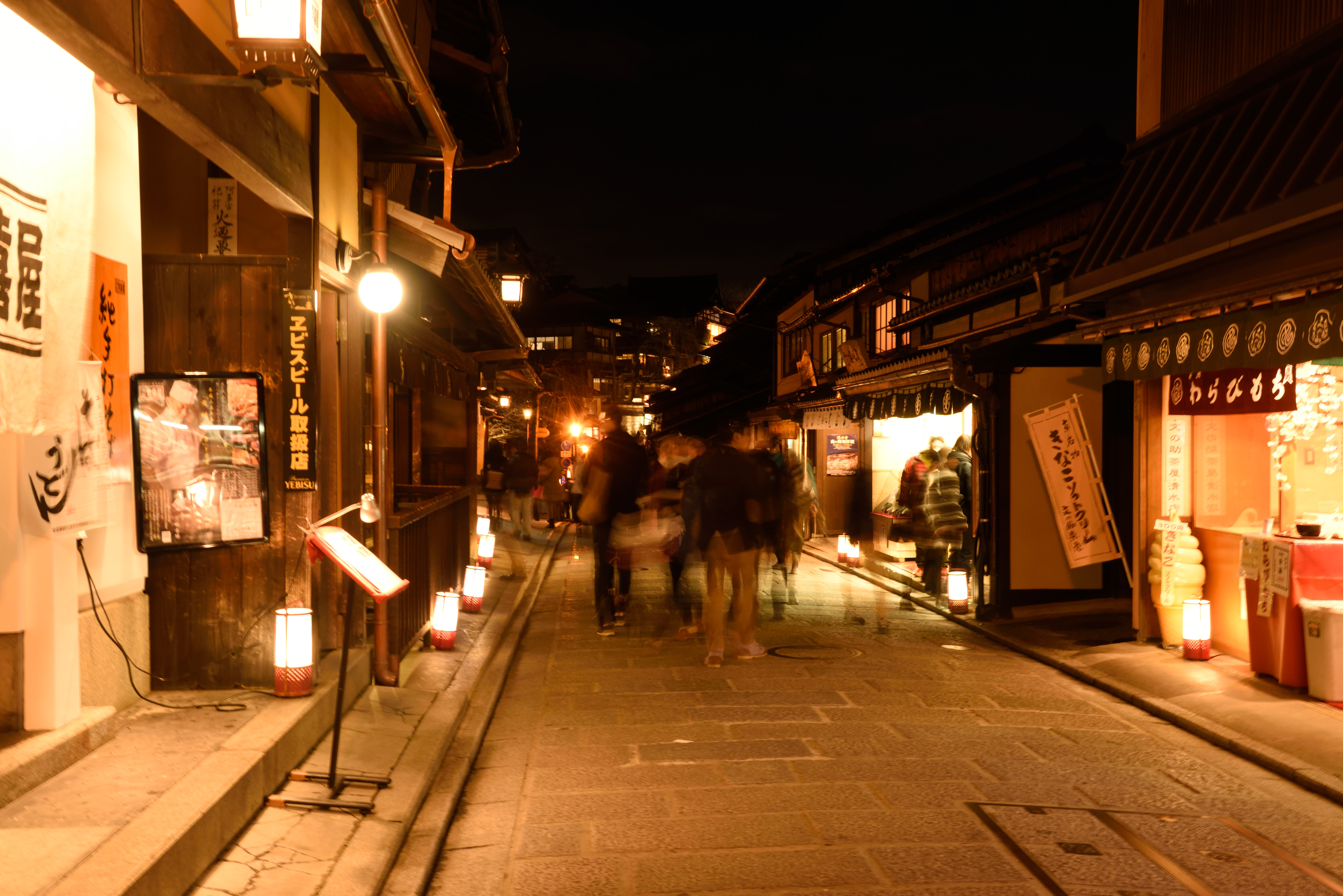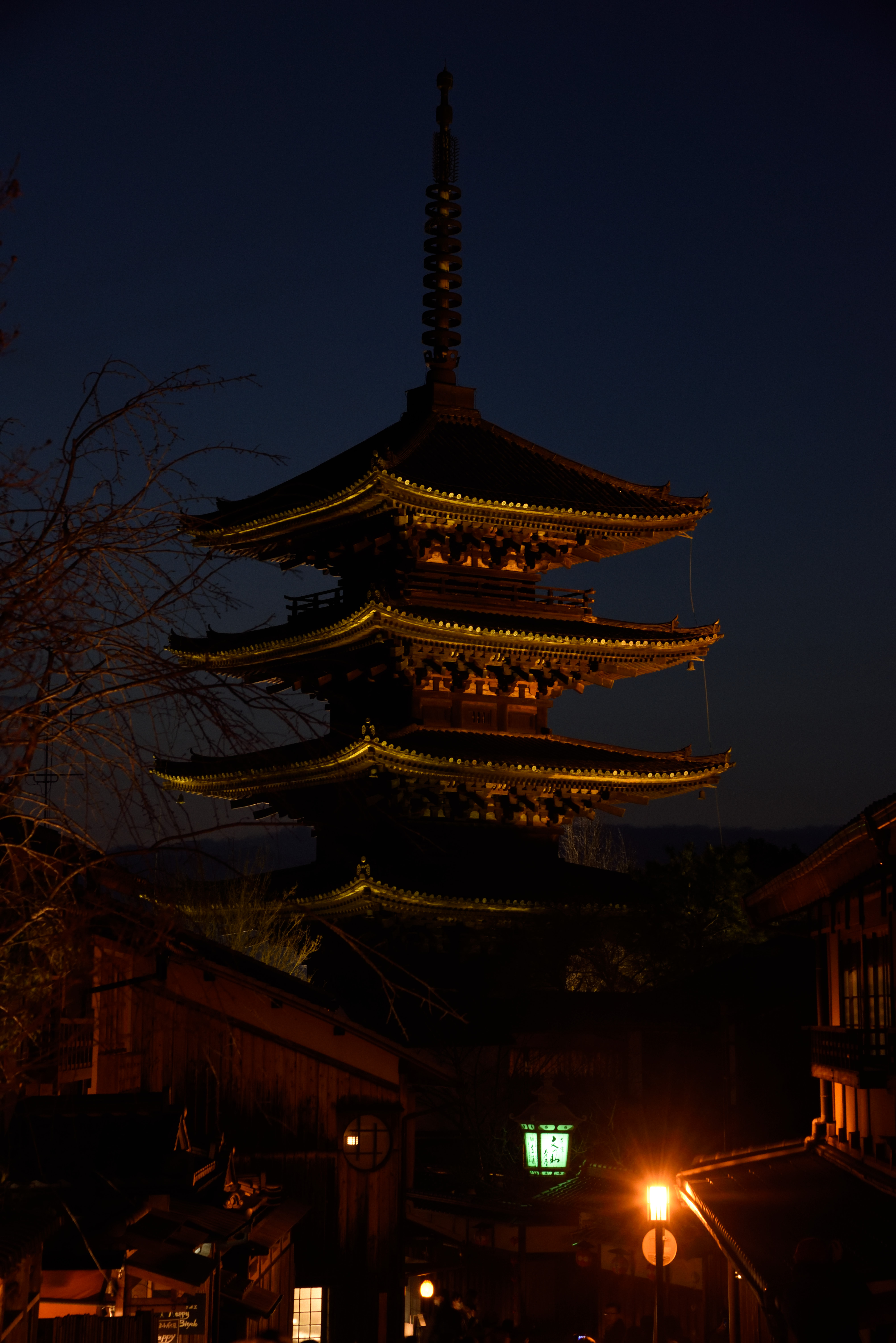 夕暮れ前に東山に着いてイノダコーヒで時間をつぶし,日が暮れてから出かけました.