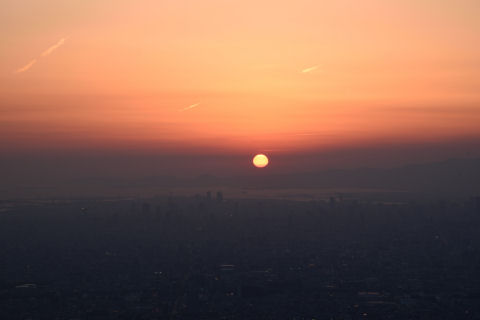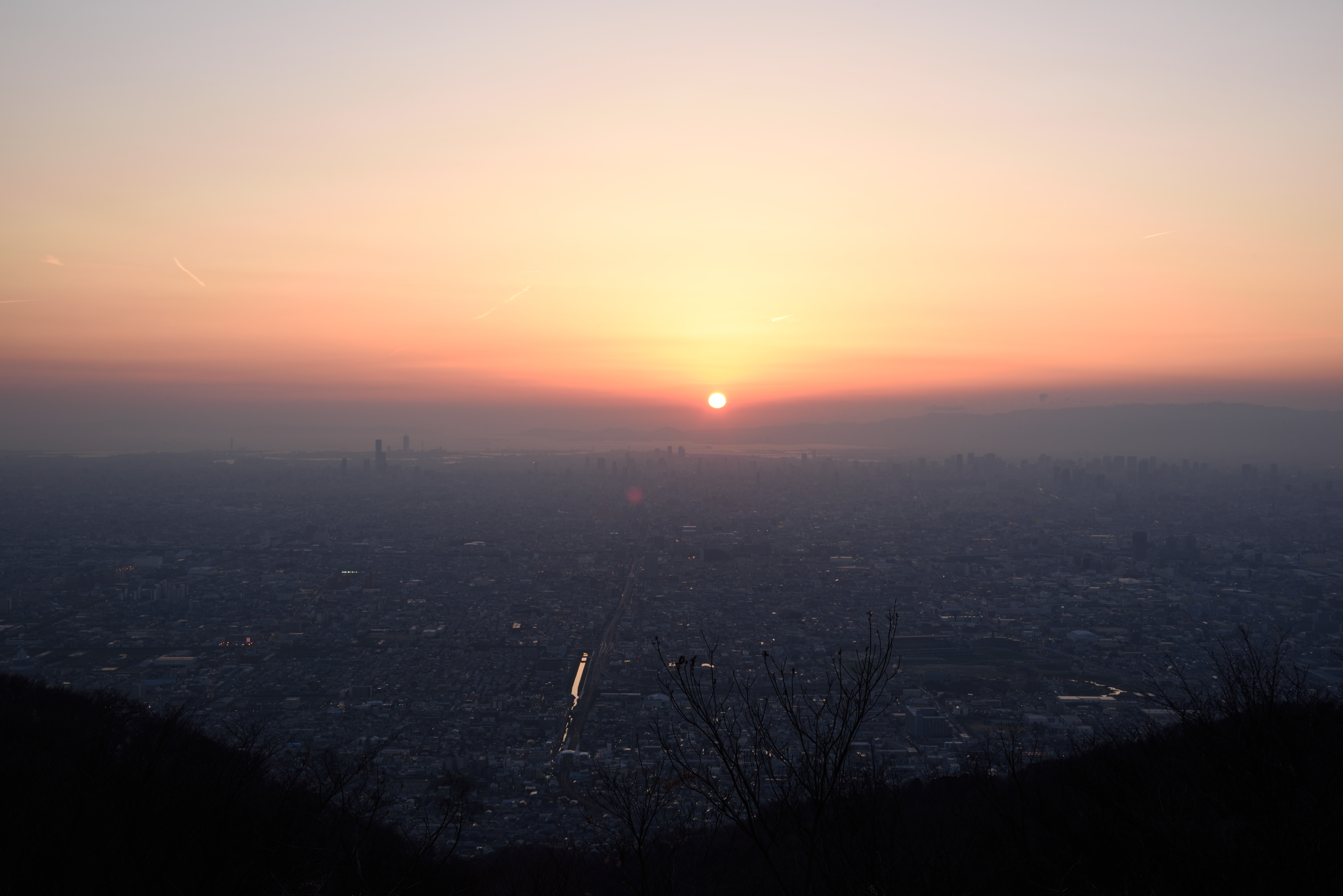 遠くに大阪湾が見え,大阪平野を一望できますが,街の方は残念ながらガスっています. |