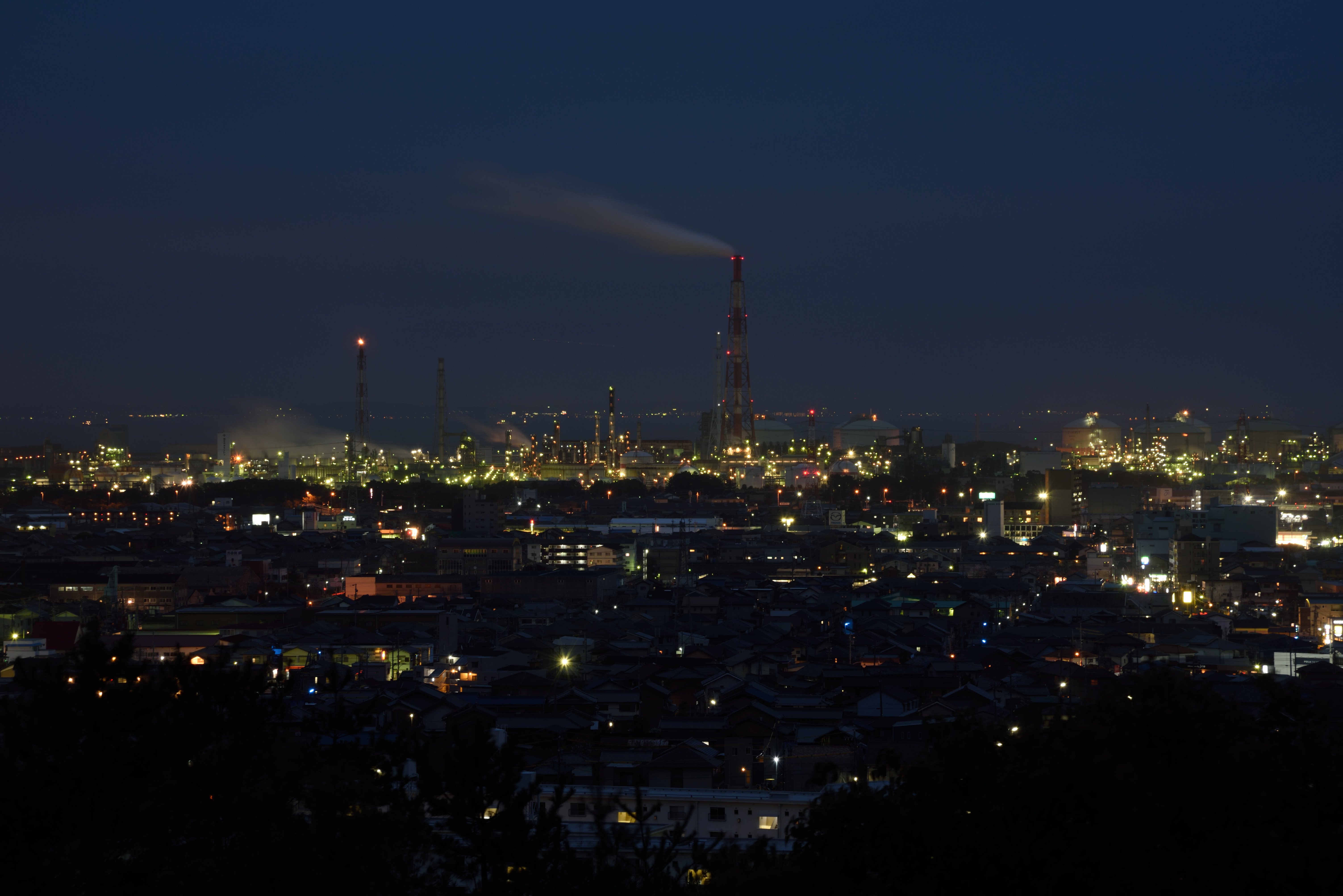 四日市の工場夜景ポイントはいくつかあります(参考).JR四日市駅でレンタサイクルを借り,最初に垂坂公園の展望台にきました.