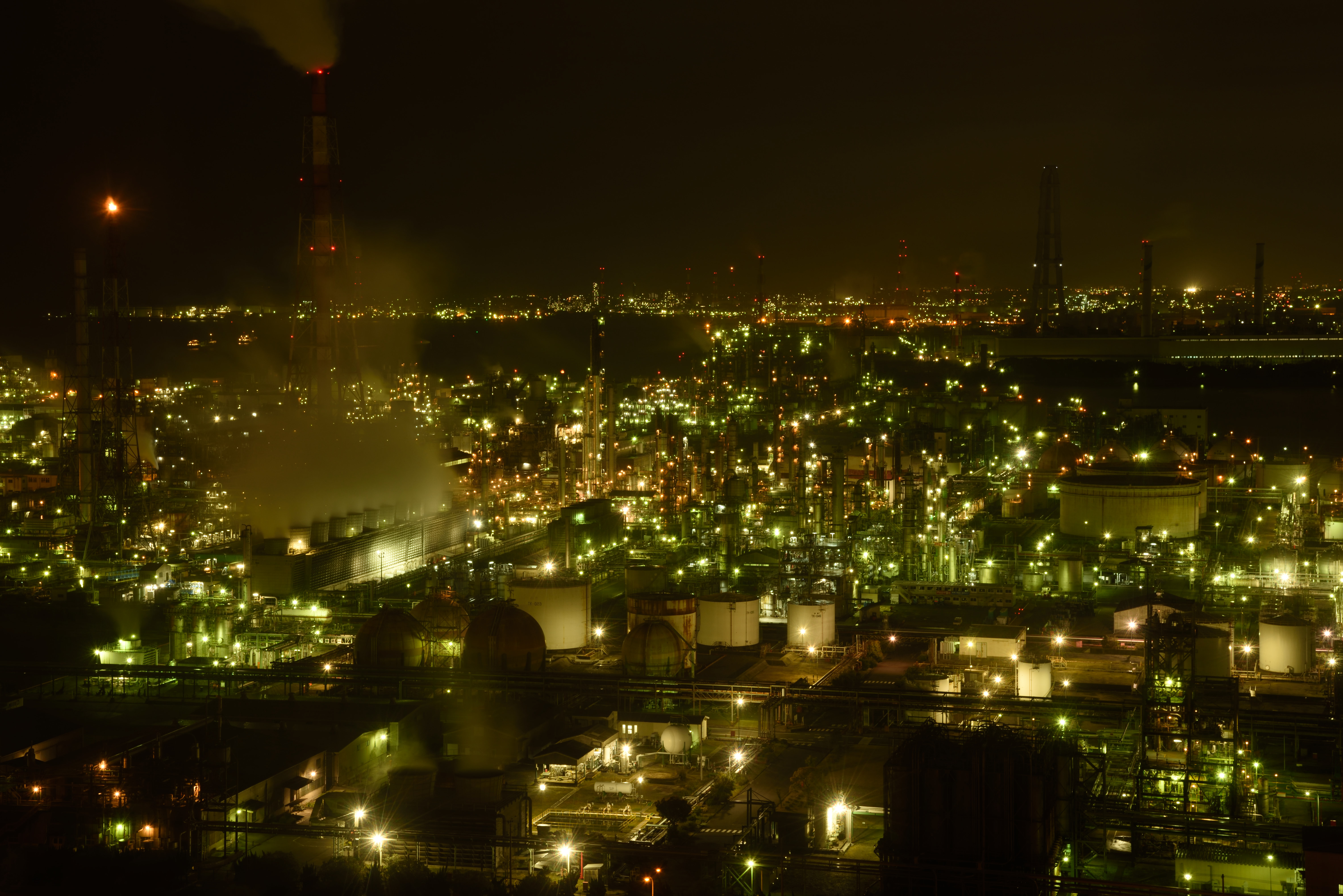 18時半になると,工場の方でいっせいに灯りが灯りました.