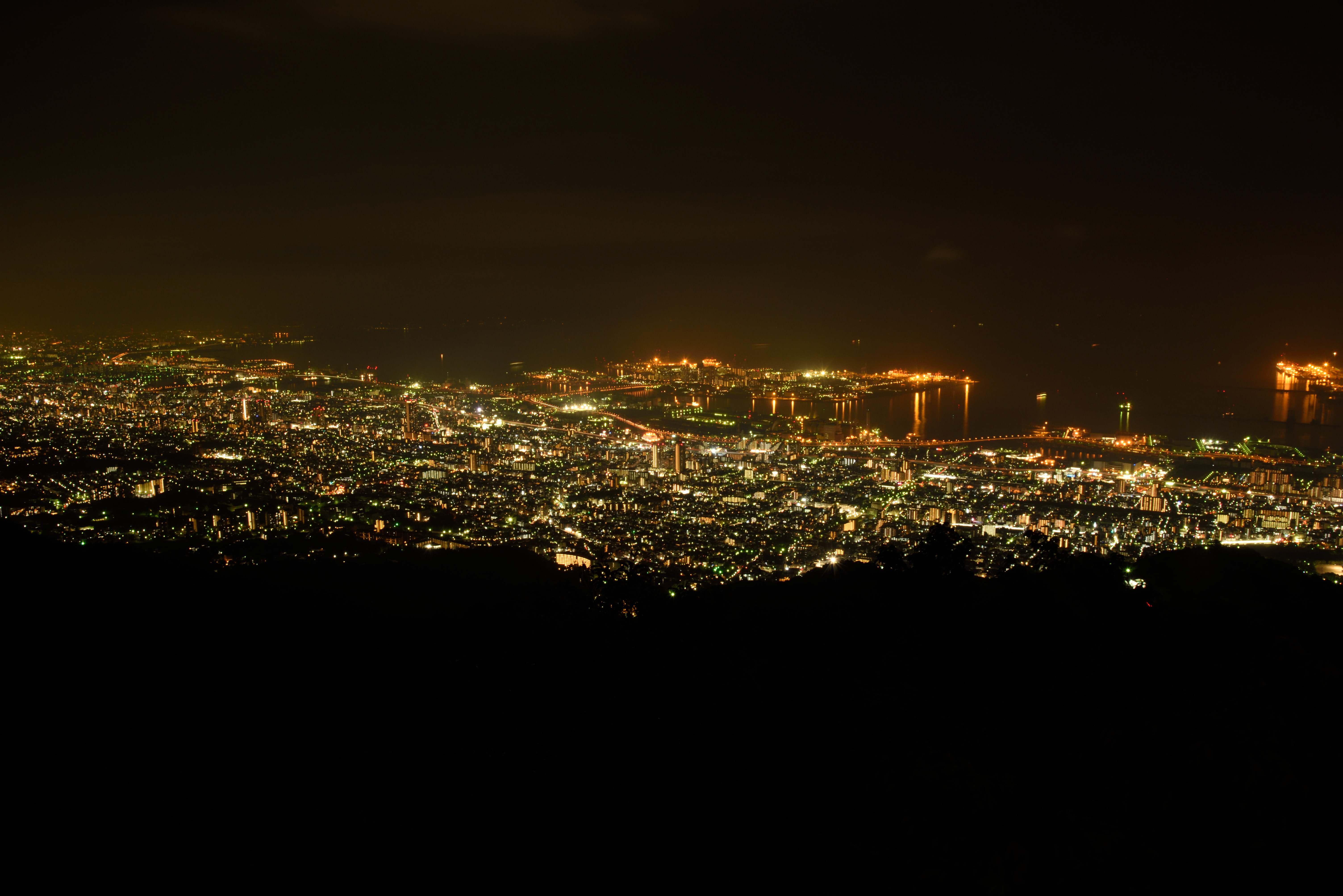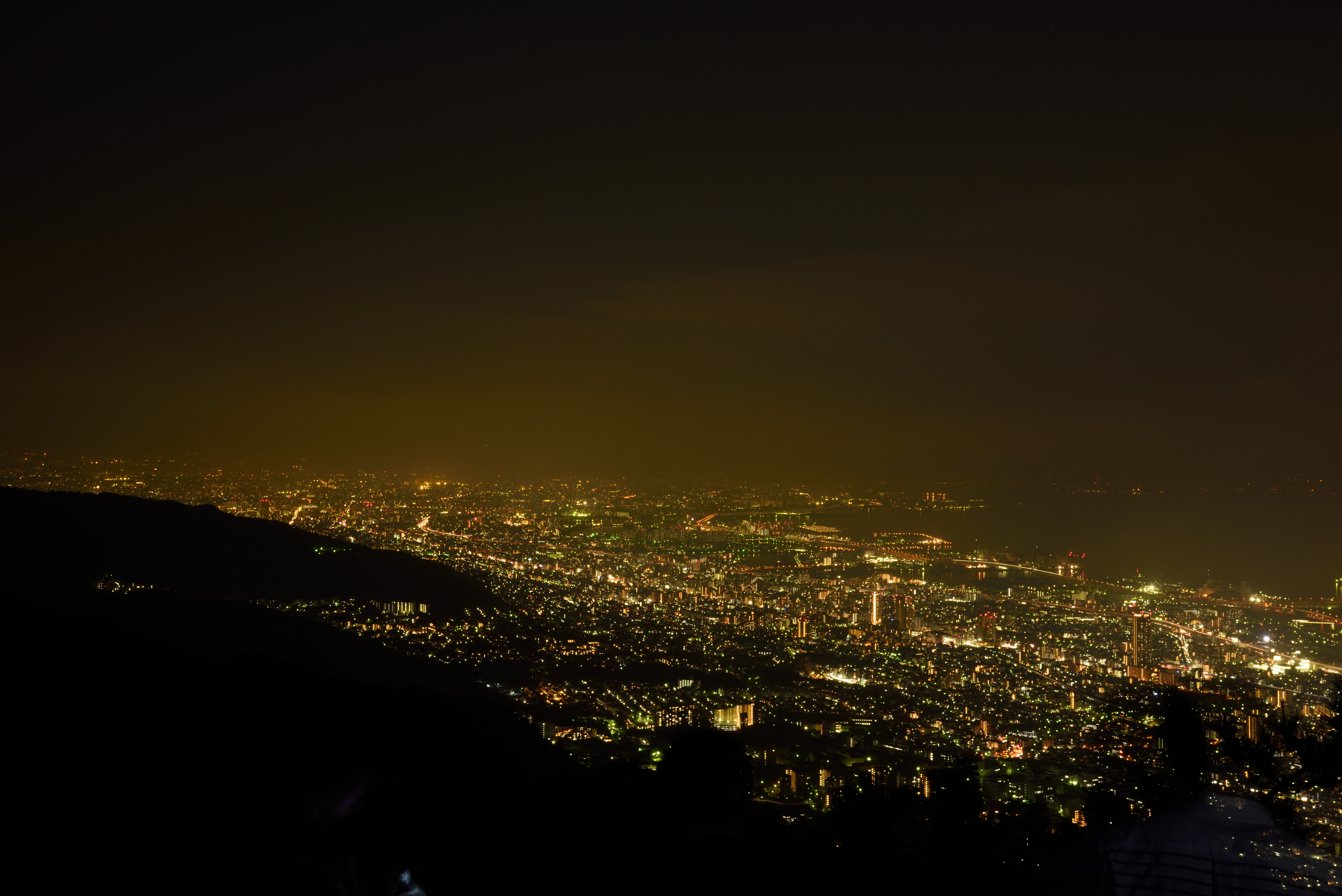 若干ガスっています.やはり夜景は冬に撮影すべきですね. 三脚を使って撮影しましたが,展望スポットはウッドデッキのため人が歩くと振動が発生し,帰って確認するとブレた写真が多くありました.