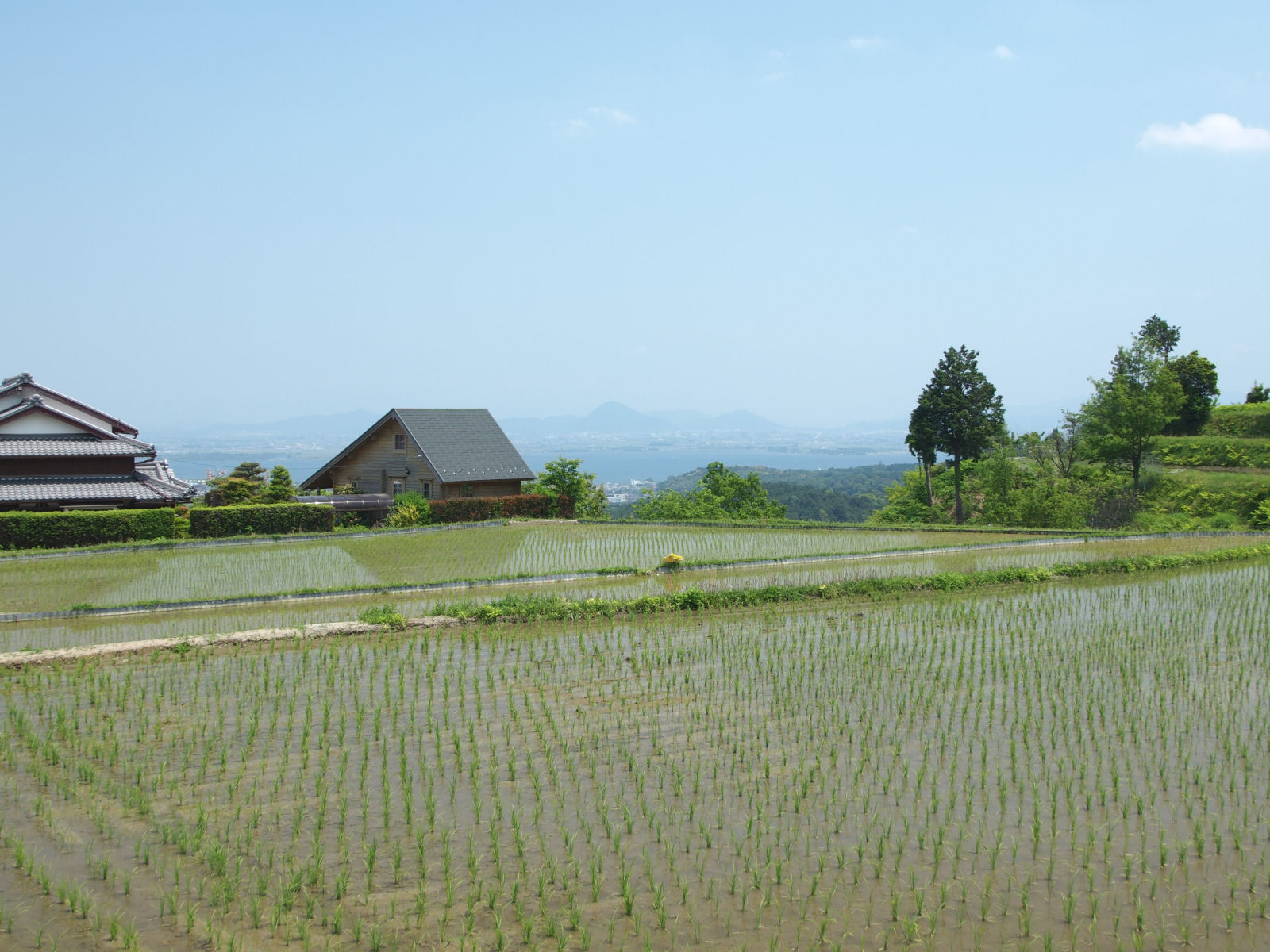 棚田が見えるような見晴らしの良い場所は民家がありイマイチよい撮影ポイントは見つからなかったのですが,集落や琵琶湖がよい風景を作り出していました. |