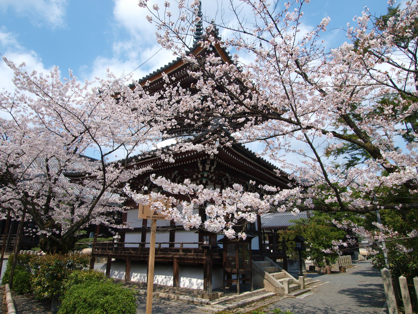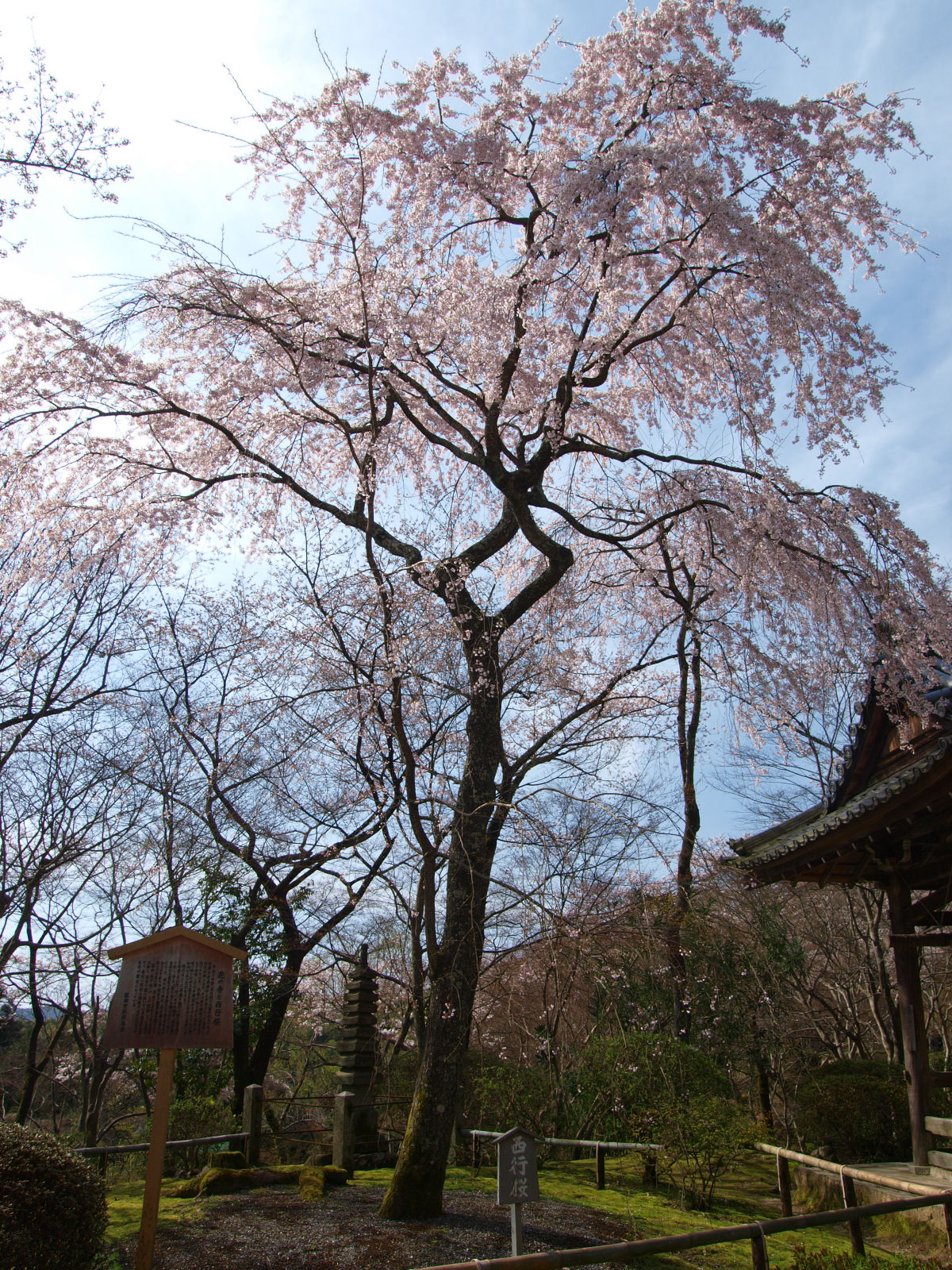 去年来たときは,寺全体の桜は見頃であるものの,西行桜は葉が目立って見頃過ぎたかな?という様子だったので,今回は事前情報で勝持寺はまだ咲き始めとあったものの,西行桜を確認しに来てみました.