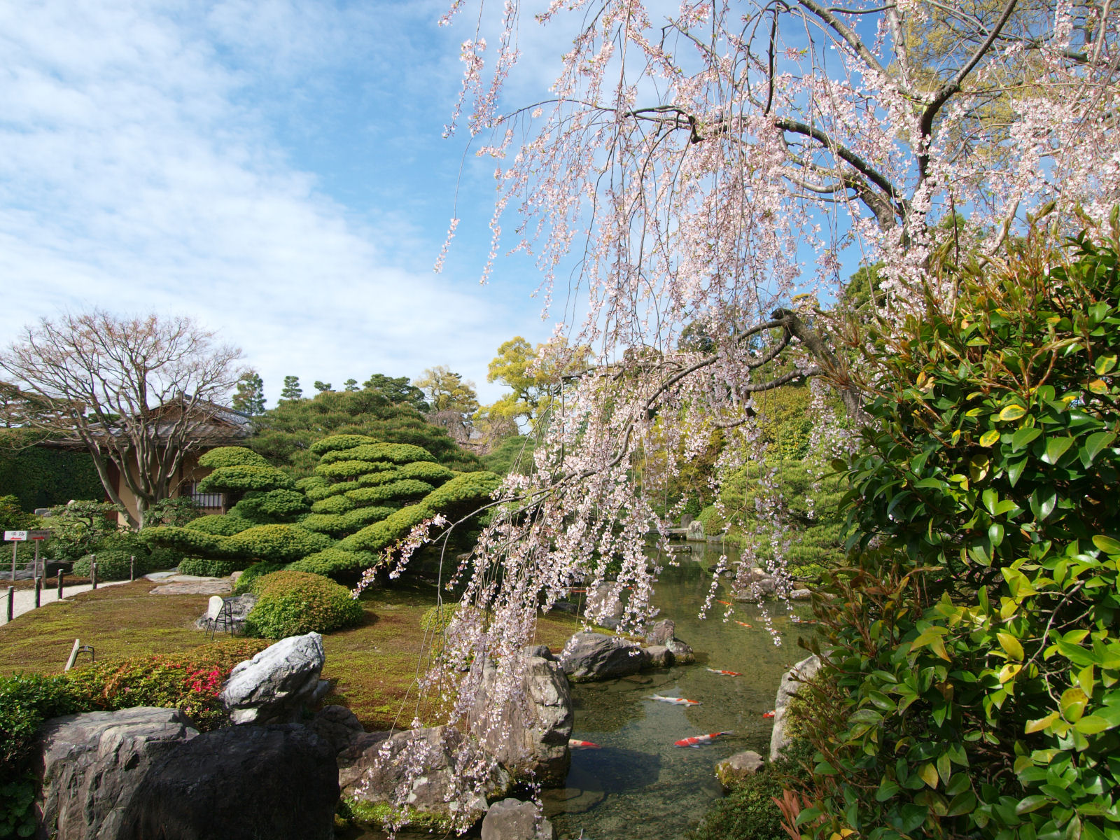 城南宮の神苑の枝垂れ桜.