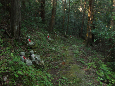 | 大分歩いたところで,お地蔵さんが点々と続く山道がありました. |