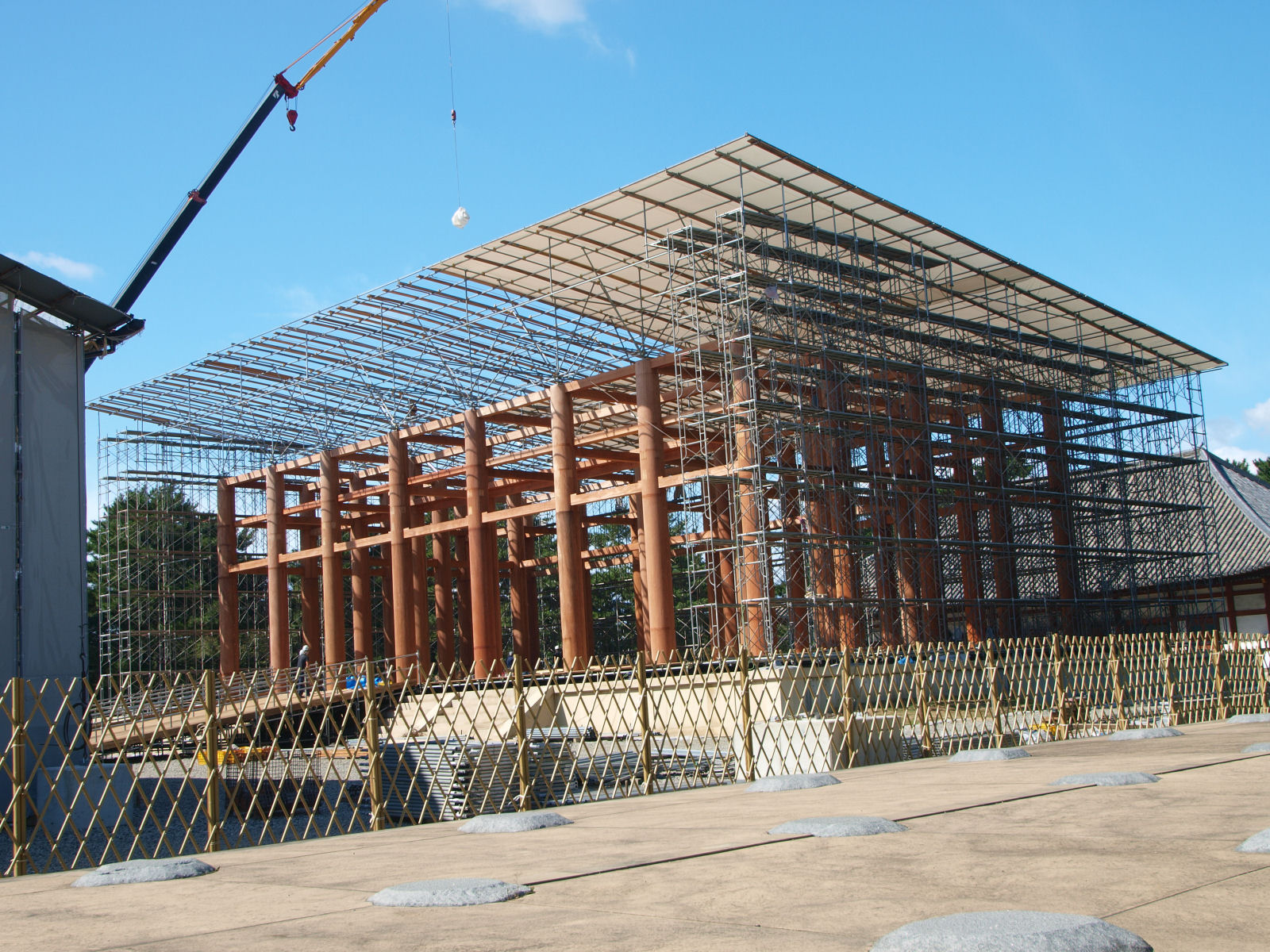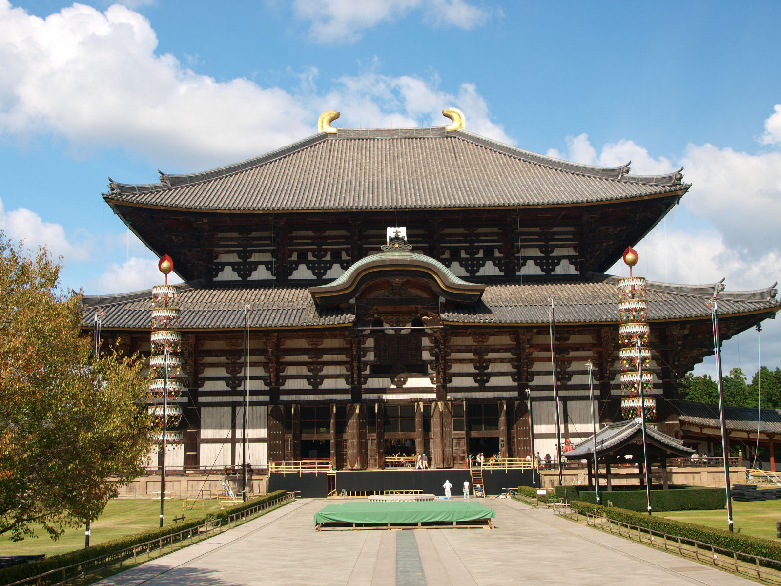 遷都1300年 2010/10/11(15年前) 今年は平城遷都1300年ということで平城宮跡にでっかい建物が建ったるらしいので,見てきました. そのあと奈良公園をぐるっとまわってきました. 平城宮跡 行きは近鉄線の大和西大寺駅から歩いて来て,脇の佐伯門から入りました. 門から歩くとすぐに,遠くに大極殿が見えました. 第一次大極殿. このイベントの目玉とも言える建物です.でっかい. 周辺の芝生は入れないので,写真が撮りやすかったです. 第一次大極殿の中は展示室となっています. 大極殿から外を見た風景. ご覧の通り他には特に何もありません. 手前のテントはイベント会場でしょうか. 帰りはバスに乗るため,バス乗り場に向かいました. こちらはその近くにある朱雀門. 奈良公園 無料シャトルバスに乗り,JR奈良駅まで来ました. ここから東大寺や春日神社のある奈良公園を目指しました. こちらは駅から奈良公園へ続く商店街の道. 興福寺の横の道. 五重塔が見えます. 春日神社への鳥居と参道. 神社にはたくさんの人がいました(なので写真はカット). 奈良公園にはご存知の通りたくさんの鹿が. この辺は人が東大寺付近に比べると人が少ないので,鹿も人を気にせずのんびりしています. 若草山. 芝生で覆われているめずらしい山です. 東大寺二月堂. 展望台となって 東大寺の裏側の石の道. こんな感じで,この日は奈良公園をぐるっとまわりました. この後行った正倉院は休日のため閉館していました. ご存知,東大寺大仏殿. 東大寺近くにいた鹿. この辺は人が多いので,鹿の方も人間の方を見てシカセンベイを狙っています. 興福寺. 中金堂は再建中でした.