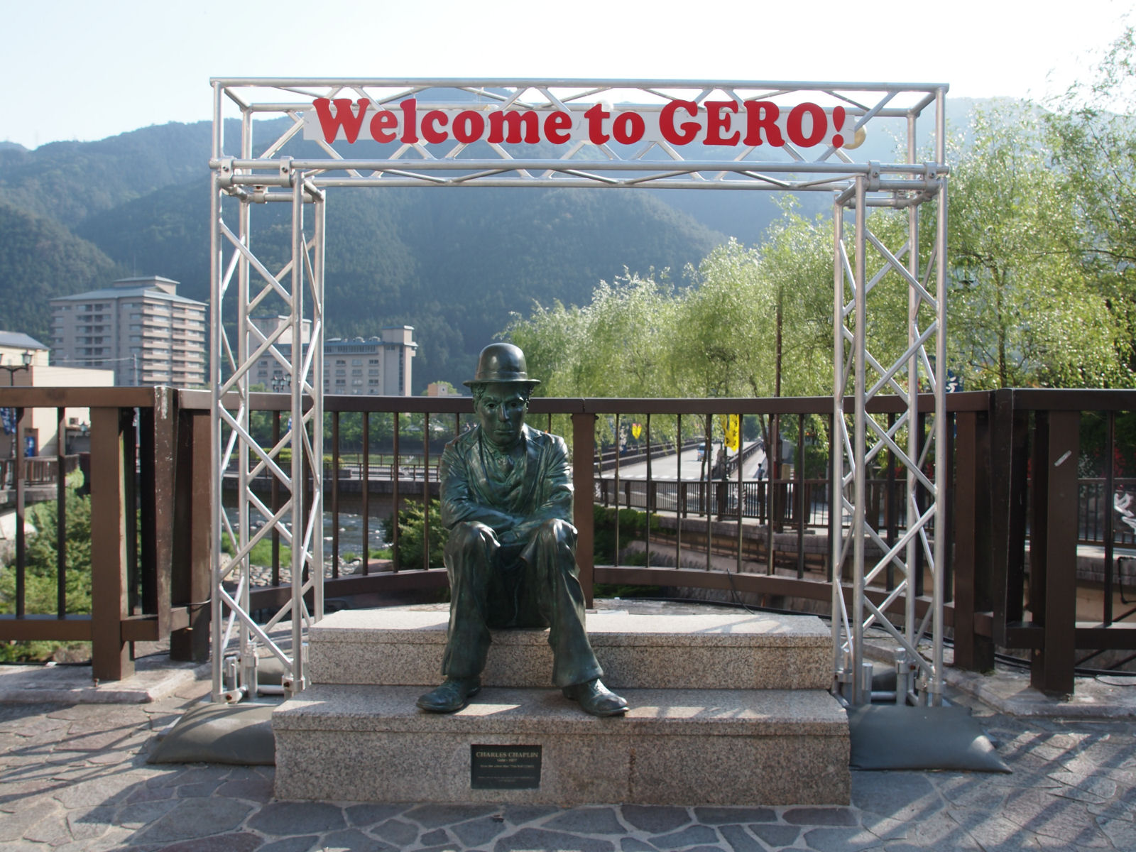 チャップリンの像と林羅山の像.