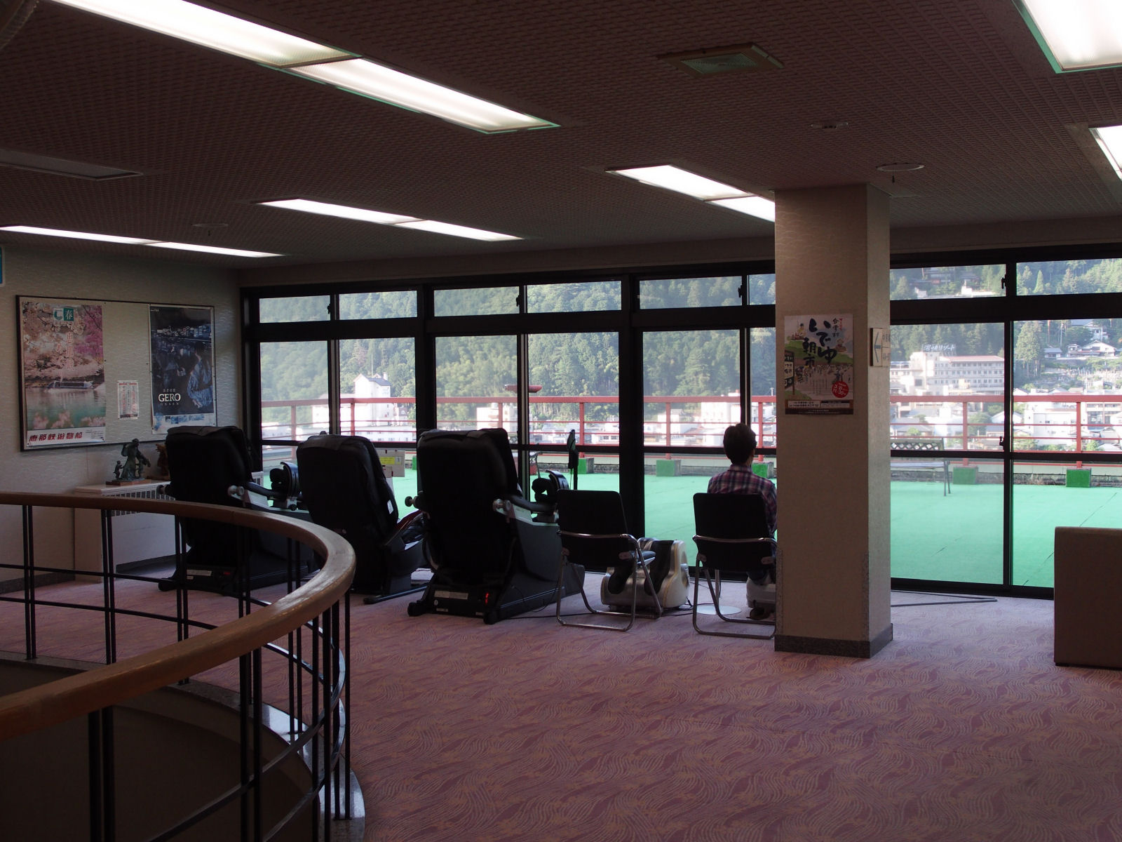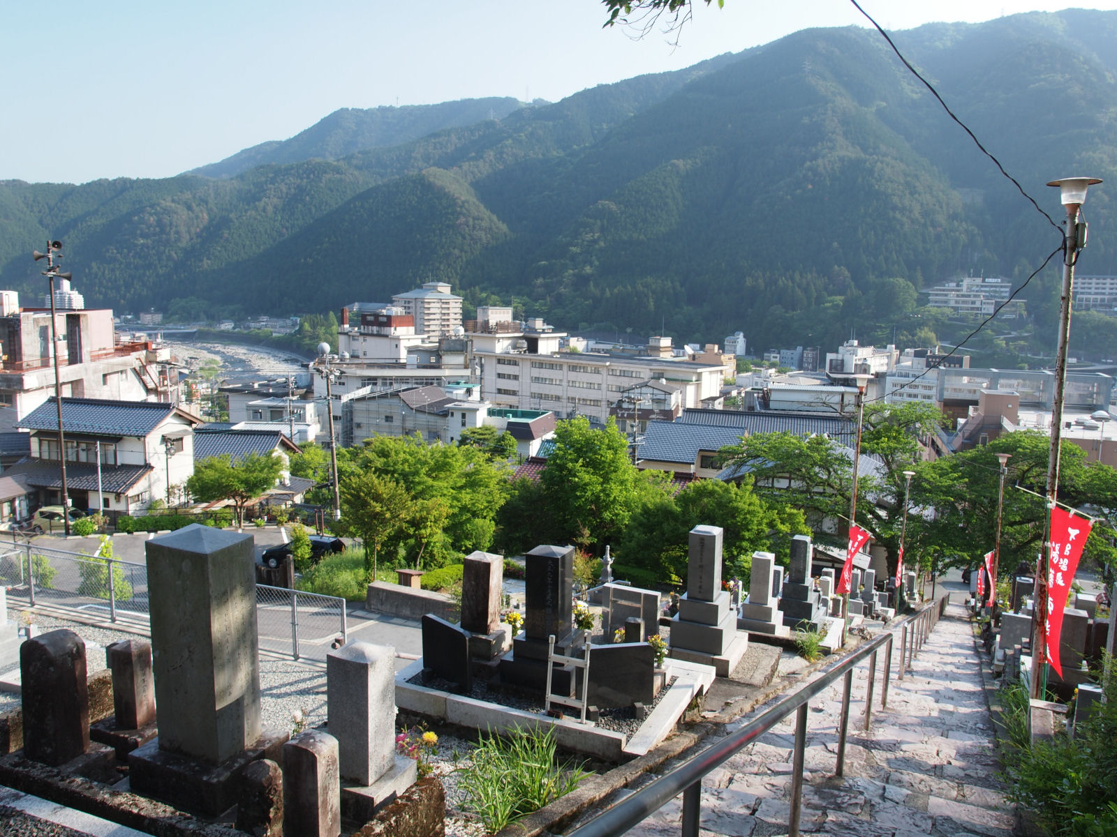 下呂の温泉街とは飛騨川を挟んで逆の山の斜面にあるため,下呂の街並みを展望できます. |