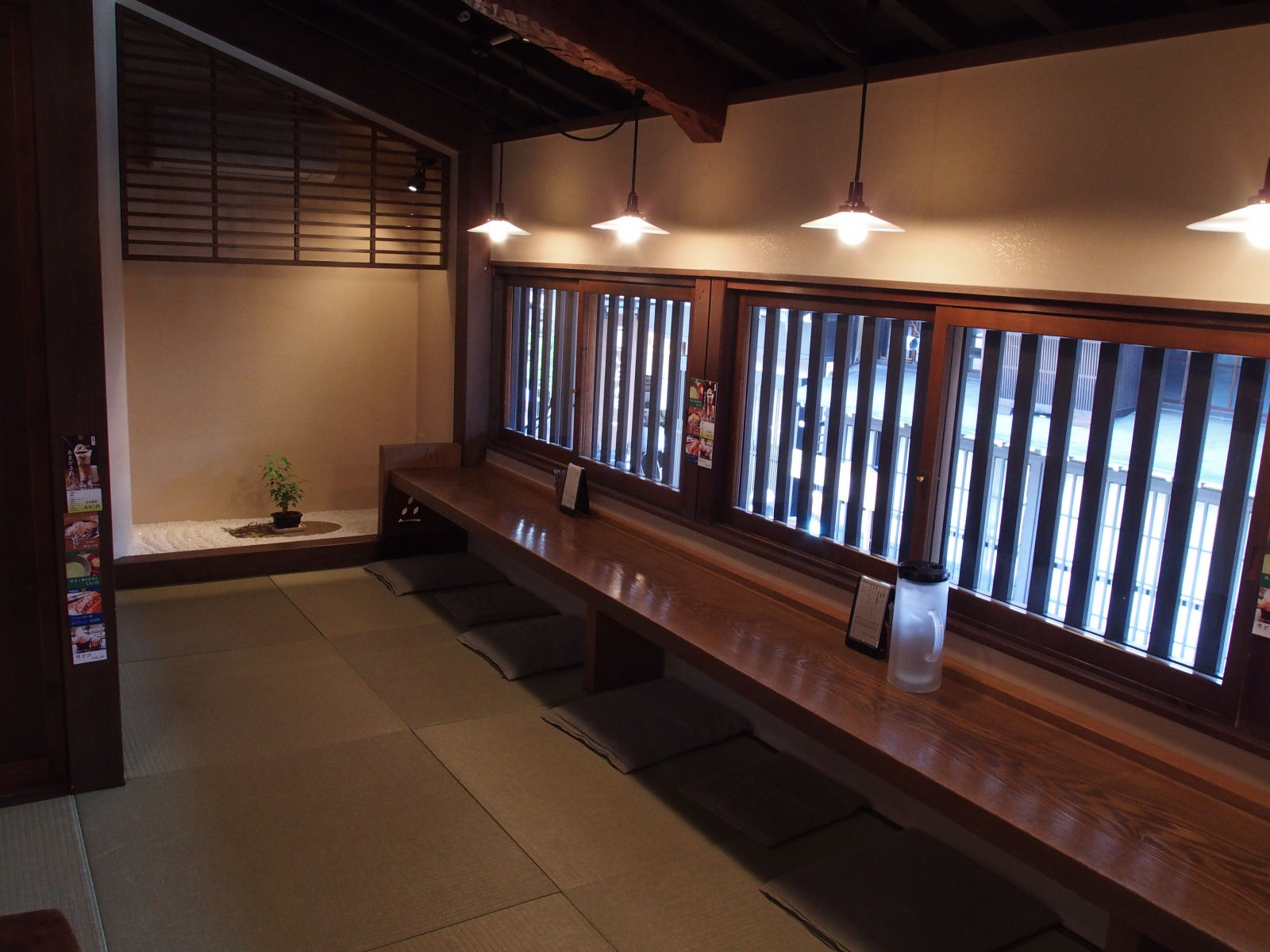 古い町並みエリアの店にも入りました. 喫茶去かつてという和風の喫茶店です. 2階席に上がり,高山の古い町並みを眺めました. |